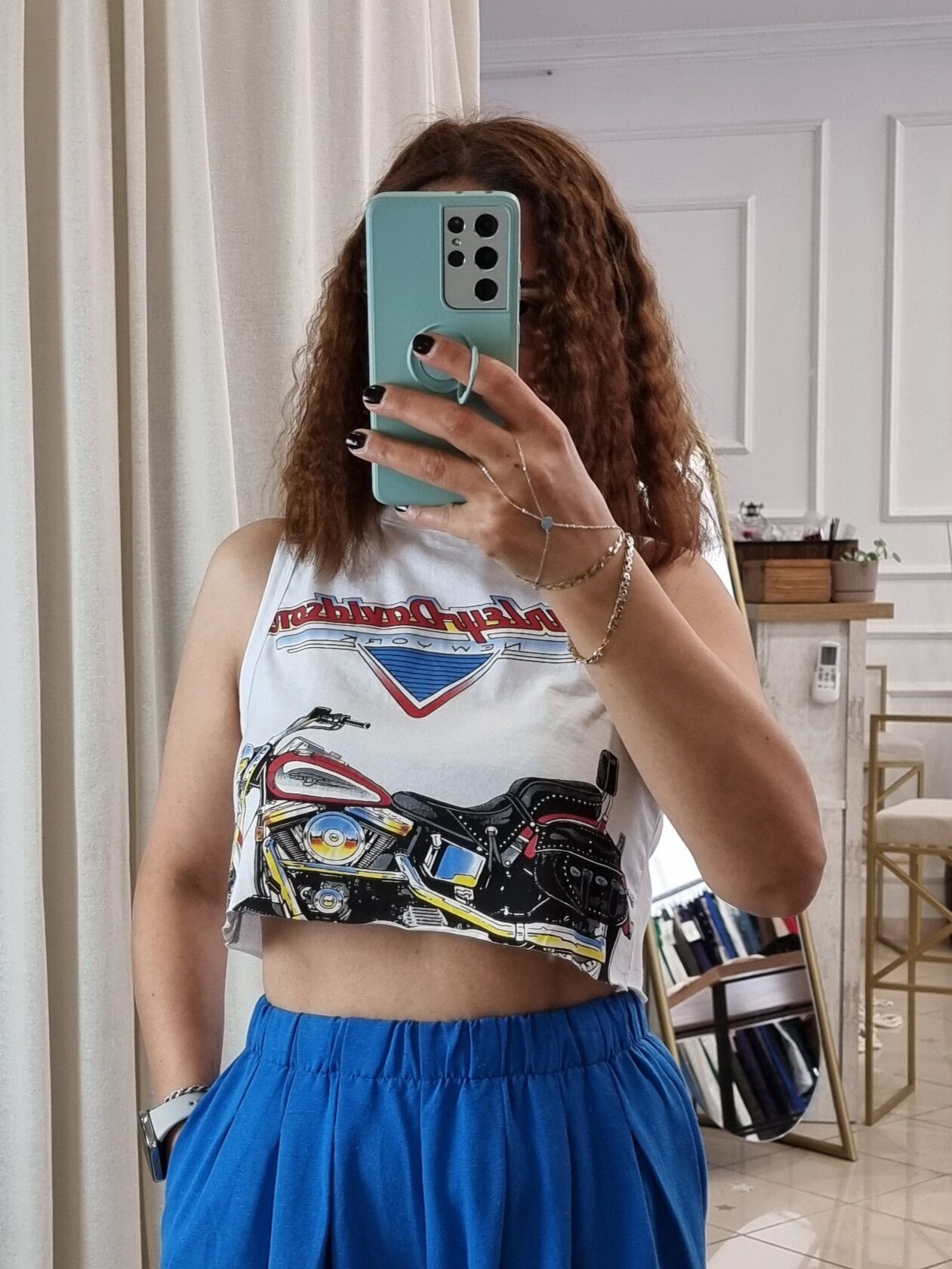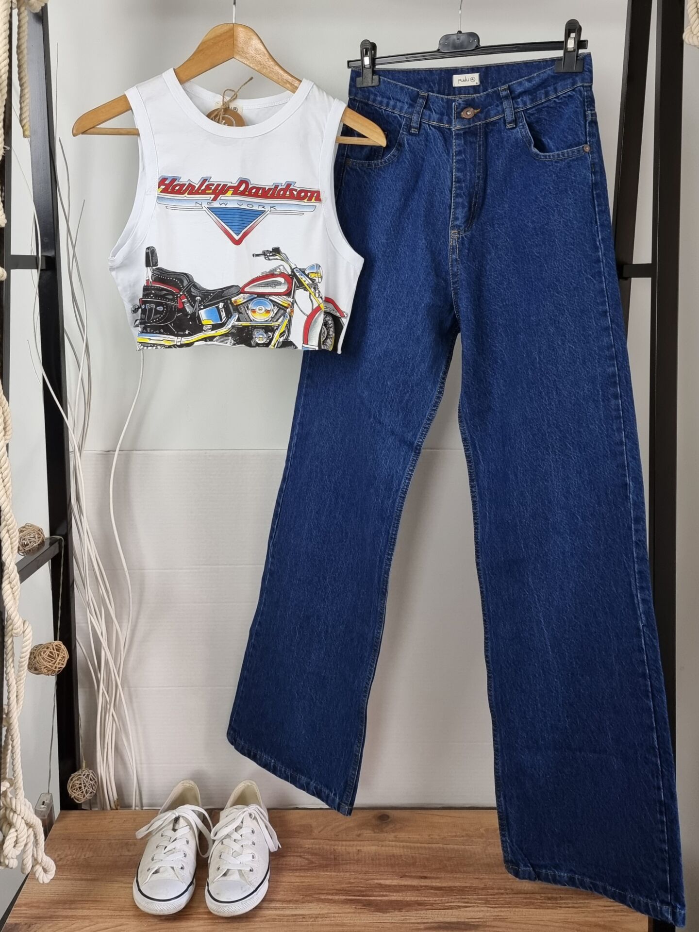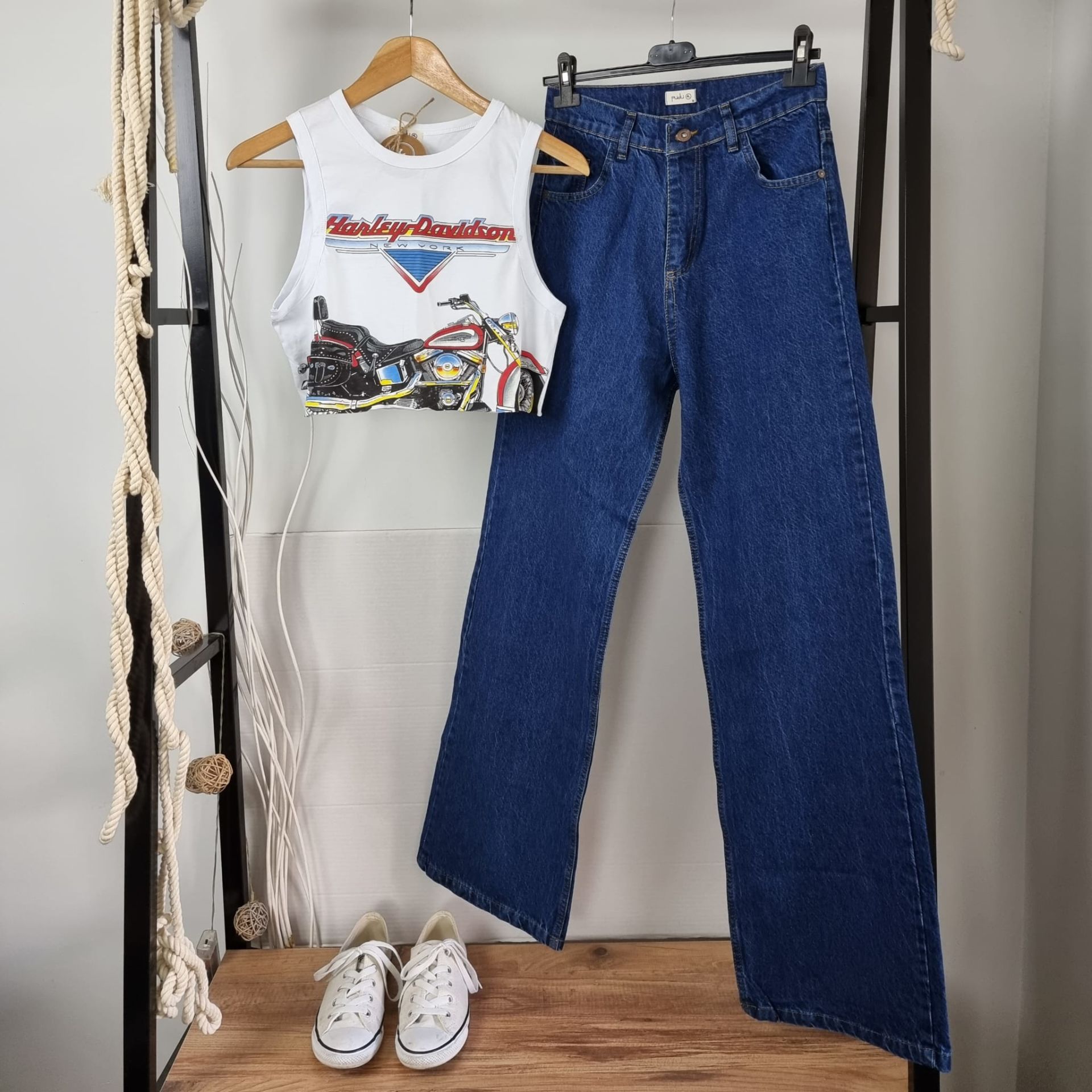 Sokak stiline cesur bir dokunuş: “Harley Davidson” baskılı beyaz crop atlet, özgür ruhlu kadınların enerjisini yansıtan güçlü bir parça. Geniş kesimi sayesinde vücuda yapışmadan salaş bir duruş sergiler; kısa formu ise yüksek bel parçalarla mükemmel uyum sağlar. Spor ama iddialı bu crop atlet, ister şehirde ister festivalde, her adımda “ben buradayım” diyen kadınlar için tasarlandı. Rahatlık ve stil bu parçada dengede!