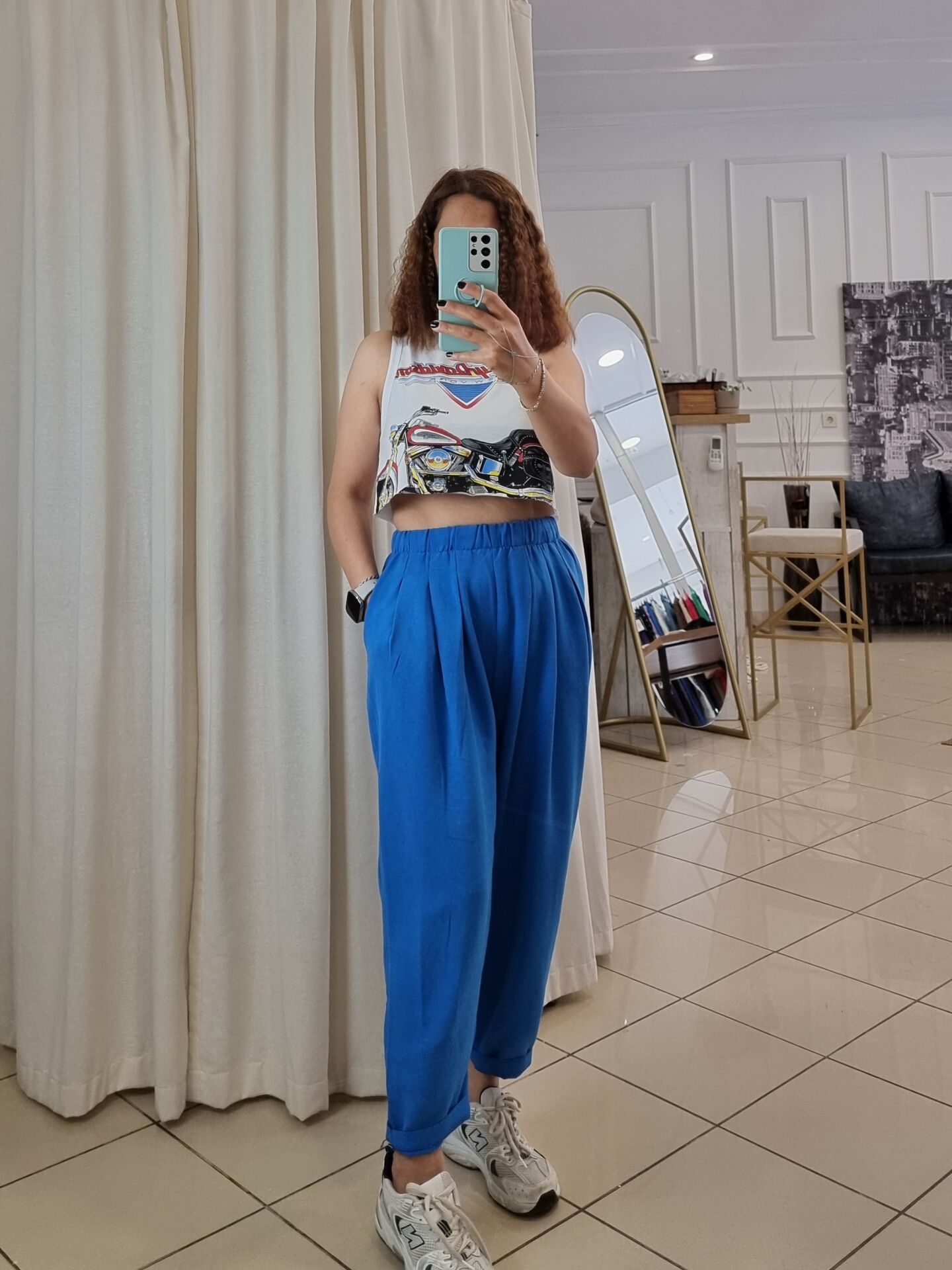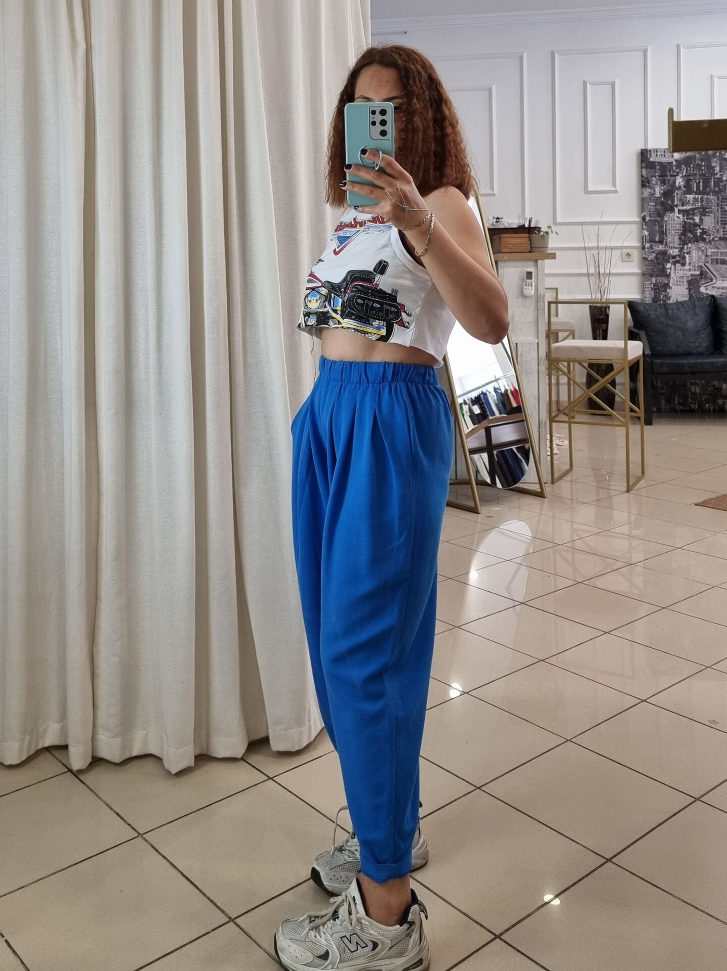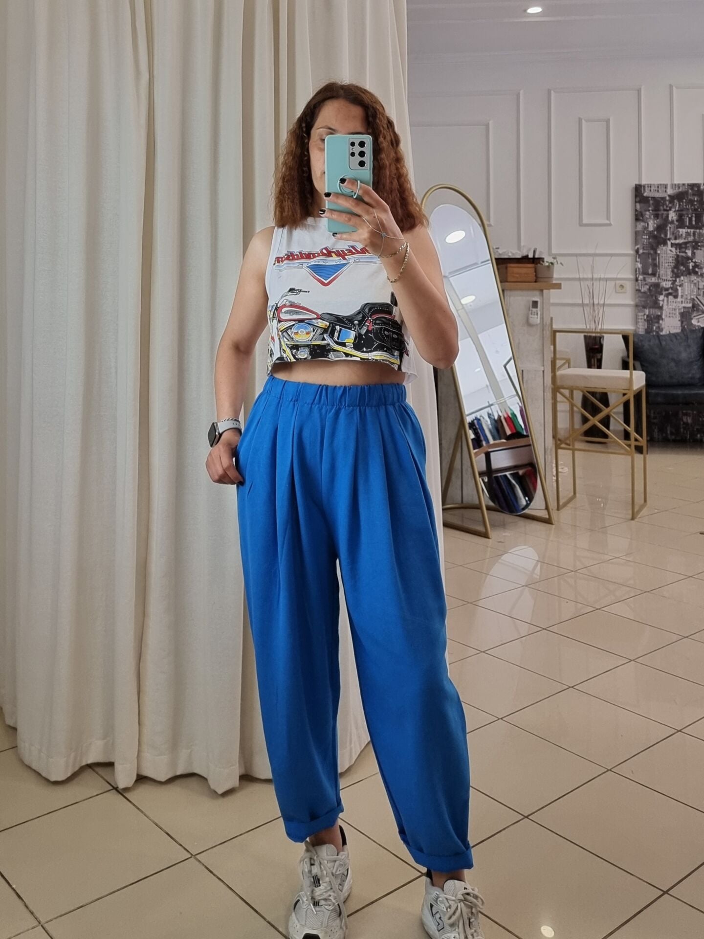 Sokak stiline cesur bir dokunuş: “Harley Davidson” baskılı beyaz crop atlet, özgür ruhlu kadınların enerjisini yansıtan güçlü bir parça. Geniş kesimi sayesinde vücuda yapışmadan salaş bir duruş sergiler; kısa formu ise yüksek bel parçalarla mükemmel uyum sağlar. Spor ama iddialı bu crop atlet, ister şehirde ister festivalde, her adımda “ben buradayım” diyen kadınlar için tasarlandı. Rahatlık ve stil bu parçada dengede!