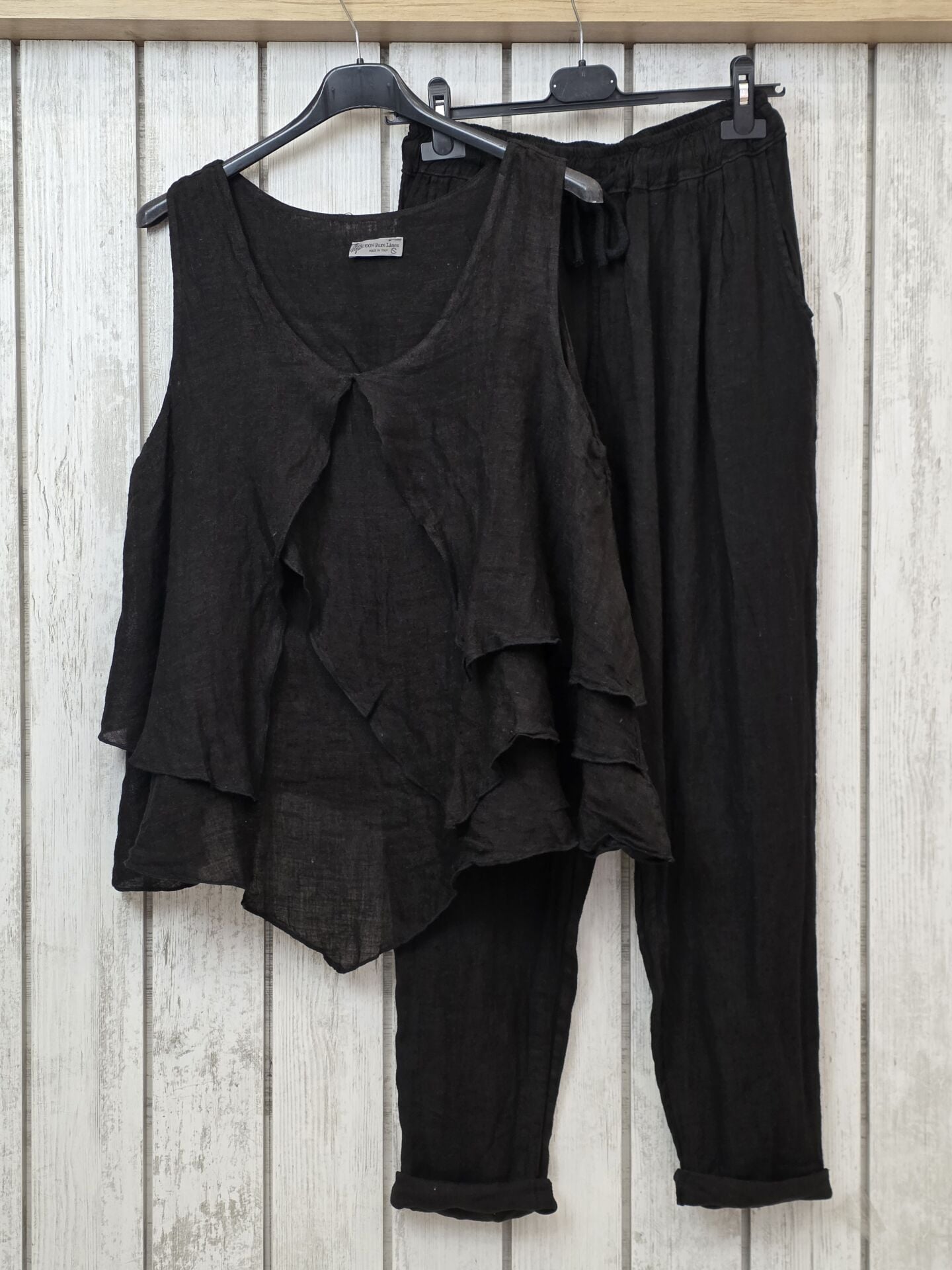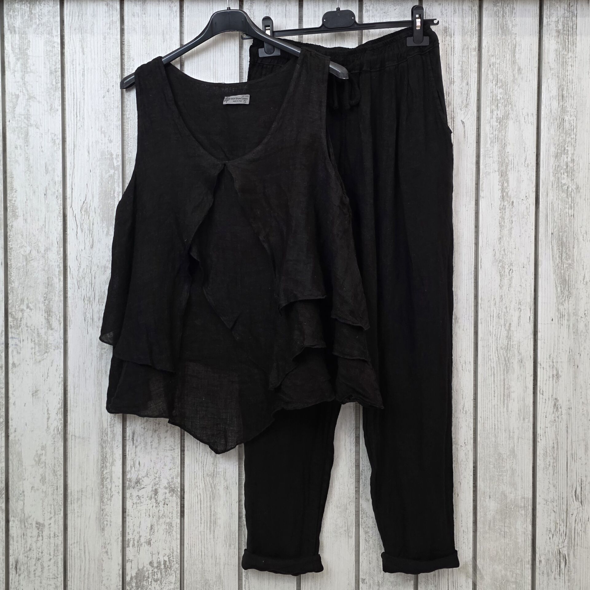 %100 keten önü volan parçalı İtalyan atlet siyah.