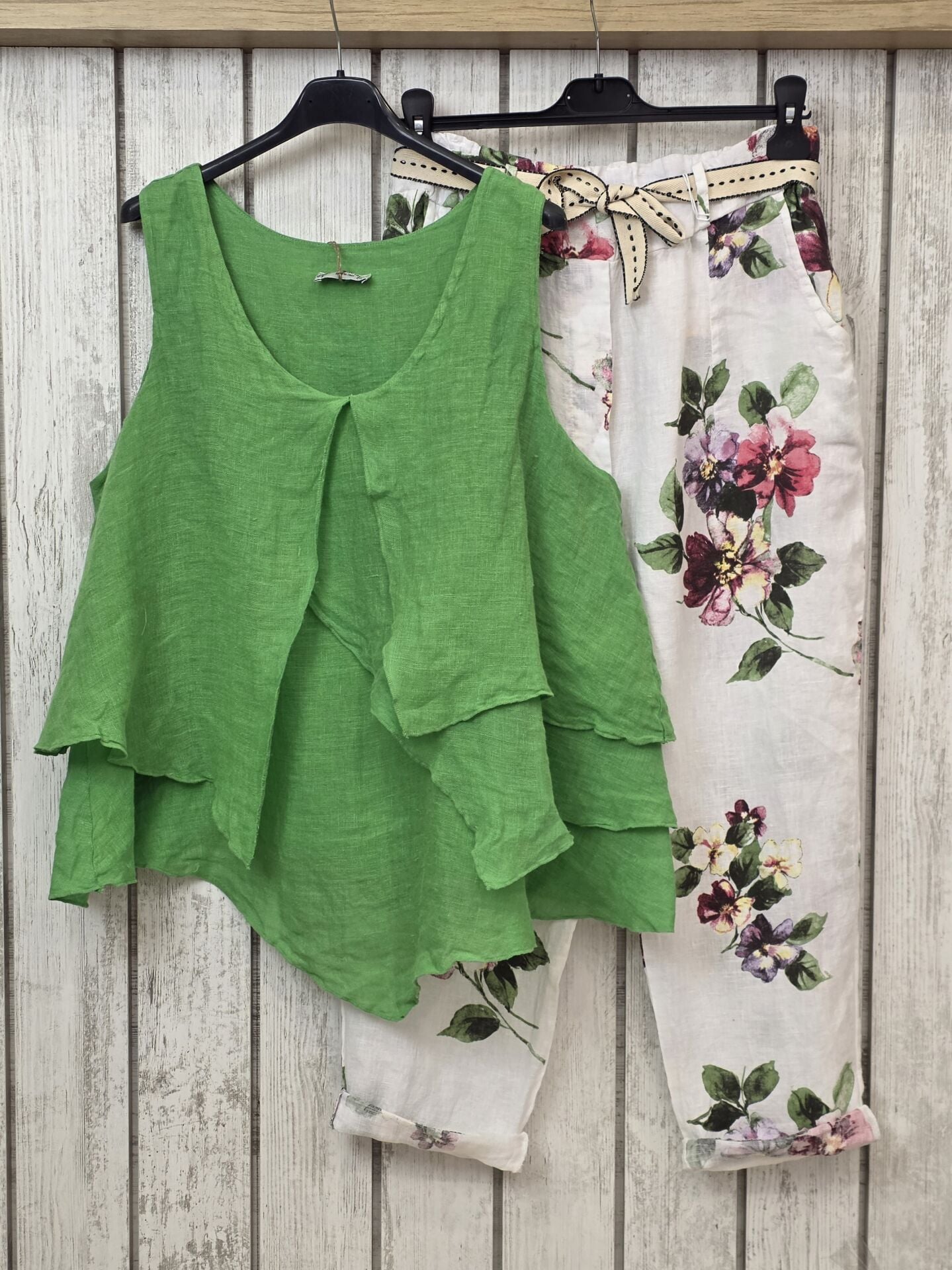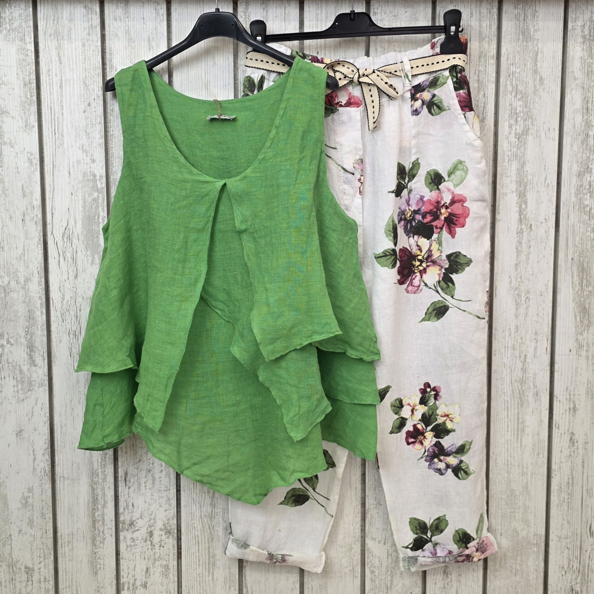 %100 keten önü volan parçalı İtalyan atlet yeşil.