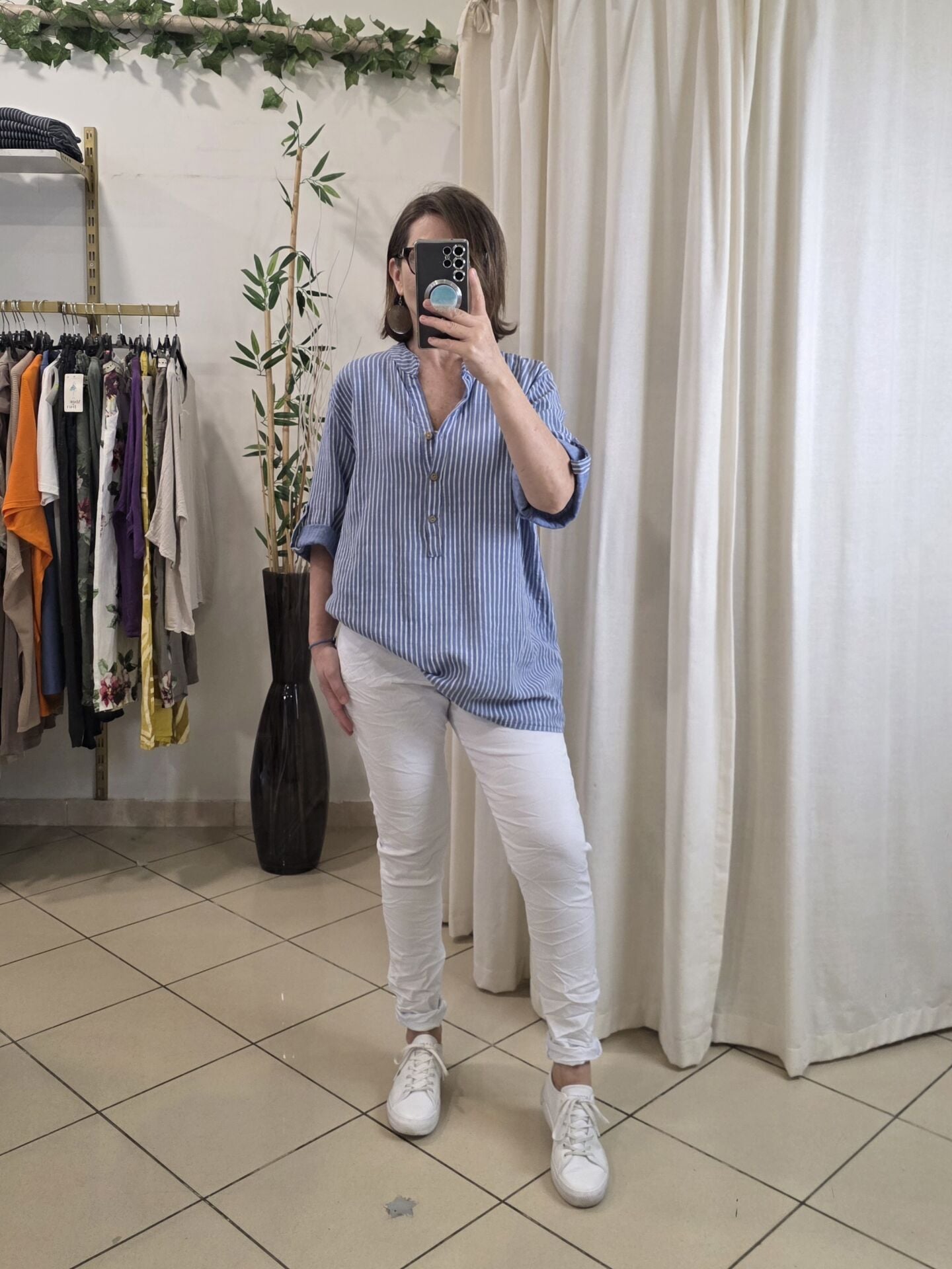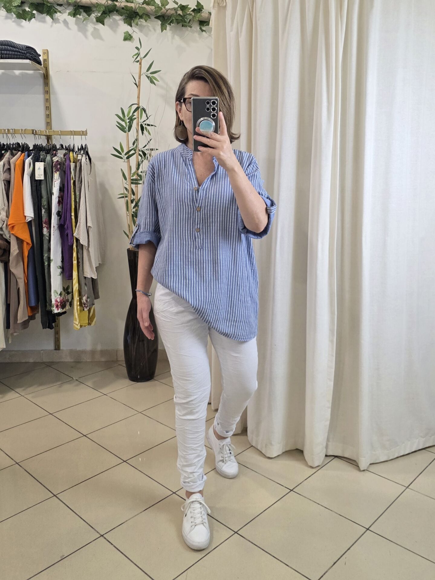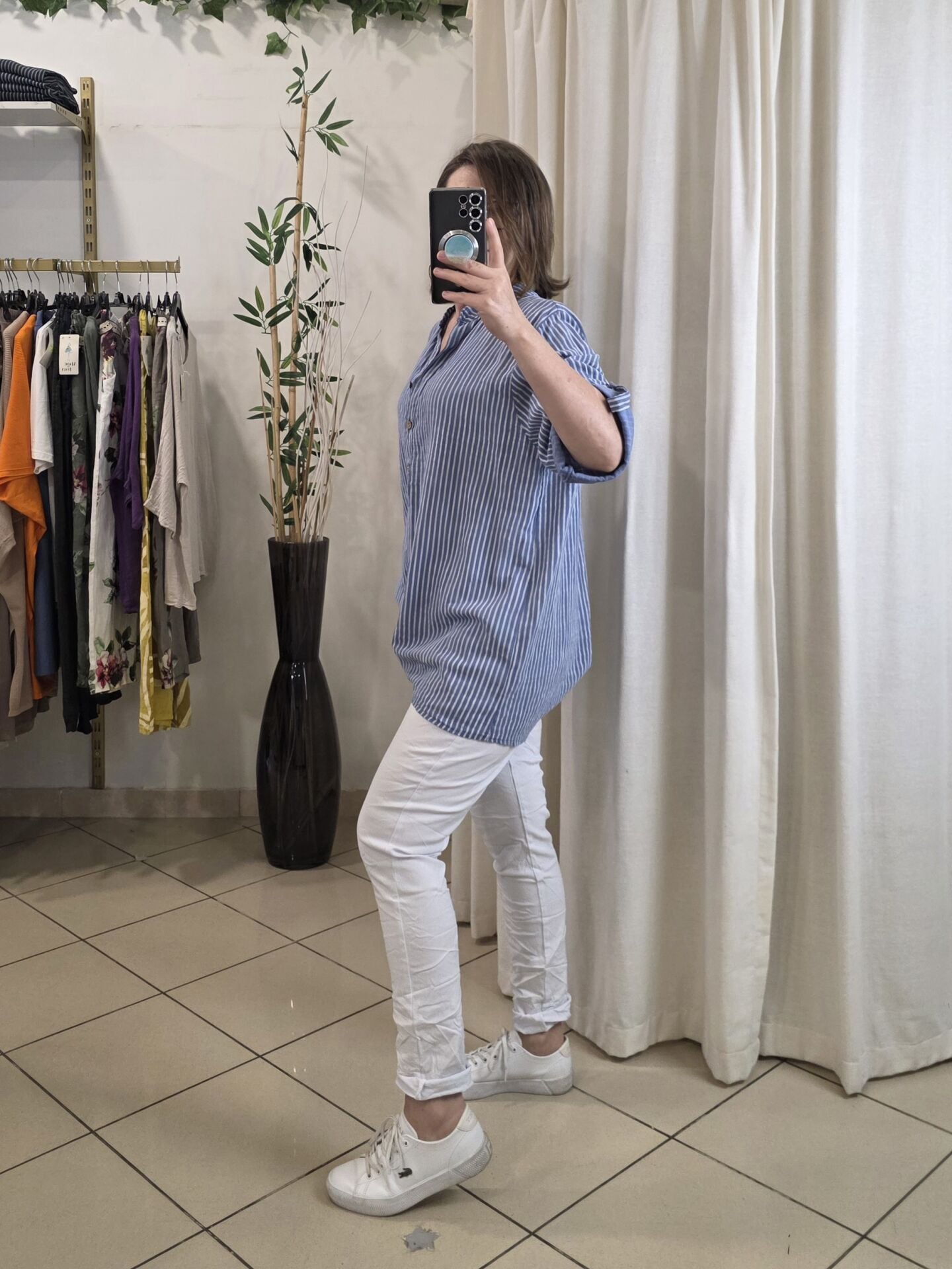 Boyuna çizgili gömlek.