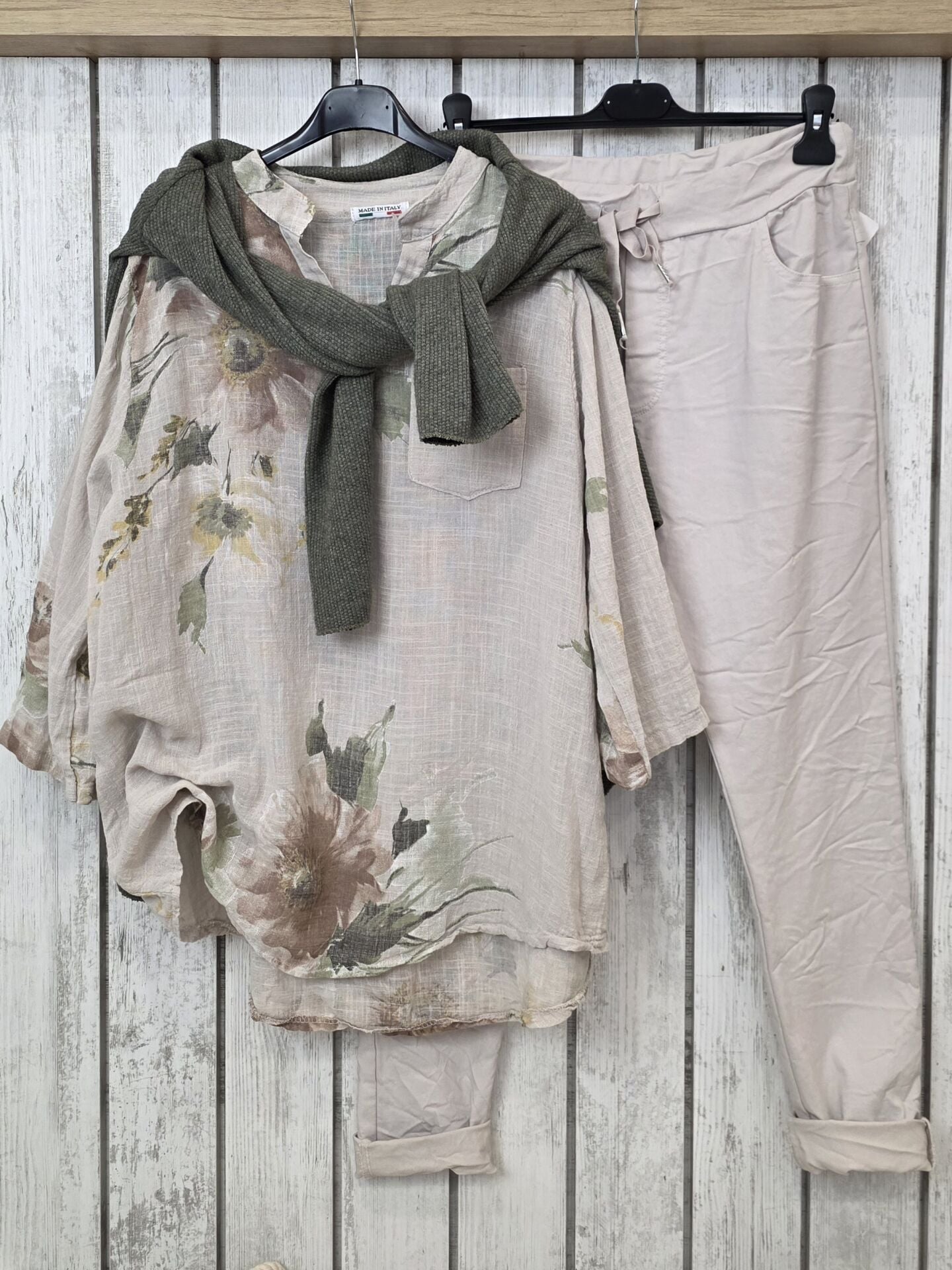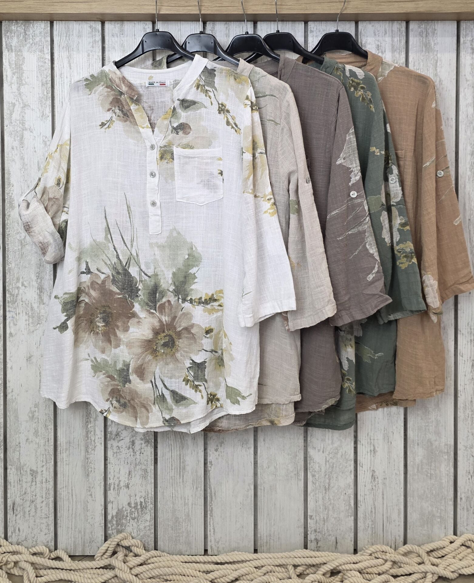 Oversize pamuk gömlek formu sayesinde vücuda yapışmadan rahat bir duruş sağlar.