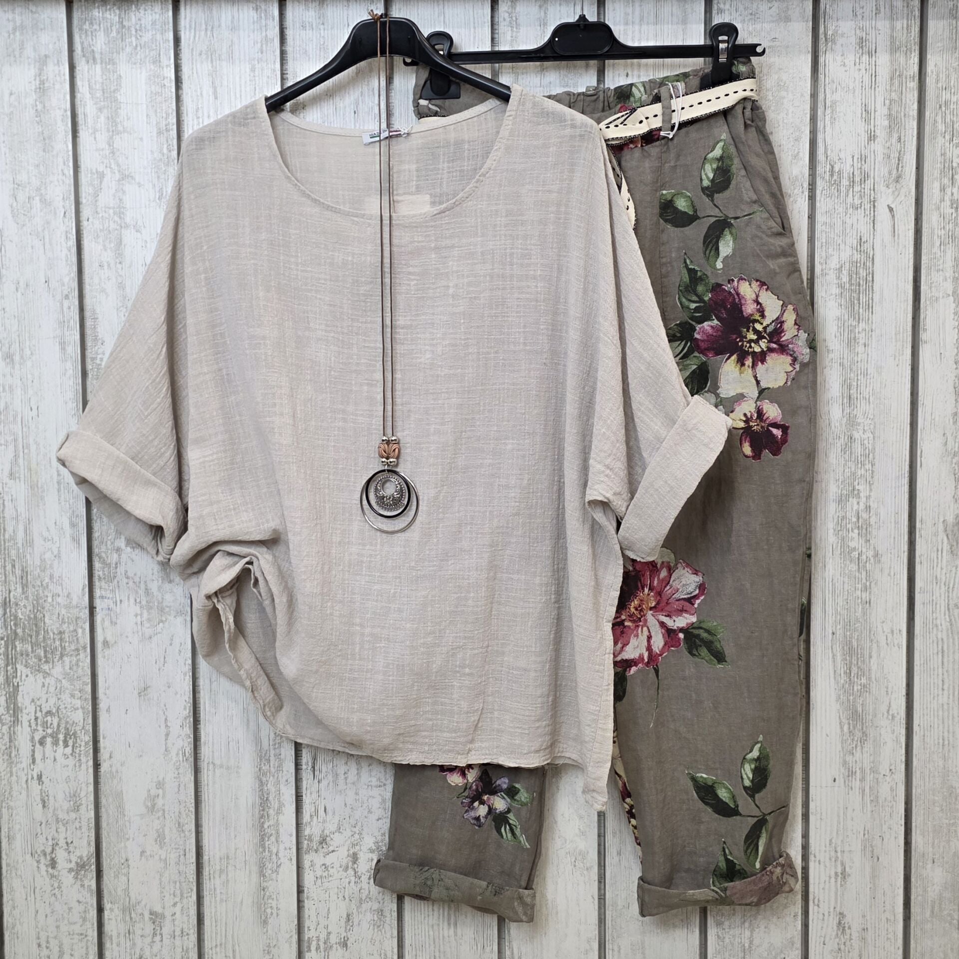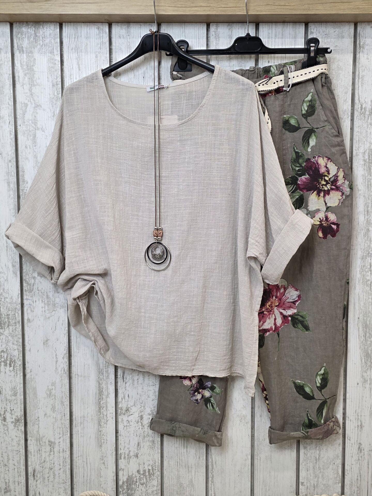 Oversize müslin bluz geniş kesimi sayesinde vücudu sarmadan rahat bir his oluşturur.