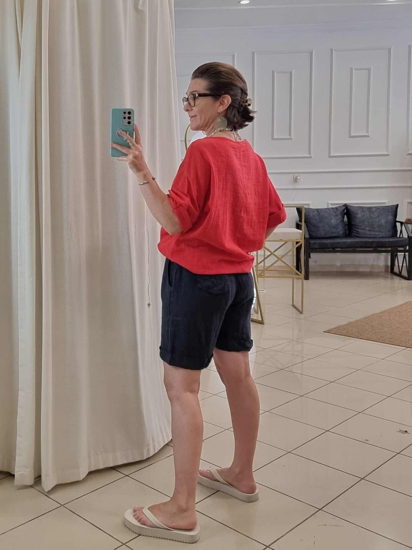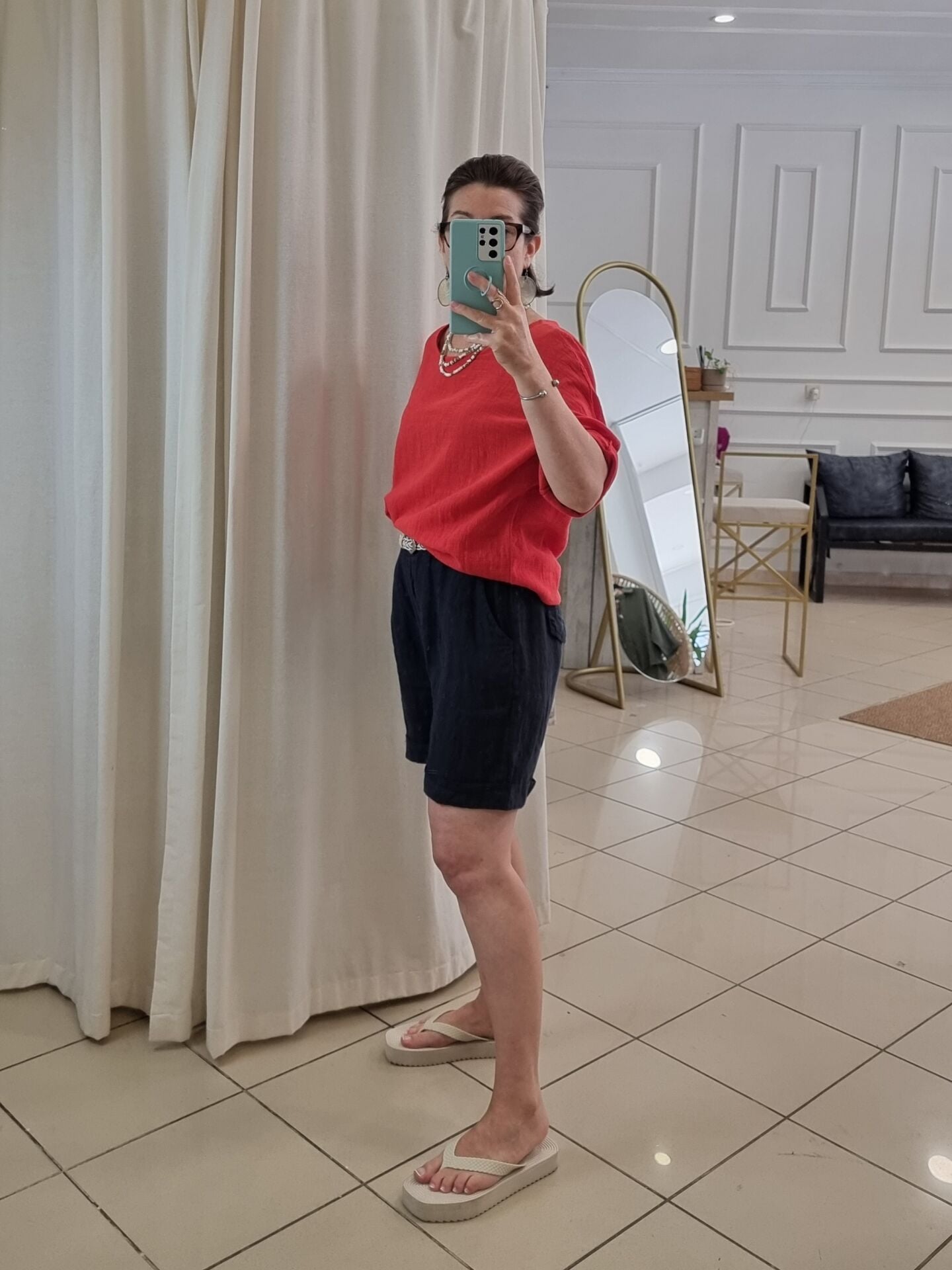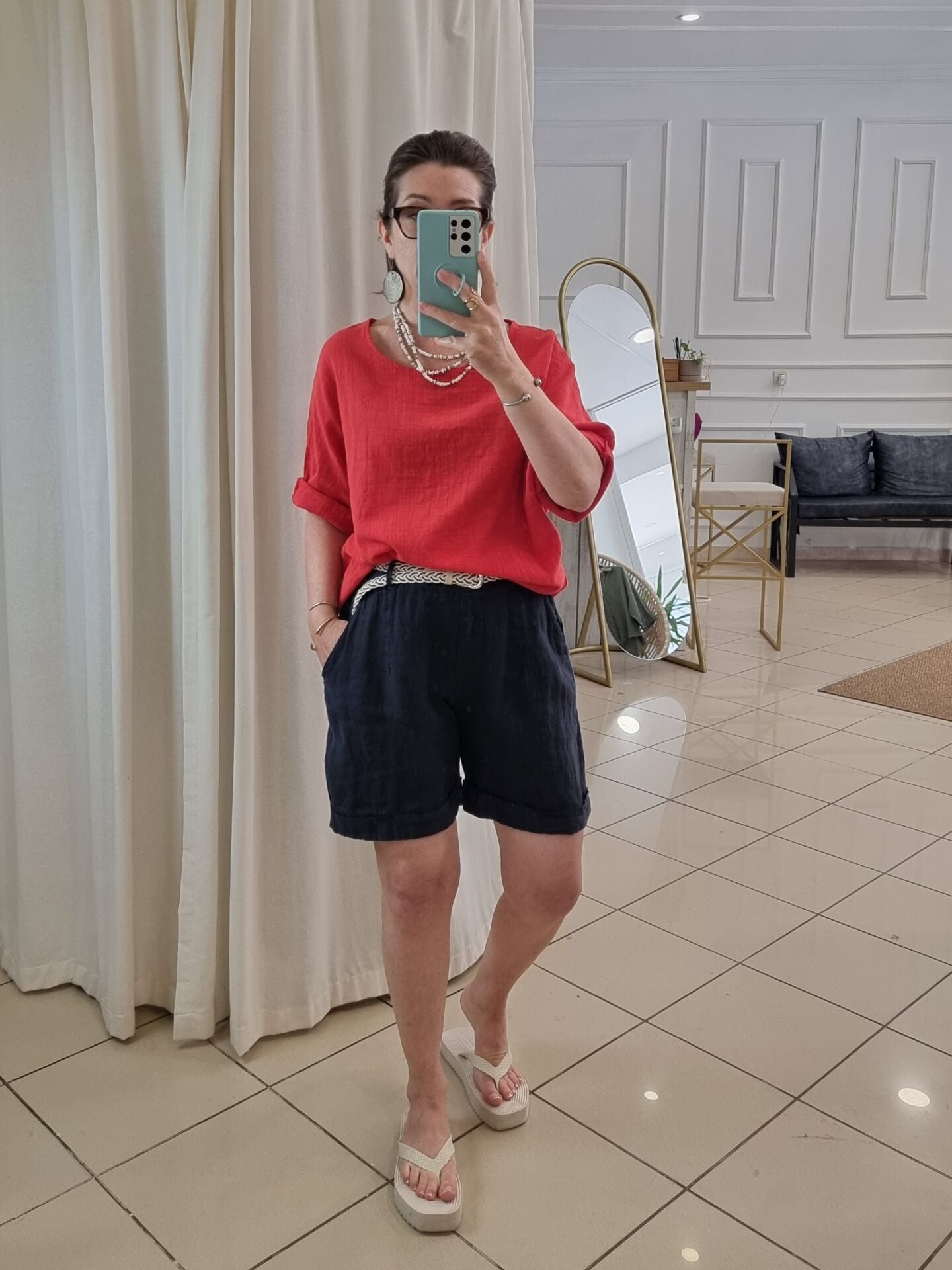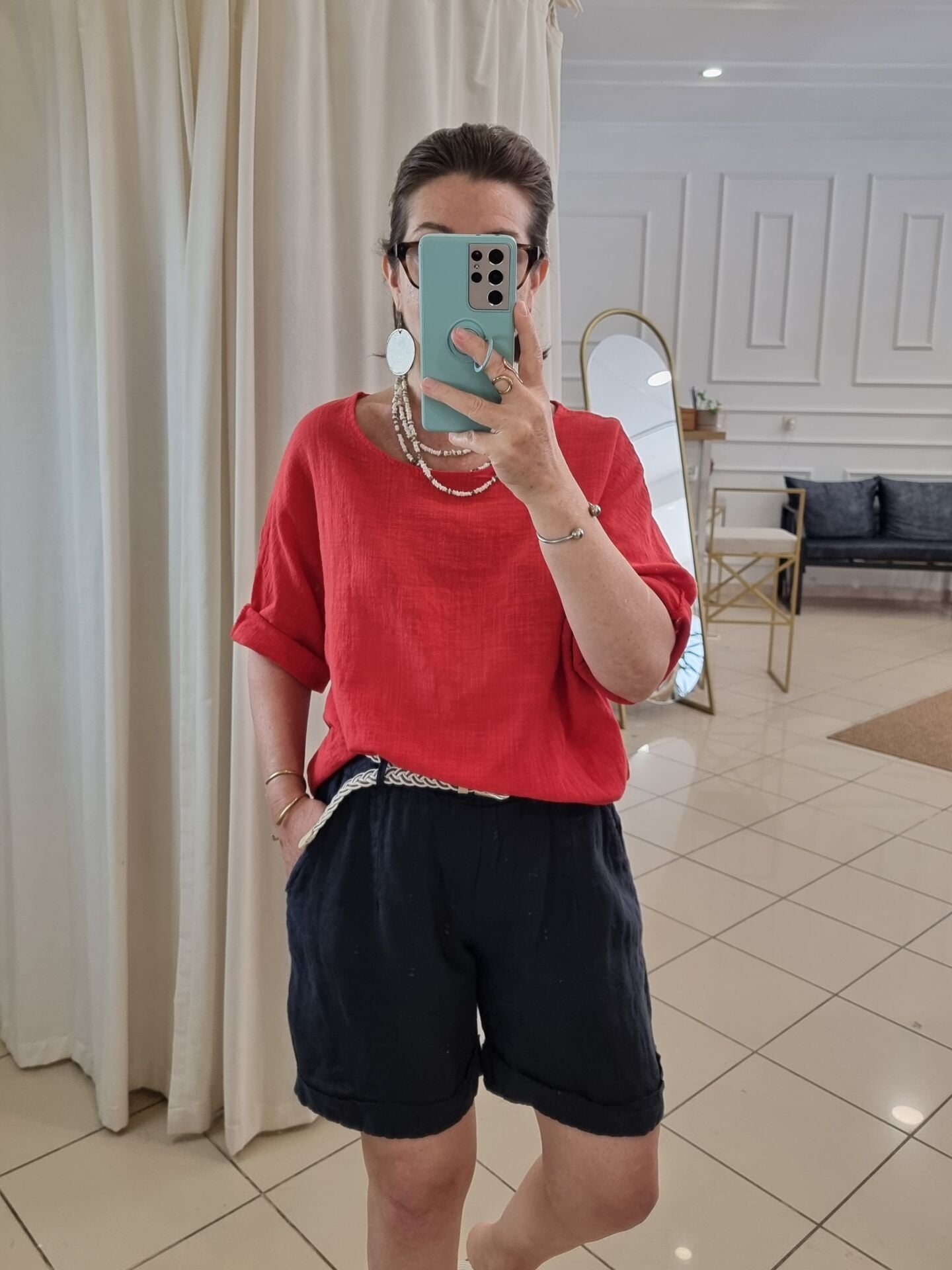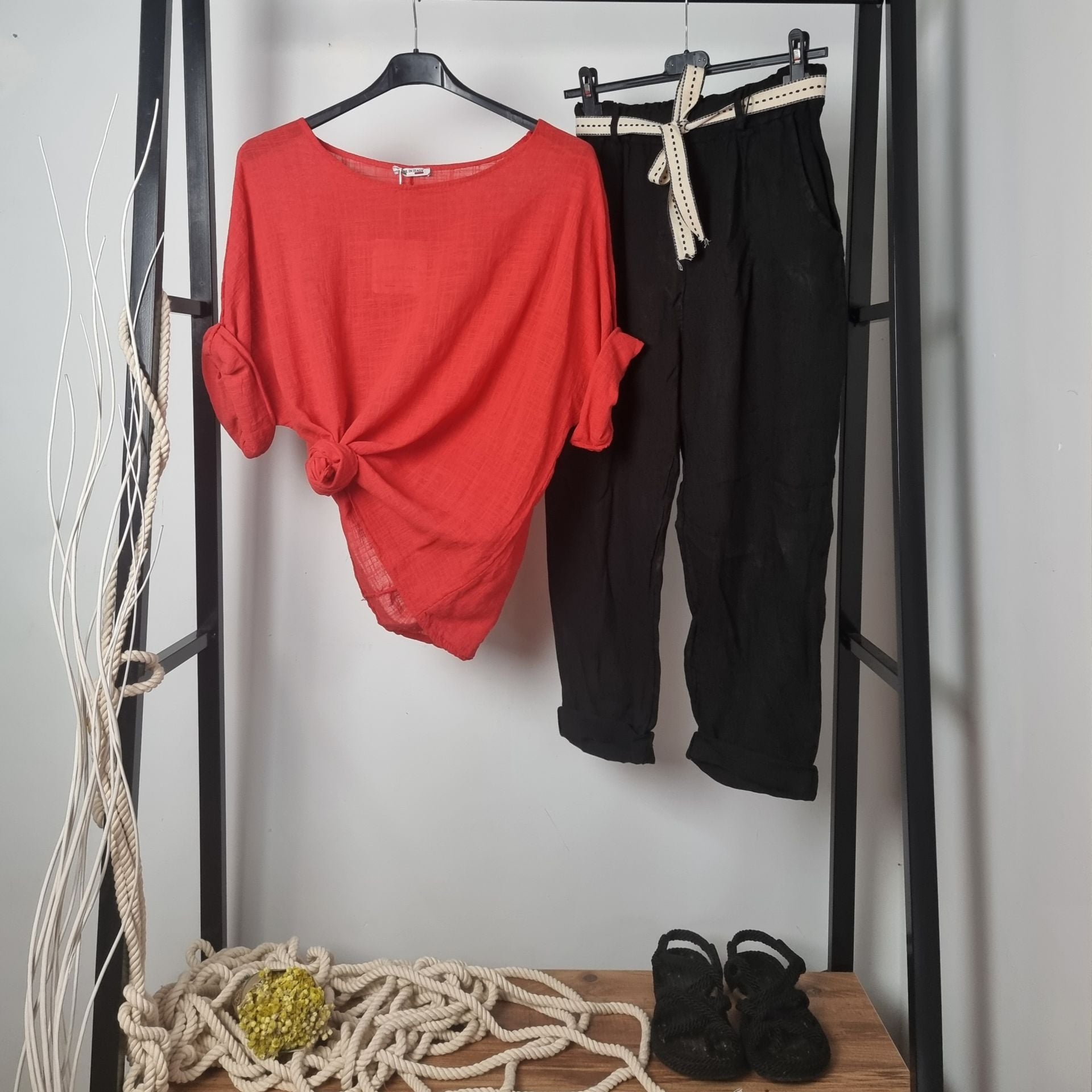 Bu kırmızı oversize müslin bluz, sade çizgilere sahip ama etkisi yüksek bir stil arayan kadınların imza parçası olmaya aday. %100 pamuklu ince dokusu sayesinde terletmeyen bir serinlik sunarken, bol kesimiyle her bedene konforla eşlik eder. Eksik kol tasarımı ve dökümlü formu, rahatlığı göz alıcı bir özgüvene dönüştürür. Bu müslin bluz, yazın enerjisini giyilebilir hale getirirken aynı zamanda sade bir cesaretin temsilcisi olur.