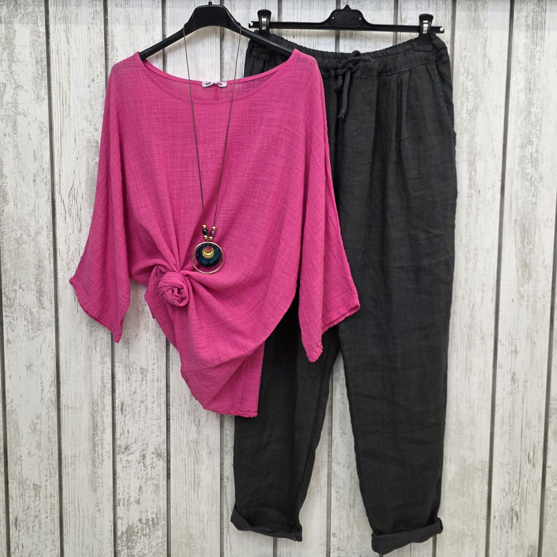 Yumuşak dokusu kadar renginin neşesiyle de öne çıkan bu pembe oversize müslin bluz, günün her anına canlılık katmak isteyen kadınlar için tasarlandı. Hafifliğiyle serinlik, %100 pamuk içeriğiyle nefes alabilirlik sunar. Eksik kol detayı ve dökümlü kesimiyle tüm bedenlere zarifçe oturur. Sade bir dokunuşla bile enerjik görünmek isteyenler için bu müslin bluz, konfor ve tarzın en tatlı haliyle buluştuğu nokta.