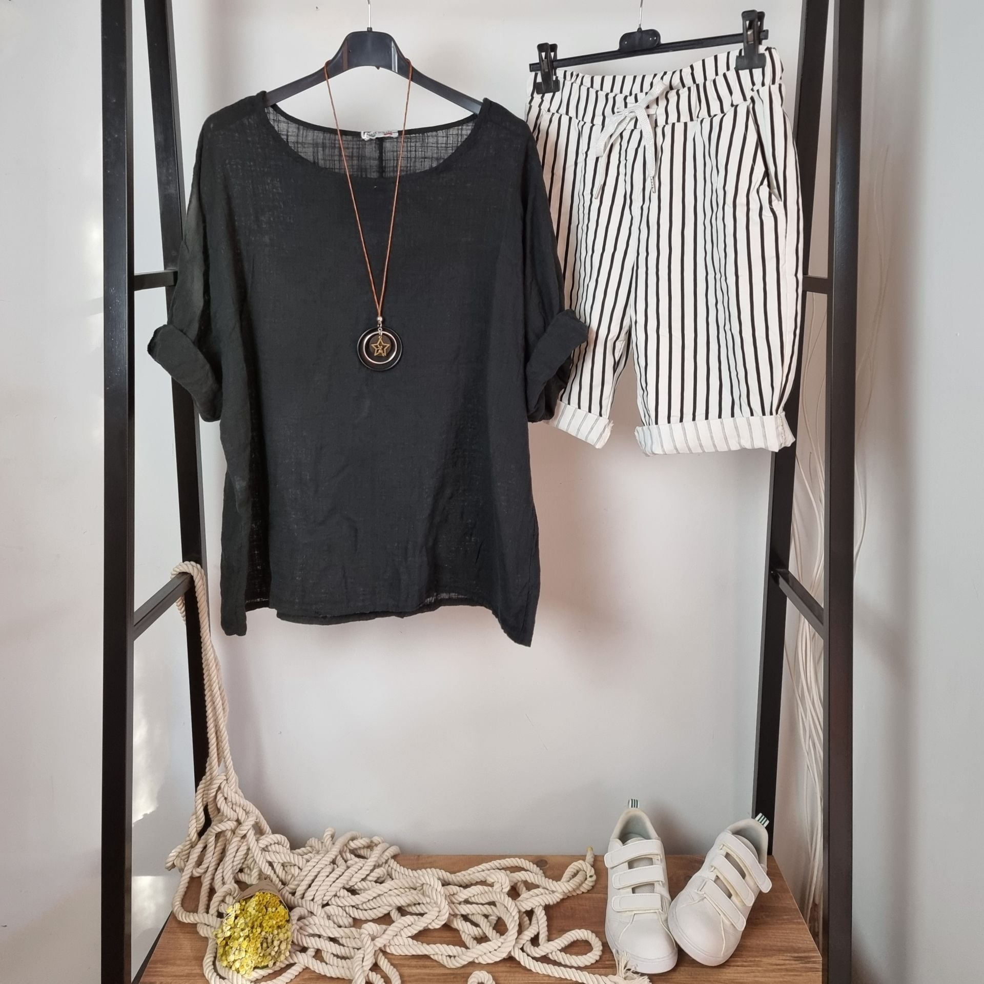 Sade, güçlü ve zamansız… Bu siyah oversize müslin bluz, gardırobun joker parçası olmaya aday. Hafif ve nefes alan %100 pamuklu dokusu sayesinde sıcak havalarda dahi ferah hissettirir. Eksik kol detayı, dökümlü yapısı ve rahat kesimiyle her bedene zarifçe uyum sağlar. Günlük kombinlere gizli bir asalet katarken, geceye geçişte de şıklığını korur. Bu müslin bluz, sadeliğiyle konuşur ama sıradanlığa asla düşmez.