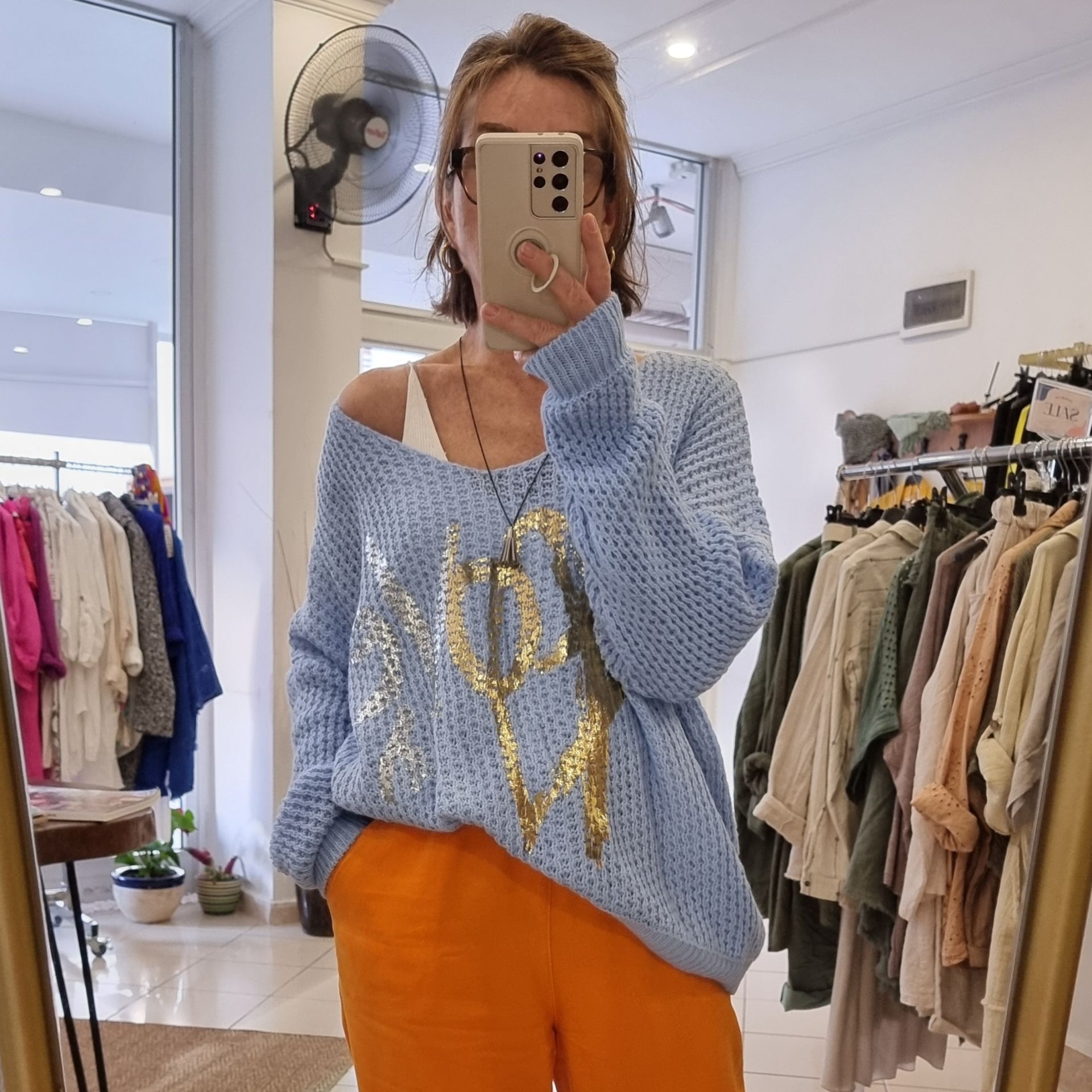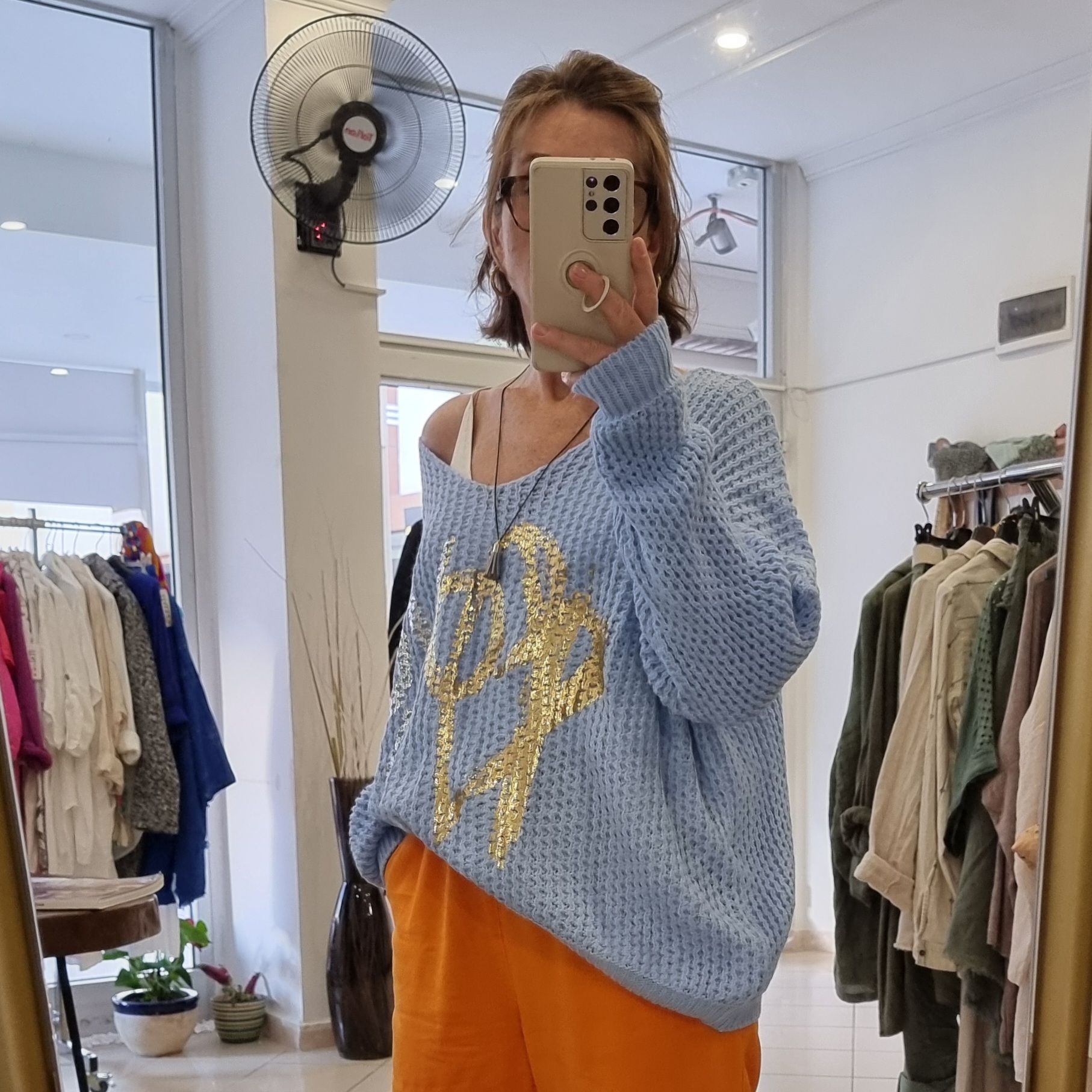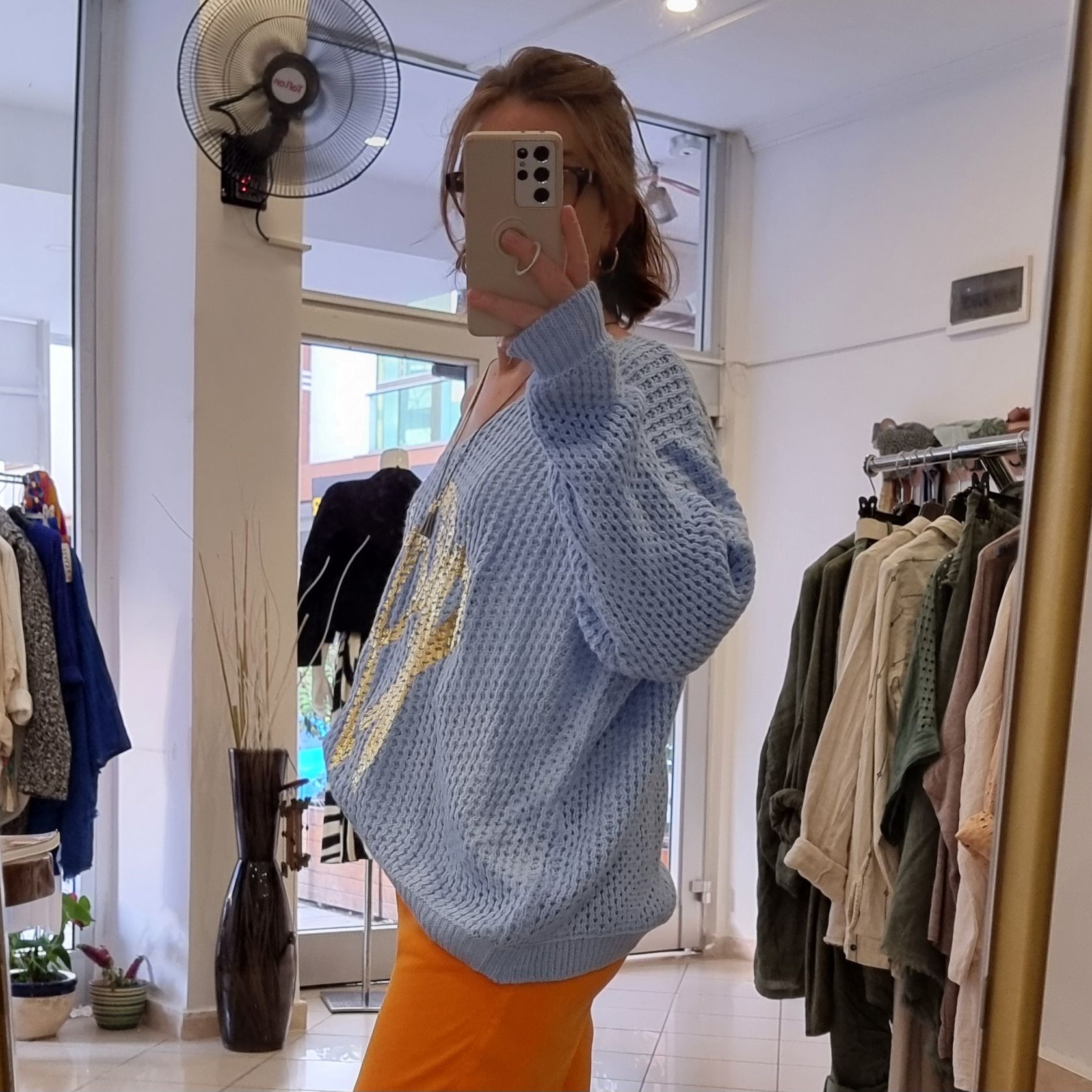 Oversize Kalın Örme Ajurlu Kazak İtalyan Mavi