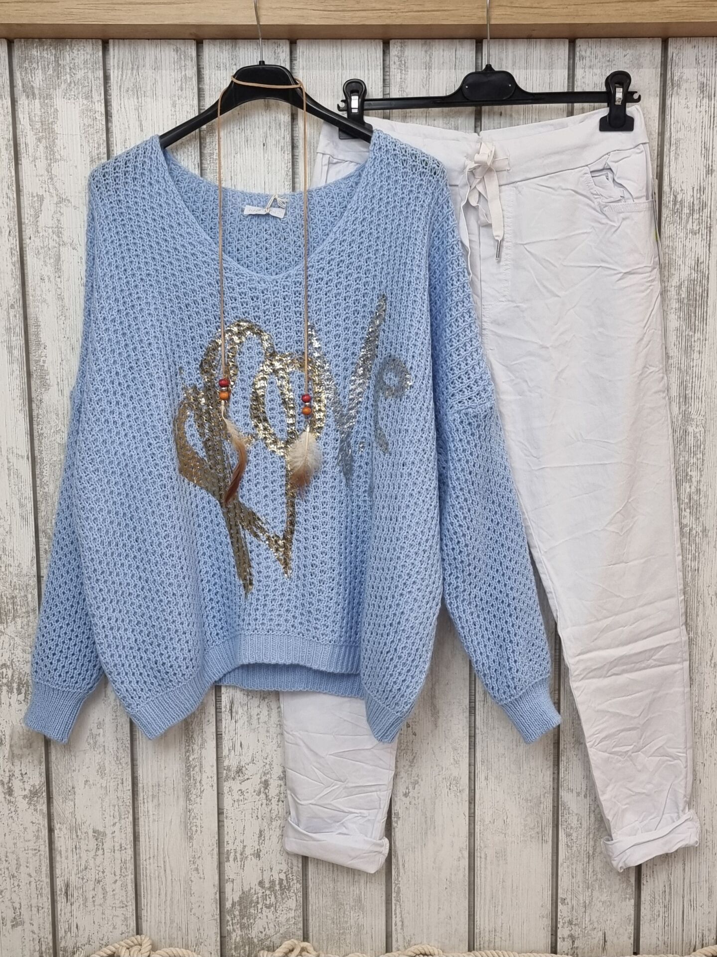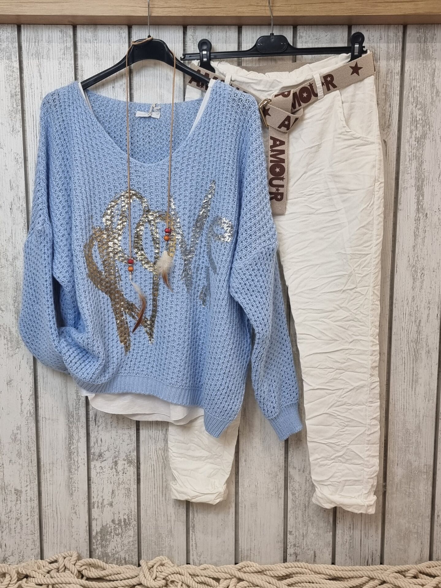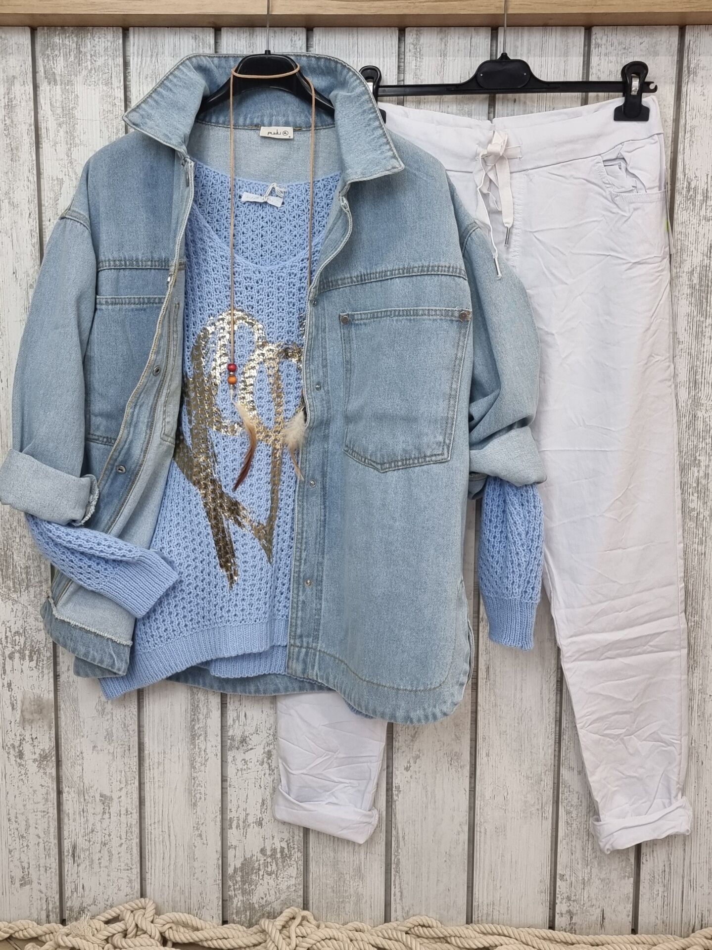 Oversize Kalın Örme Ajurlu Kazak İtalyan Mavi