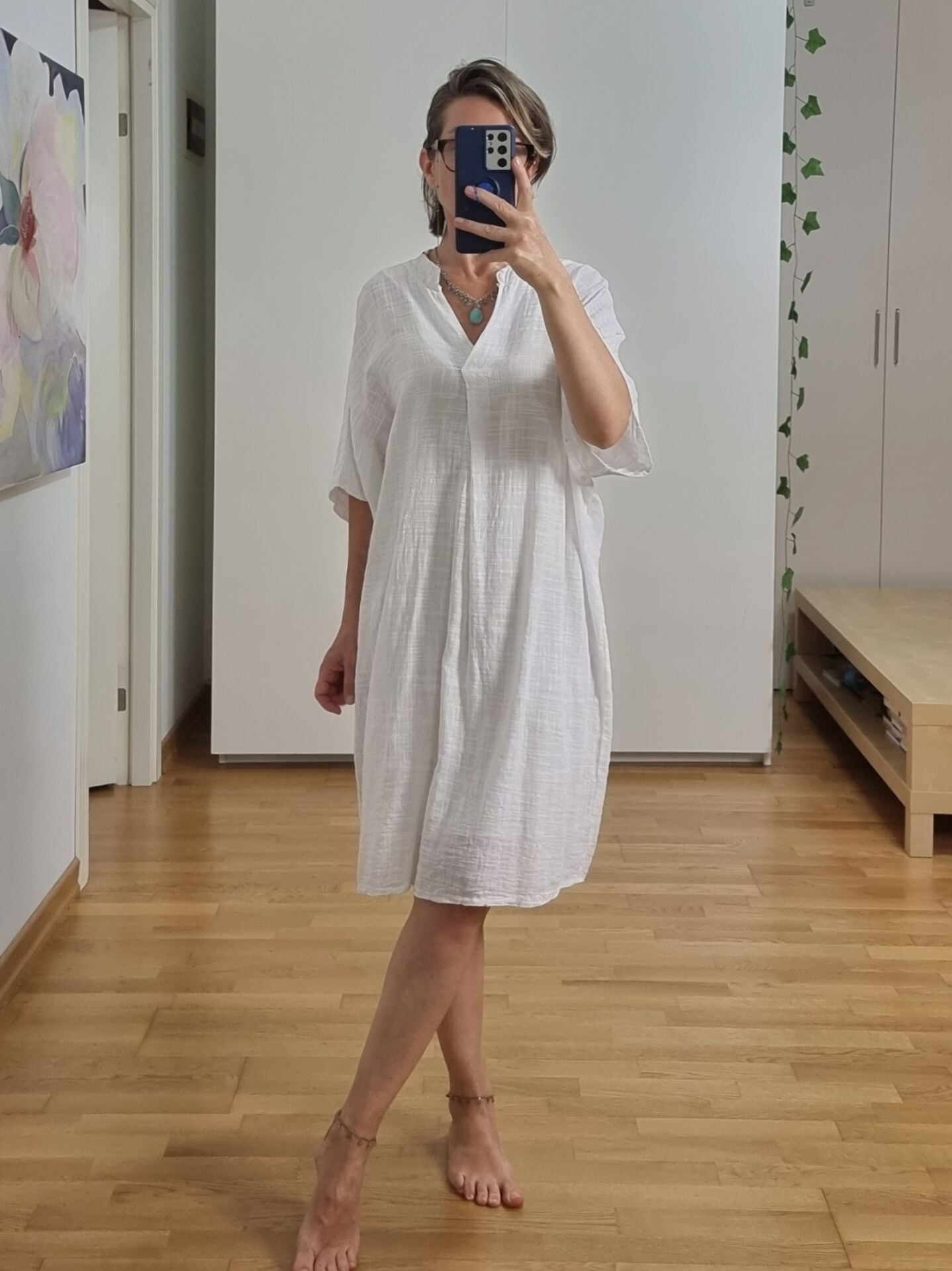 Oversize Müslin Elbise Beyaz