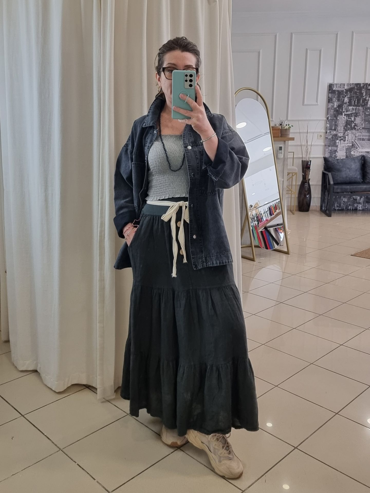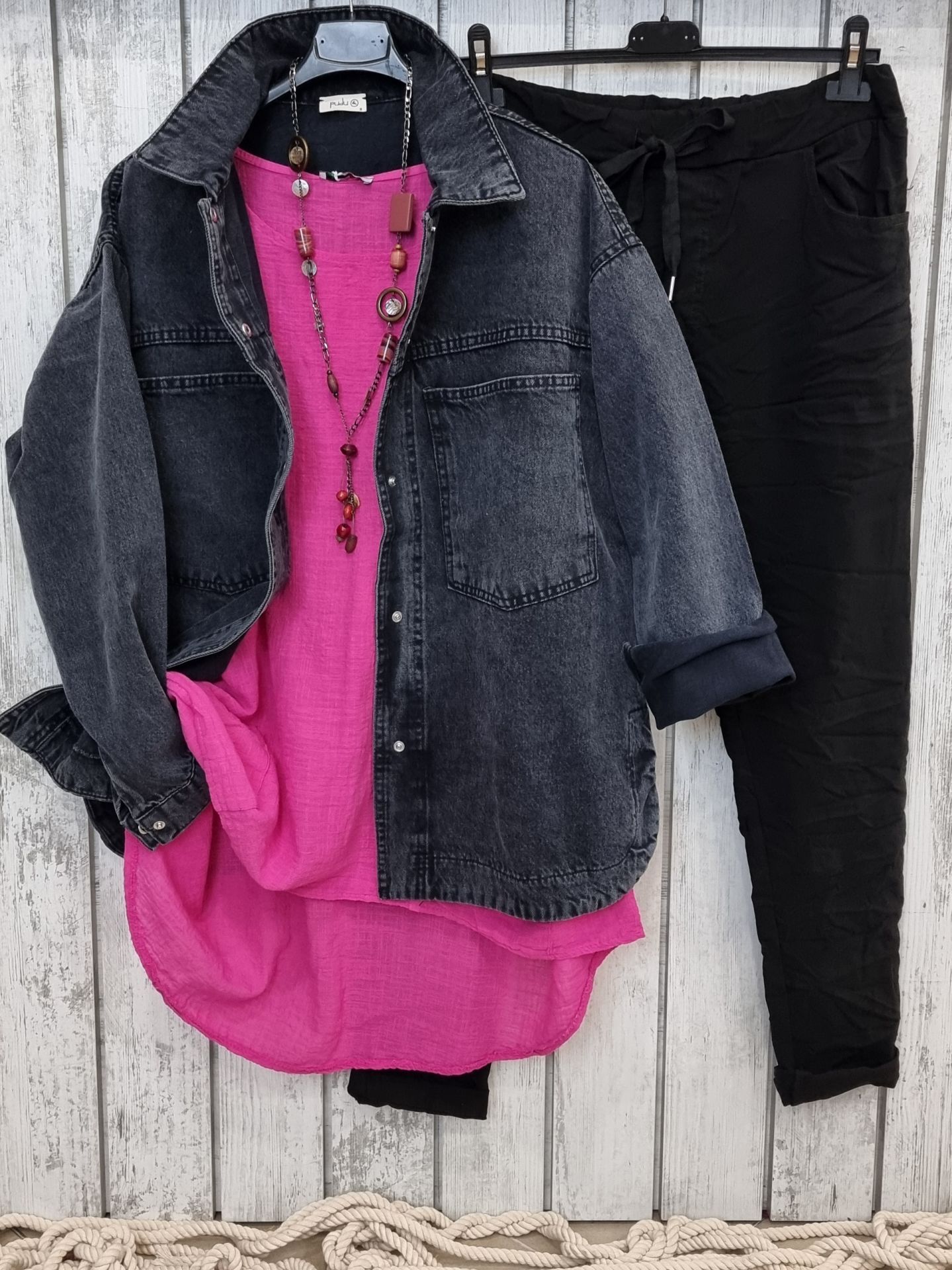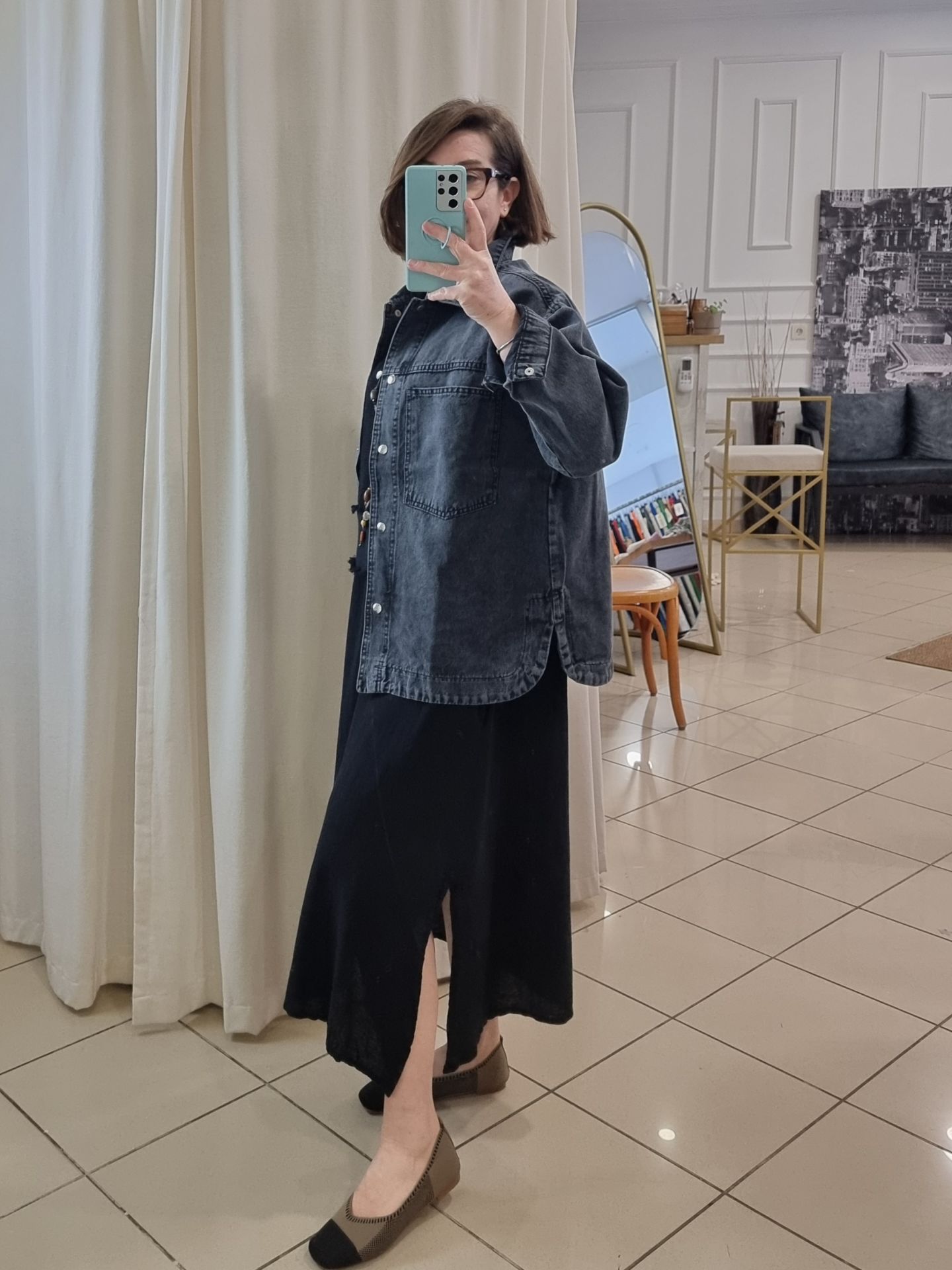 Kadınlar için tasarlanan oversize pamuk kot ceket antrasit, zarif ve modern bir görünüm sunuyor. Bol kesimi ve oval etek ucu, rahatlığı ve şıklığı bir arada sağlarken, çıt çıtlı ön tasarımı günlük kullanımda pratiklik sunar. %100 pamuk dokusuyla cilt dostu ve dayanıklıdır. S, M, L ve XL beden seçenekleriyle her vücut tipine uyum sağlar. Antrasit rengiyle zamansız bir stil sunan bu ceket, kadınların gardıroplarında hem şık hem de rahat bir seçenek olarak yer alacak.