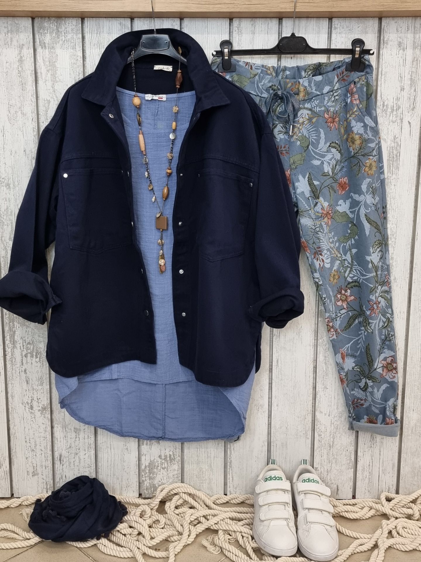 Pudubutik olarak tasarladığımız Kot Ceket, kadınlar için oversize kesimi ve rahat yapısıyla gün boyu konfor sunuyor. Lacivert tonu, klasik ve zamansız bir görünüm sağlarken, cepli tasarımı ve çıt çıtlı kapanışı pratik kullanım imkanı sunuyor. Etek ucu oval kesimiyle modern bir dokunuş kazanan bu Ceket, her bedene uyum sağlayan bol kesimiyle rahat ve şık bir tercih oluyor.