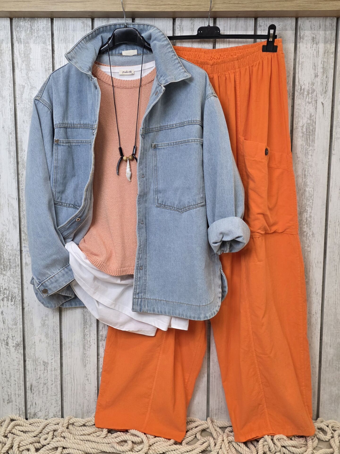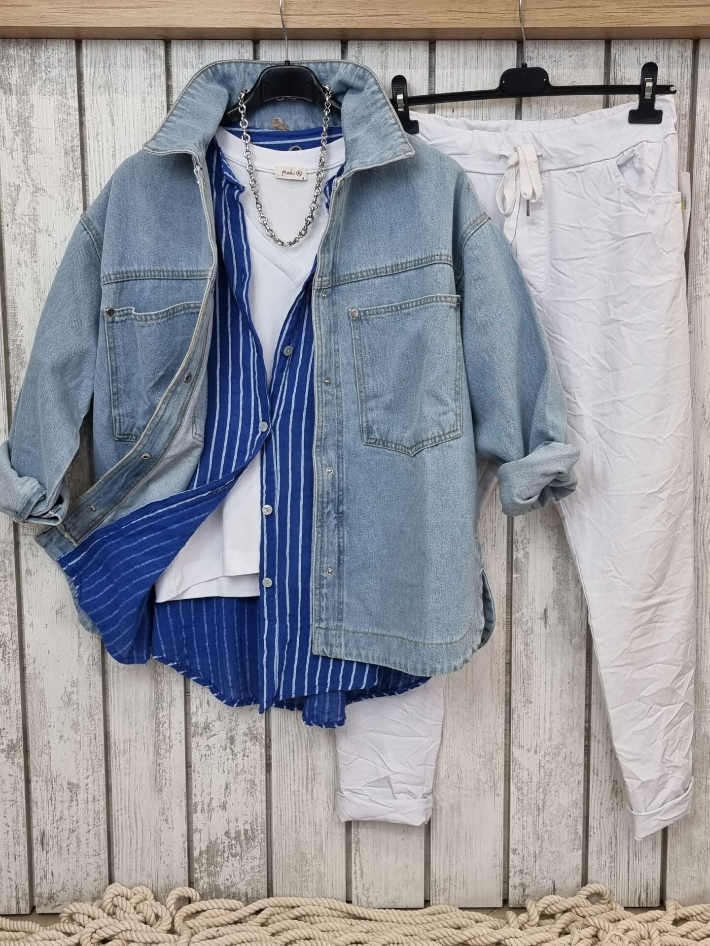 Bol kesim kot ceket.