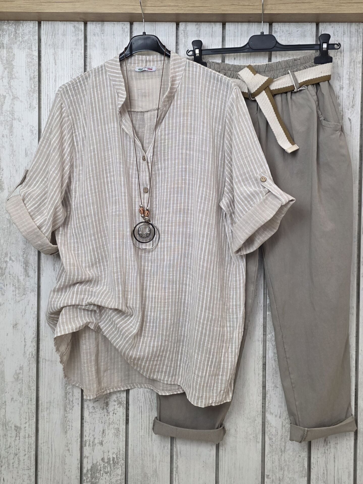 %100 pamuk çizgili İtalyan gömlek.