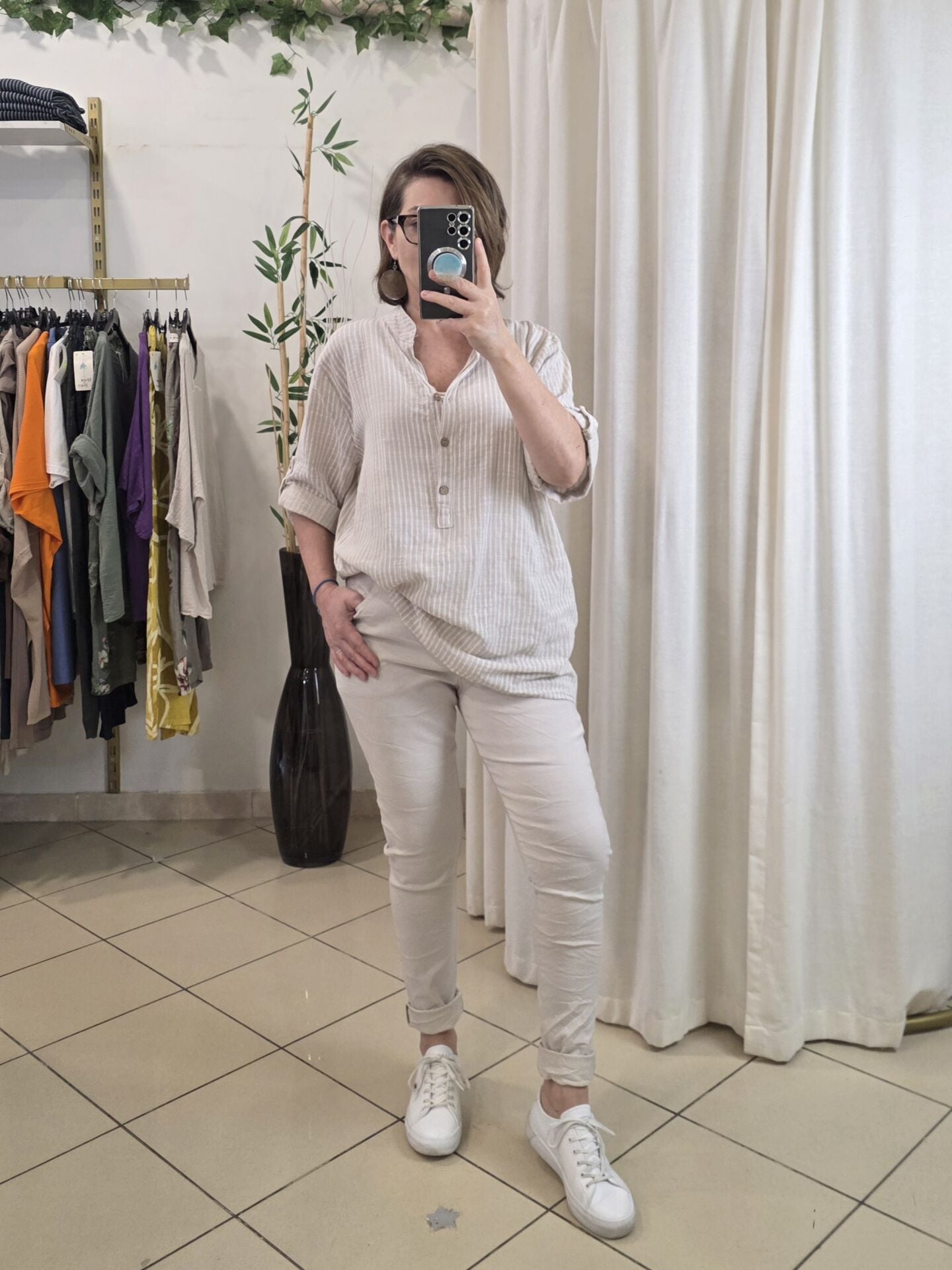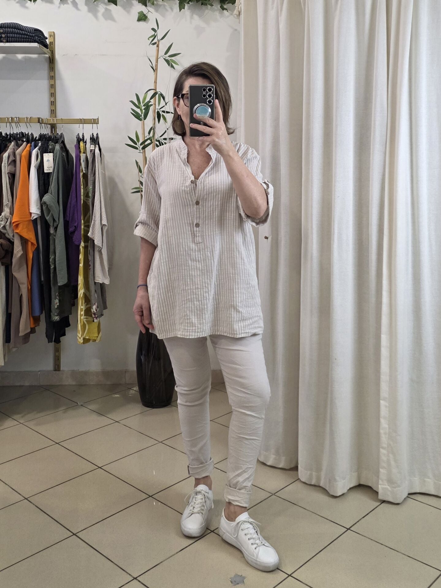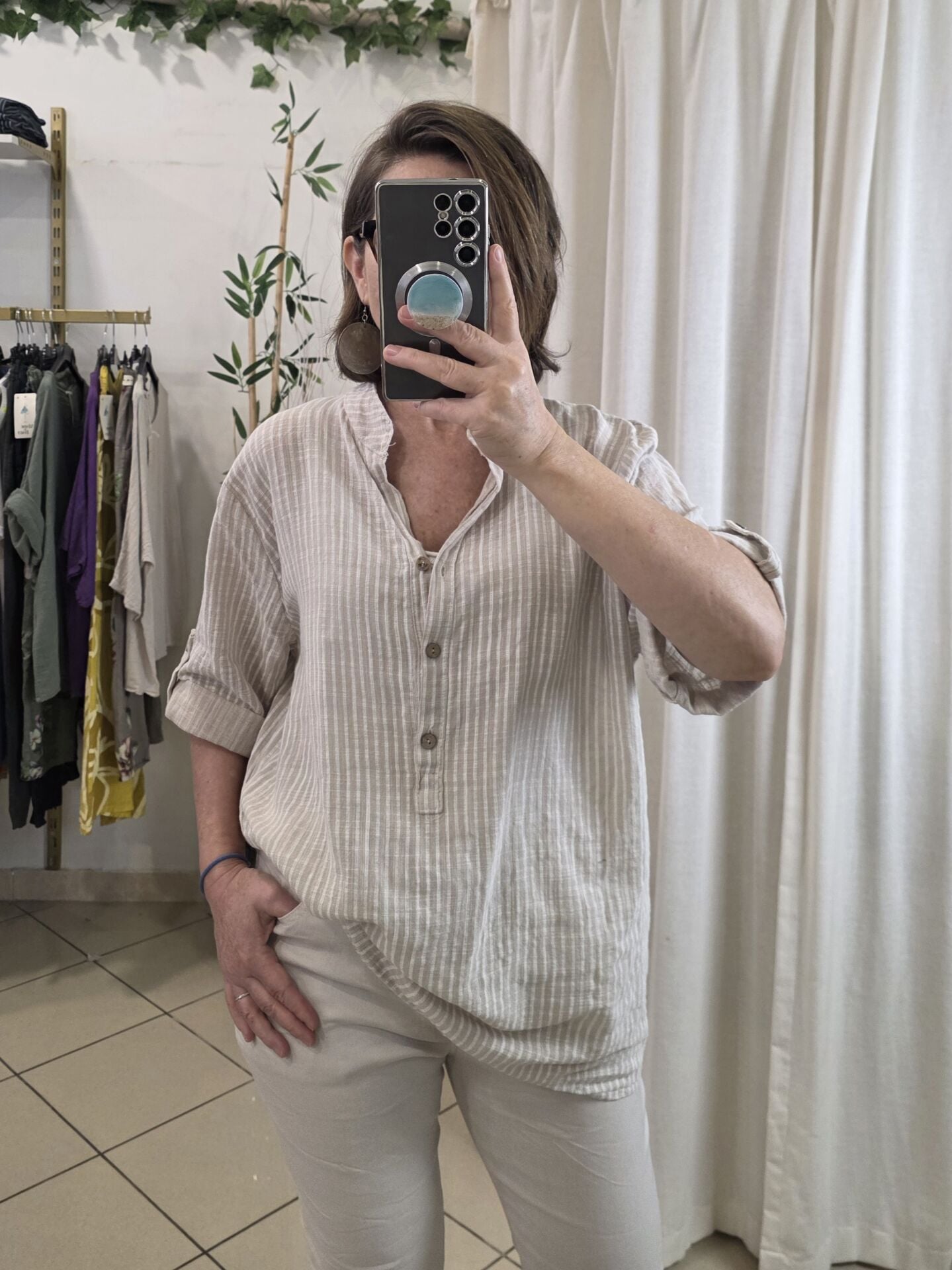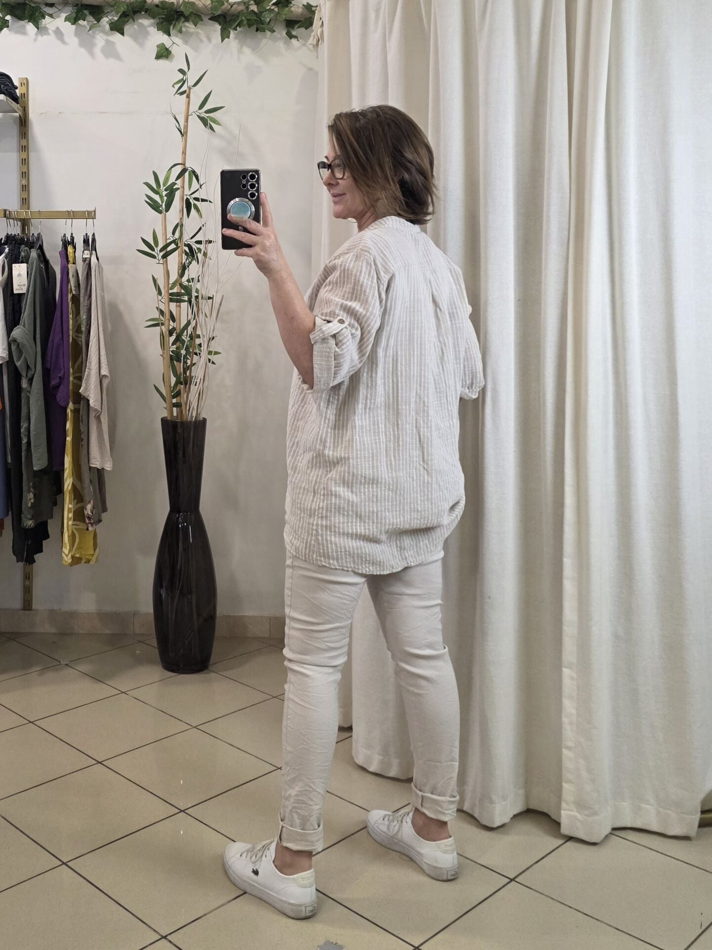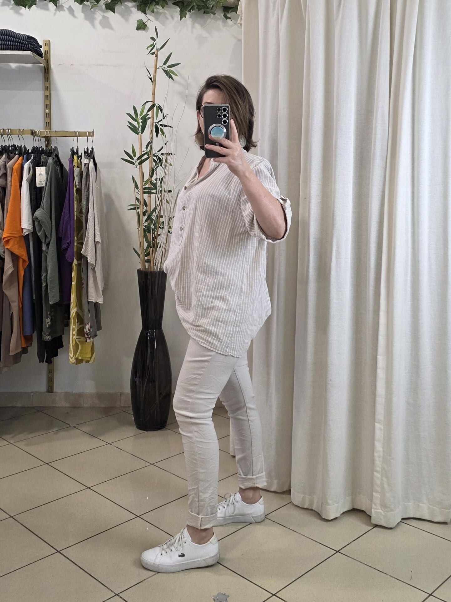 Boyuna çizgili gömlek.