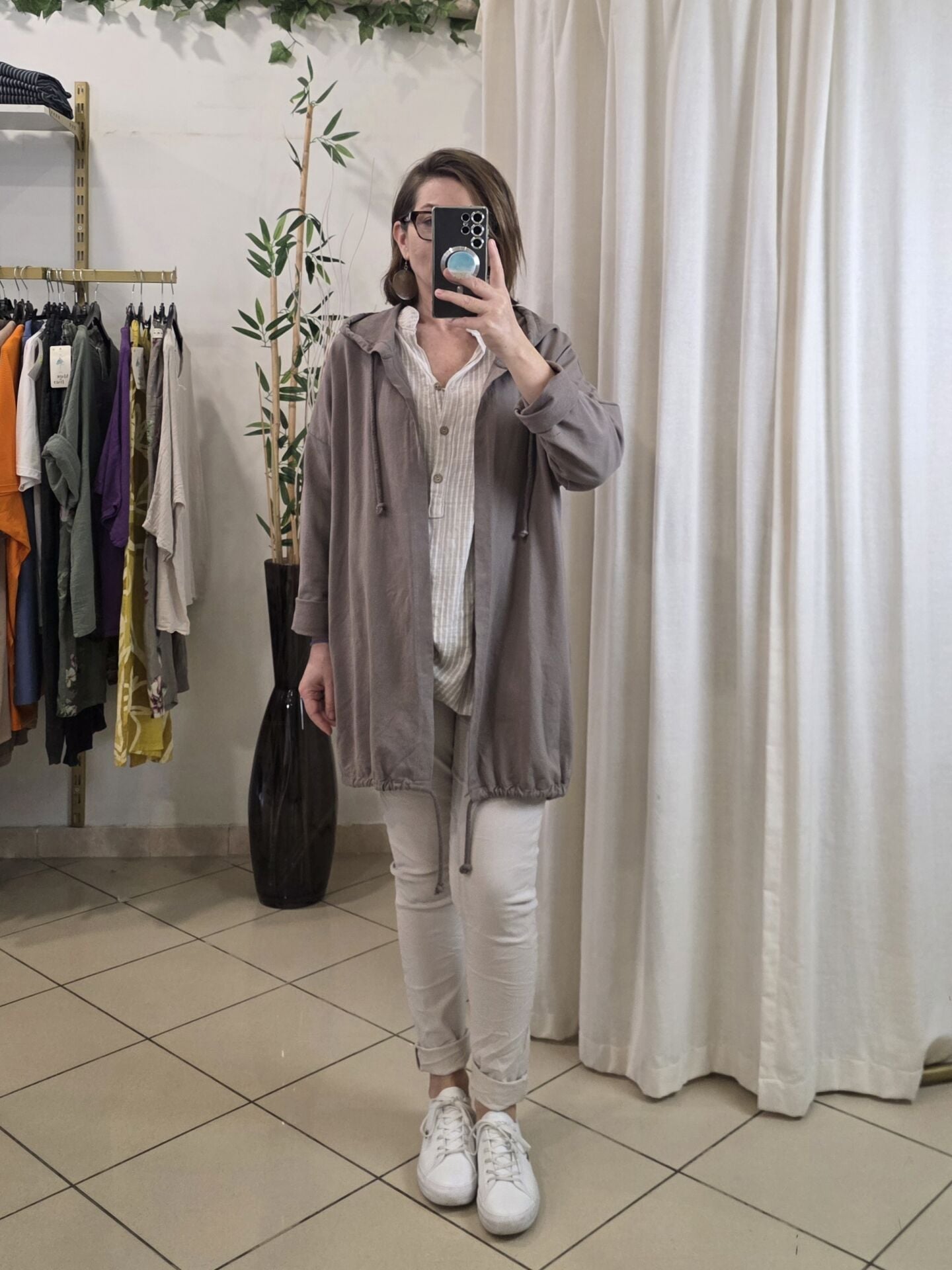 Oversize Pamuklu Çizgili Bej Gömlek