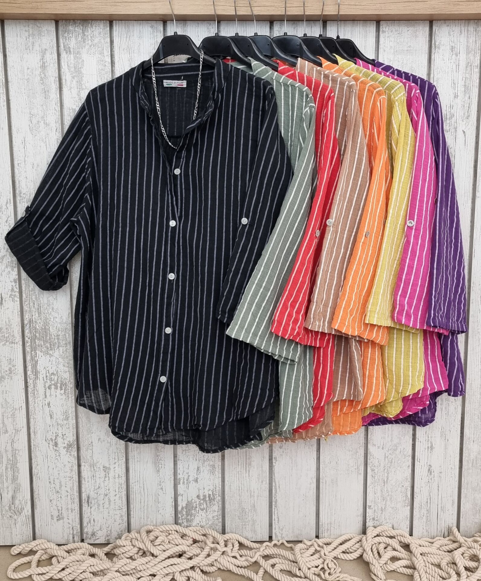 %100 pamuk çizgili İtalyan gömlek.