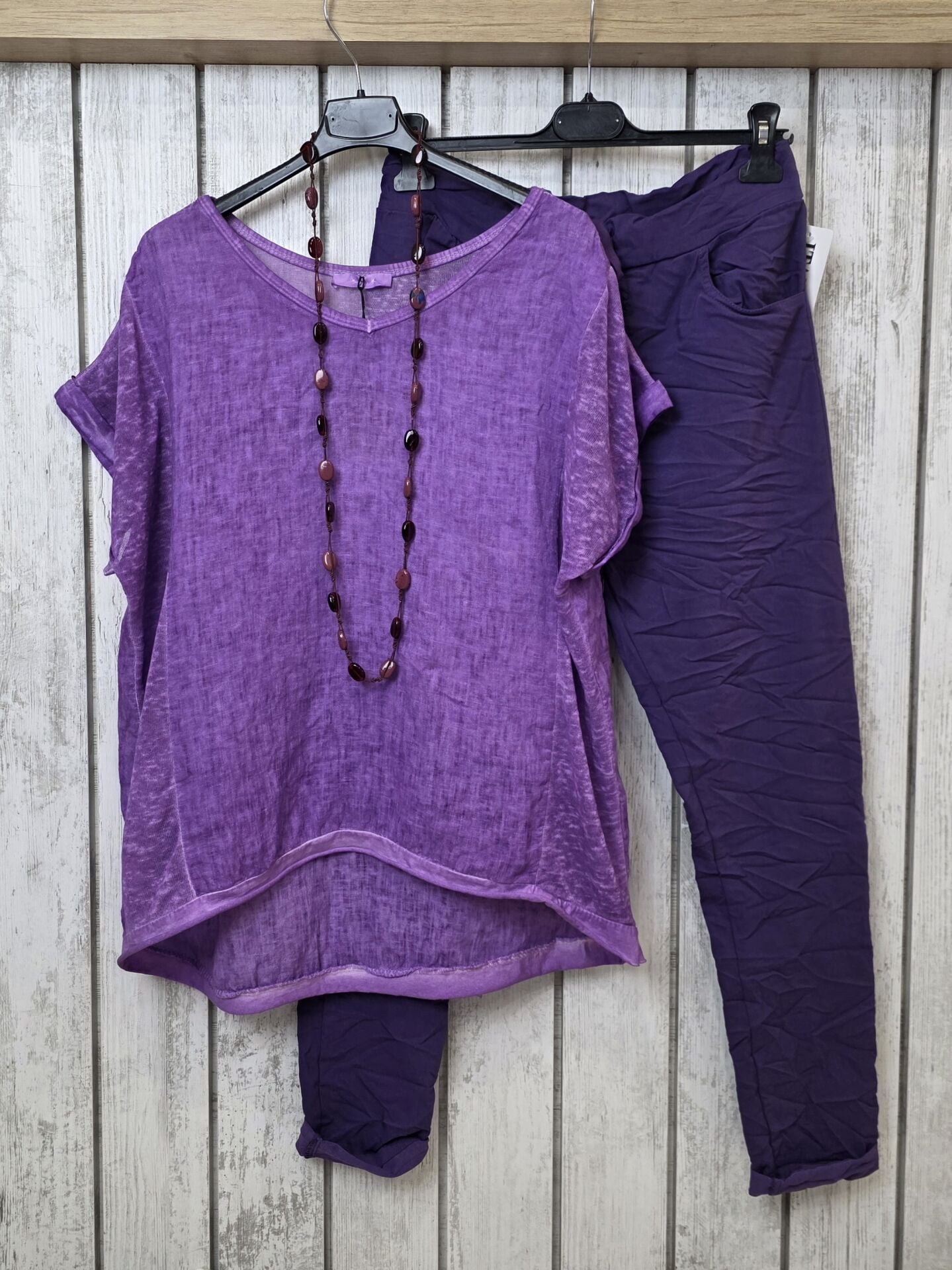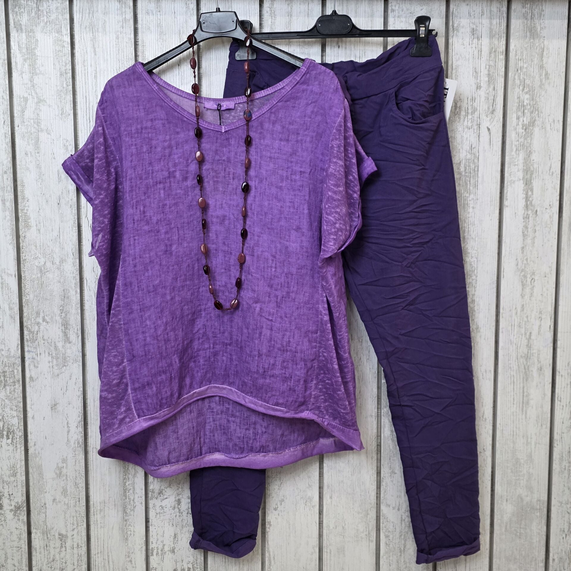 Yıkamalı Oversize Mor Keten Bluz
