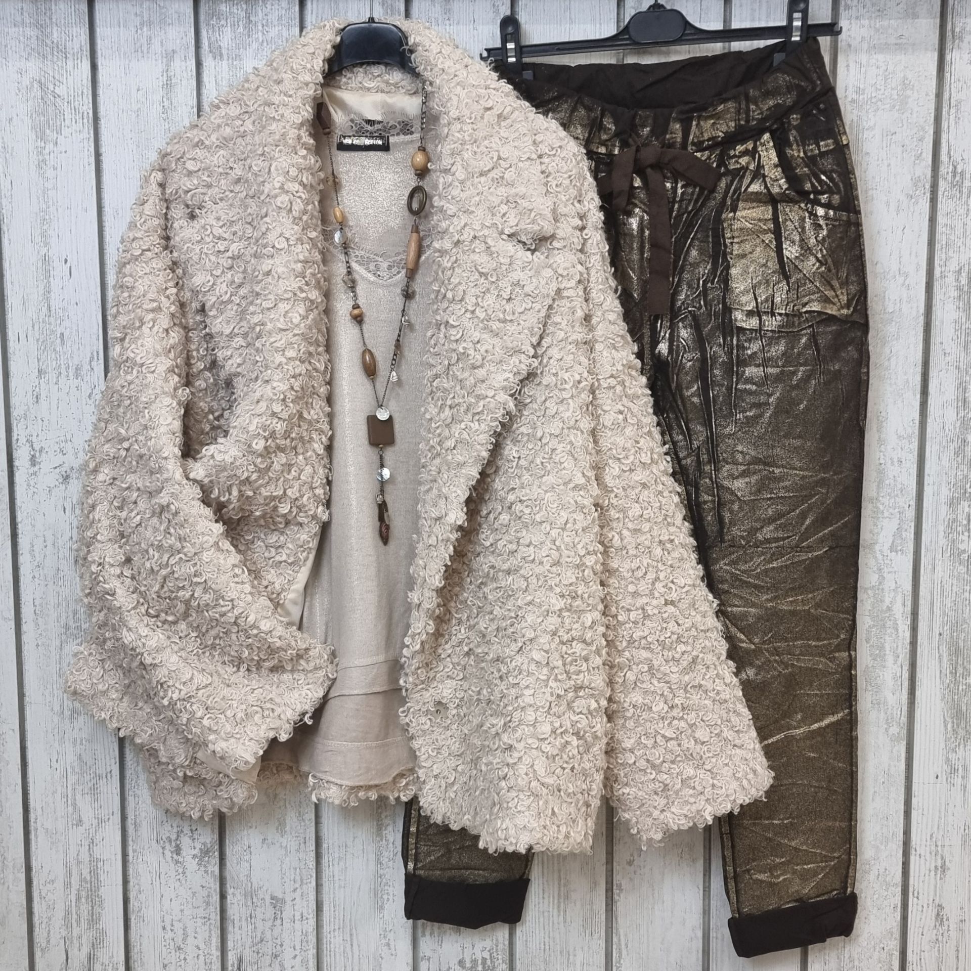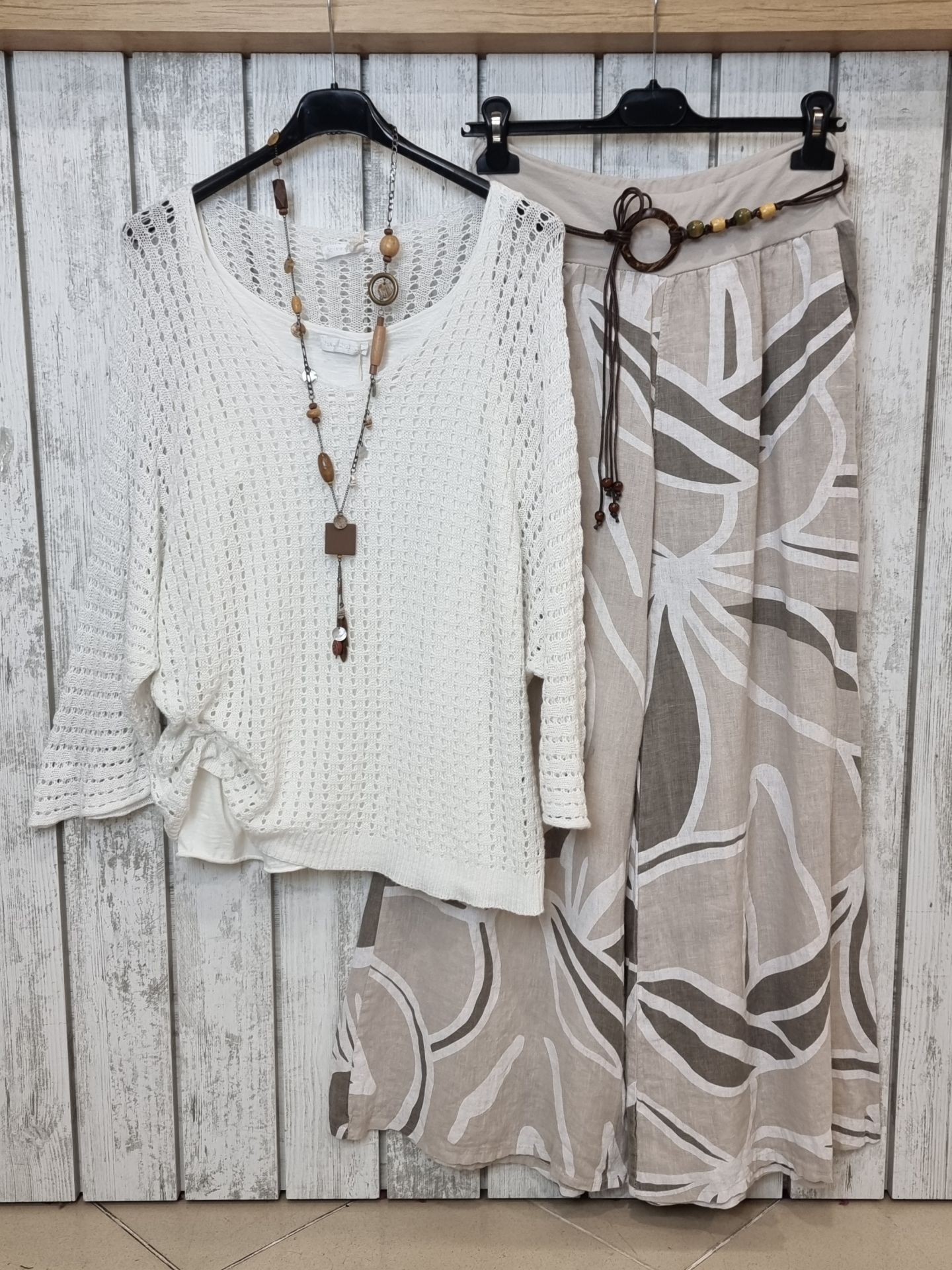 Midye kabuğu ve ahşap boncuklu.