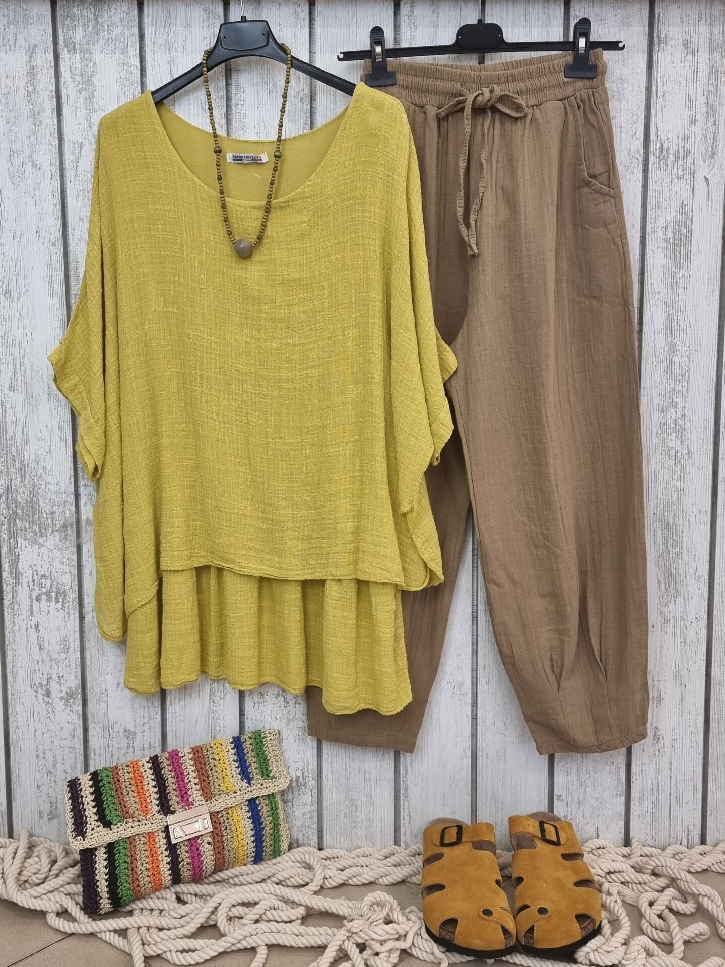 Paçası Pilili Keten Pantolon Olive Yeşil