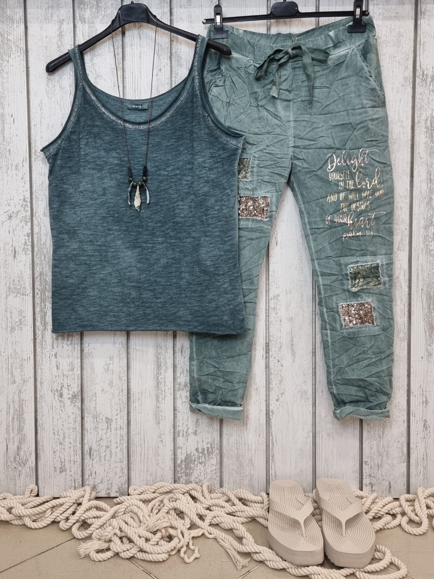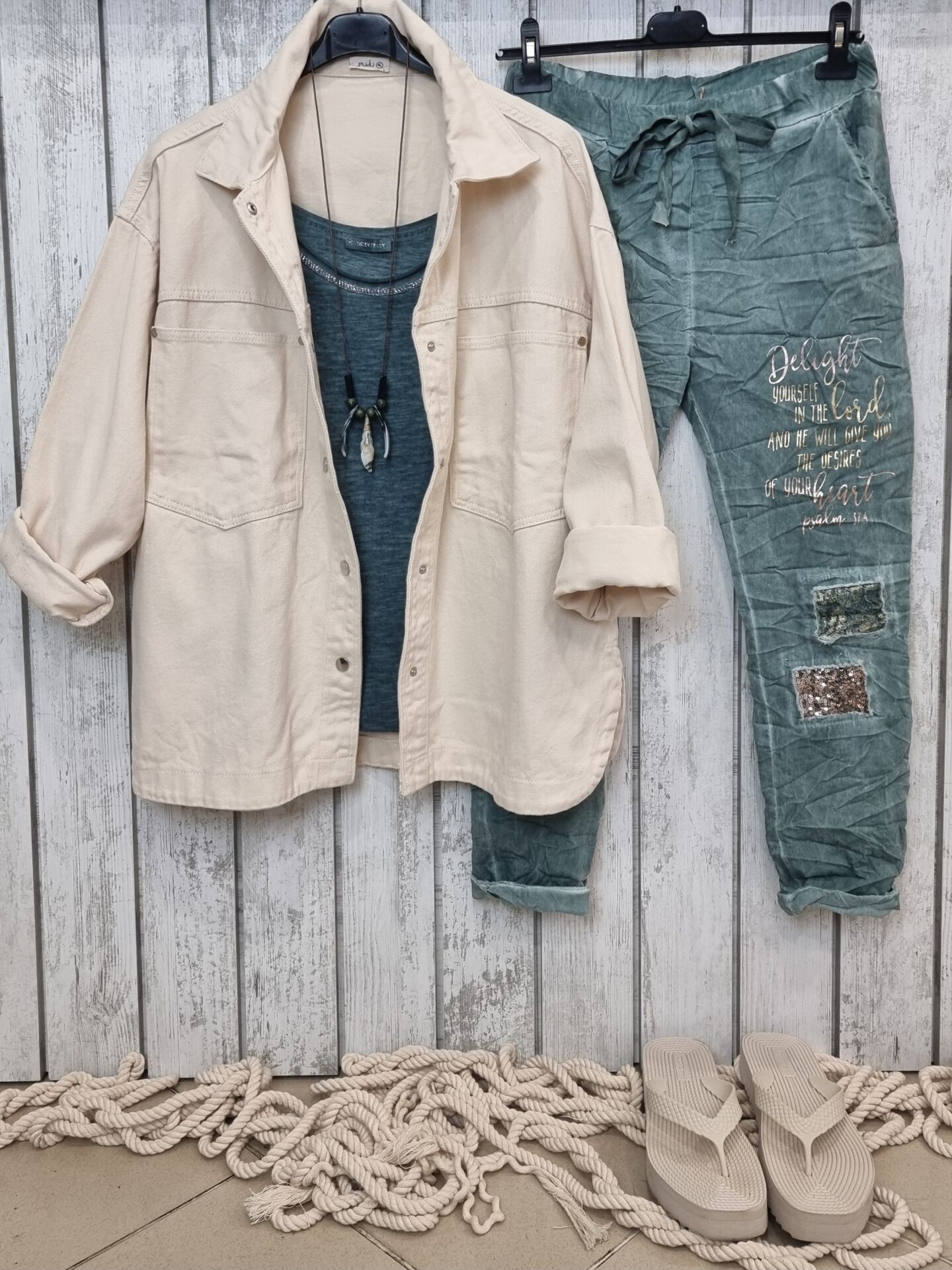 Eskitme yıkamalı görünümüyle farklılaşan bu military tonundaki pamuklutasarım ürün, güçlü ve sade tarzı bir araya getiren kadınlar için tasarlandı. Simli ip dikişlerle hareket kazanan yapısı, esnek dokusuyla vücudu sıkmadan sarar. %100 pamuk içeriği sayesinde cilde nefes aldırır, özellikle sıcak günlerde konforun adresi olur. Şehirde, tatilde ya da günlük koşuşturmalarda eşlik eden bu atlet, özgün duruşu ve naturel rengiyle kadın stiline sağlam bir katkı sunar.