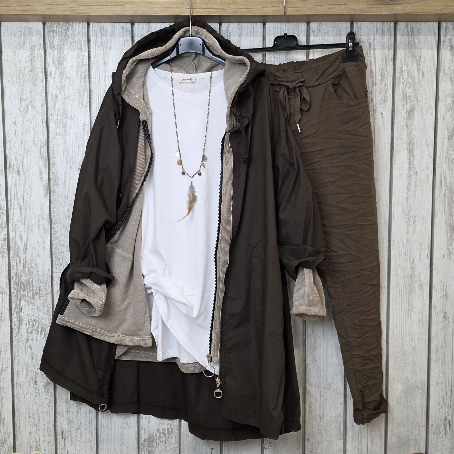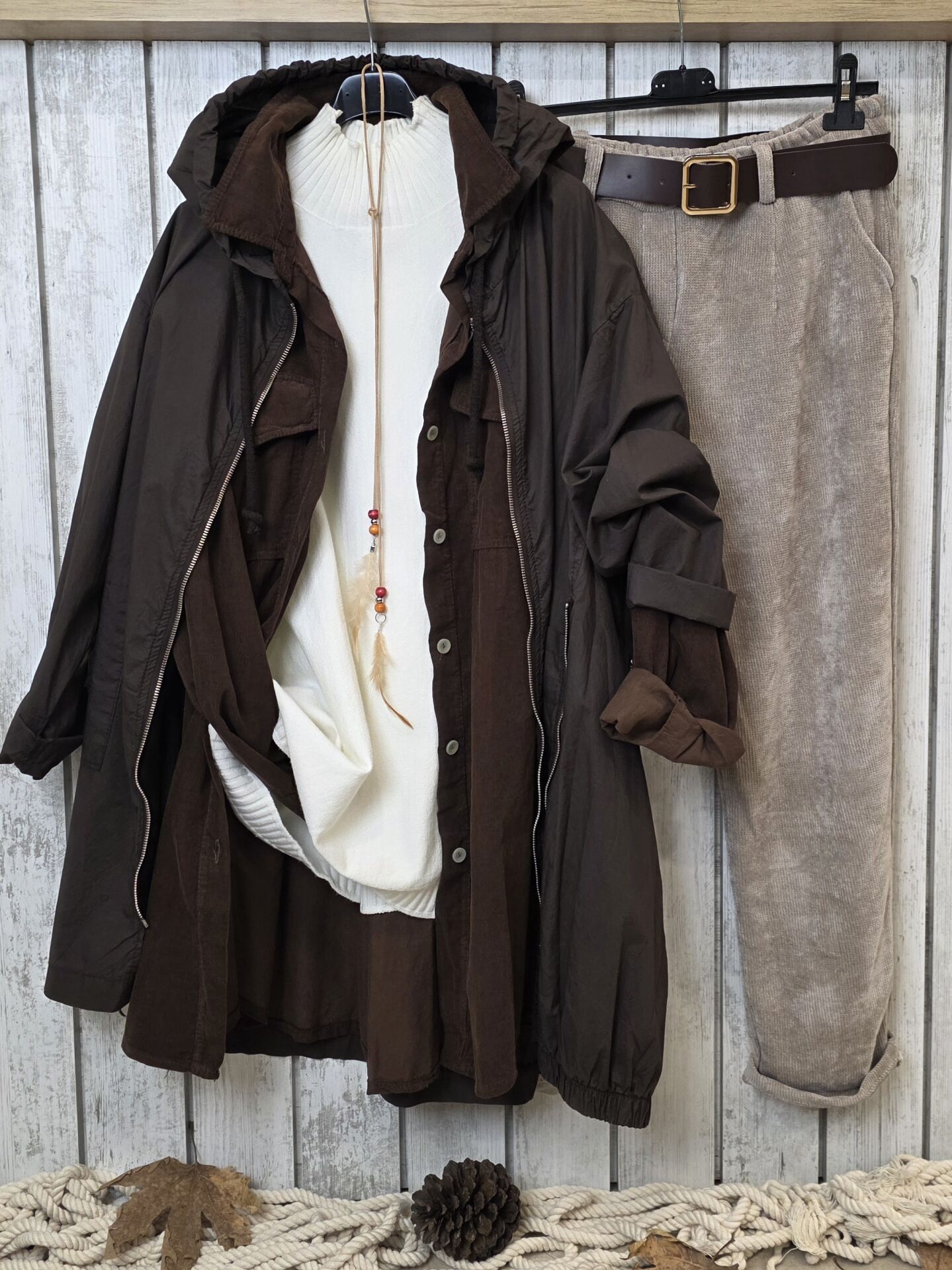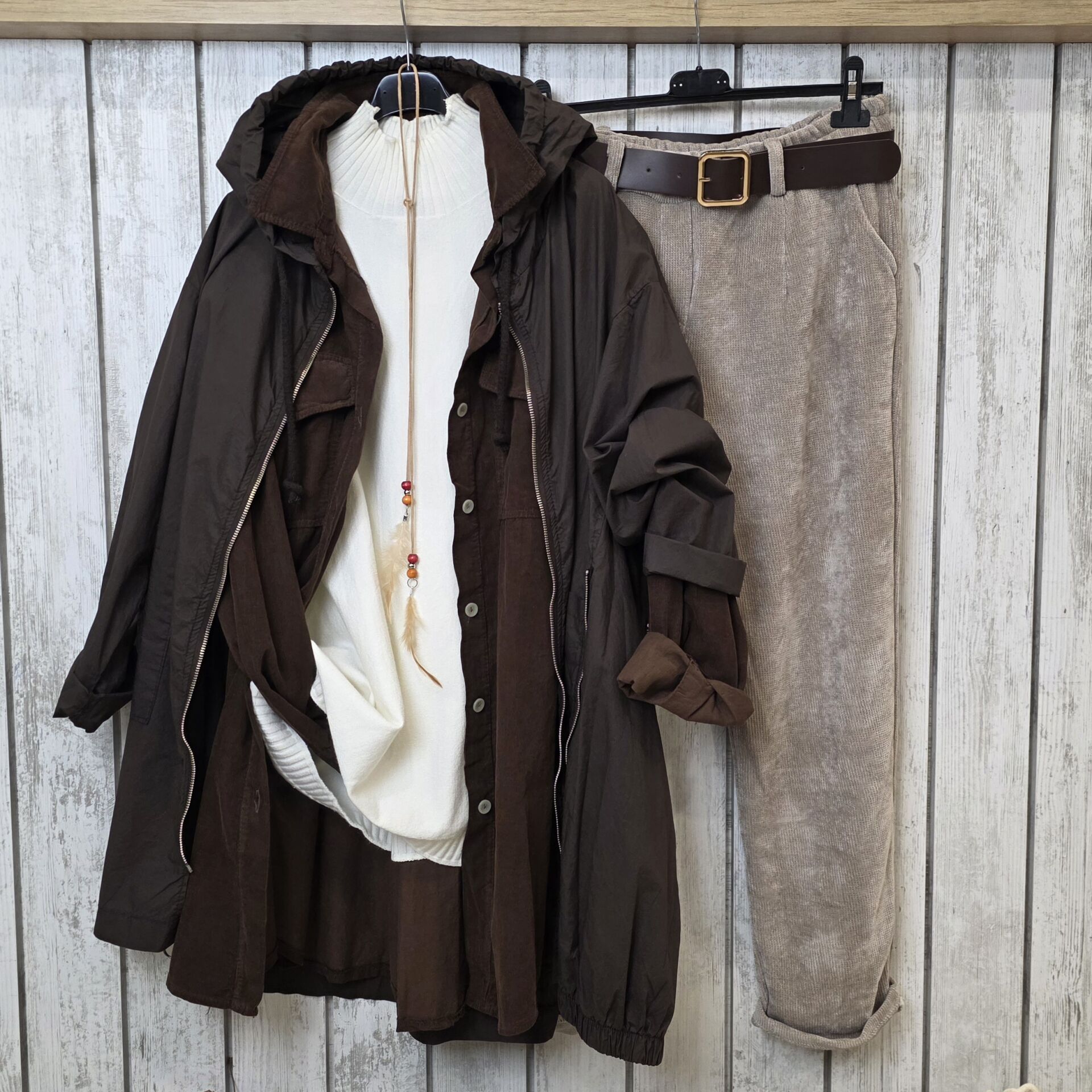 Trençkotumuz iki kalıp olarak kullanılabiliyor. Yan fermuarları açılınca genişliyor ve beden olarak 50/52 bedene kadar uyumlanıyor.