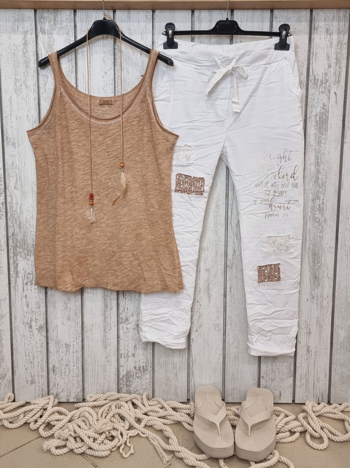Doğal tonların zarafetini yansıtan bu camel renkli atlet, simli ip dikiş detaylarıyla sade ama etkileyici bir görünüm sunar. Pamuklu yapısı sayesinde cildin nefes almasını sağlar, esnek dokusu gün boyu özgürce hareket etmeni mümkün kılar. 46-48 bedene kadar uyum sağlayan yapısıyla her kadına hitap eden bu atlet, ister denimle ister ketenle kombinlensin; şıklık dozunu hep dengede tutar. Dolabında konfor ve stilin bir araya geldiği parçalar arayan kadınlar için vazgeçilmez bir alternatiftir.