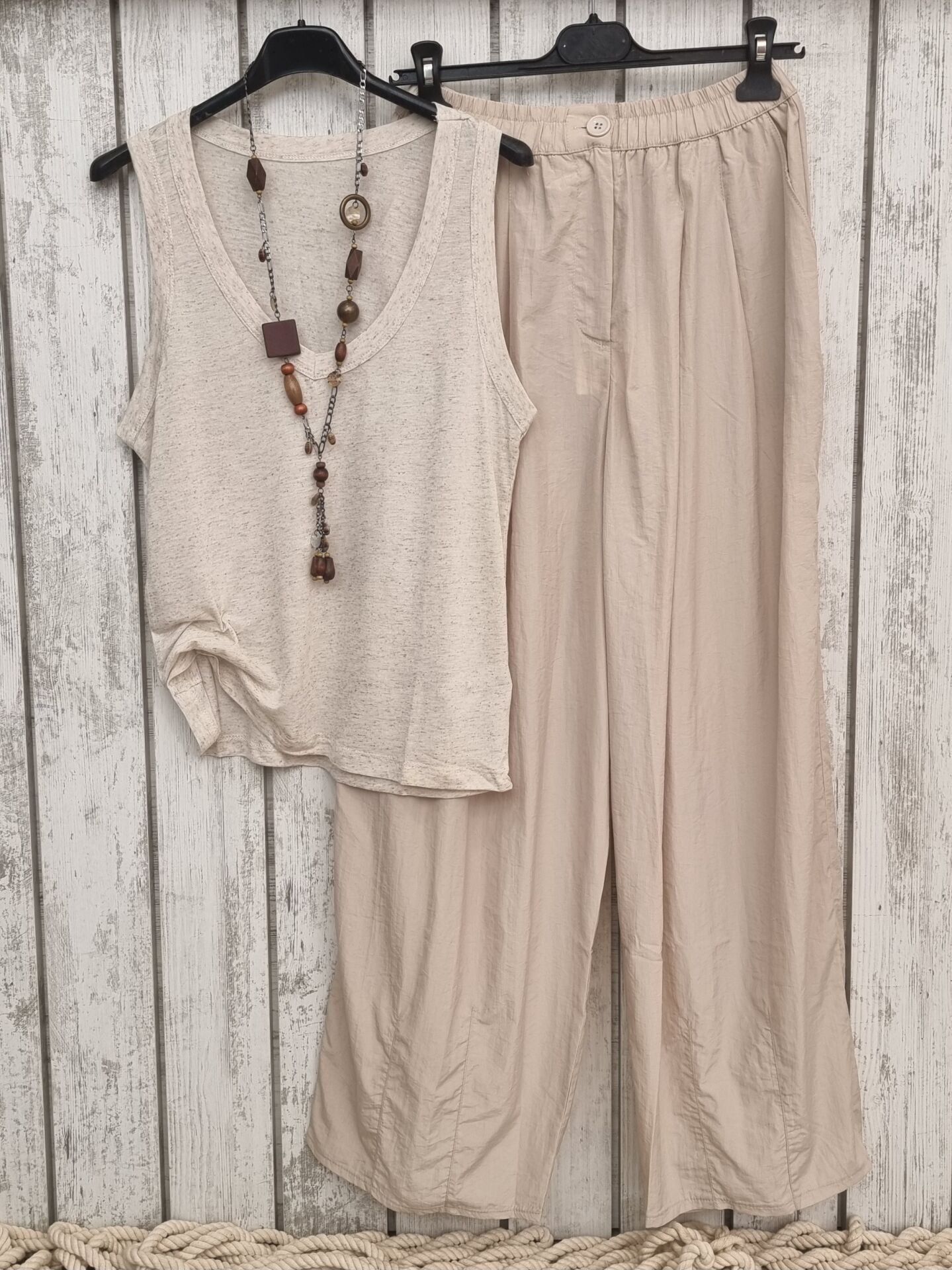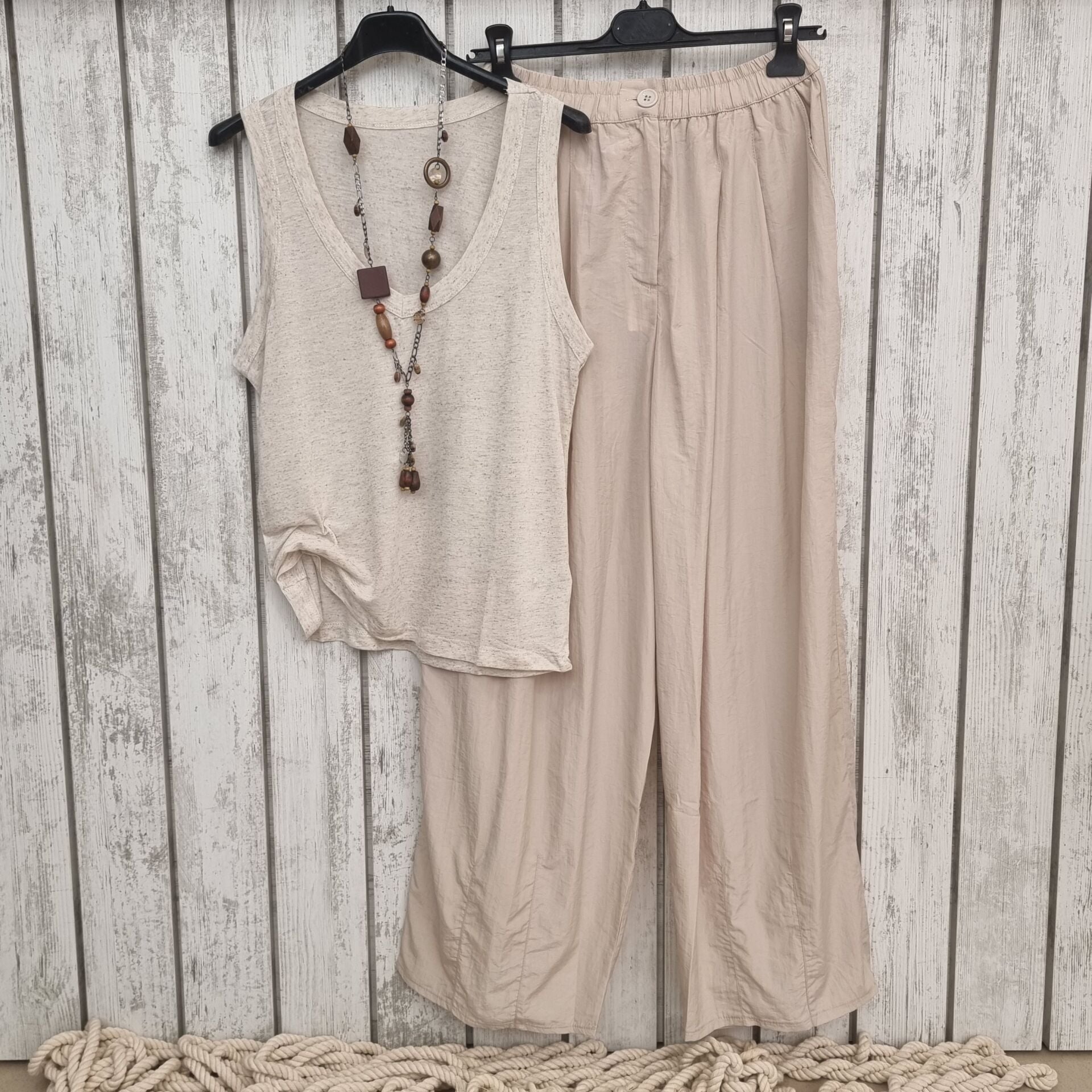 Paraşüt Kumaş Bol Paça Bej Pantolon