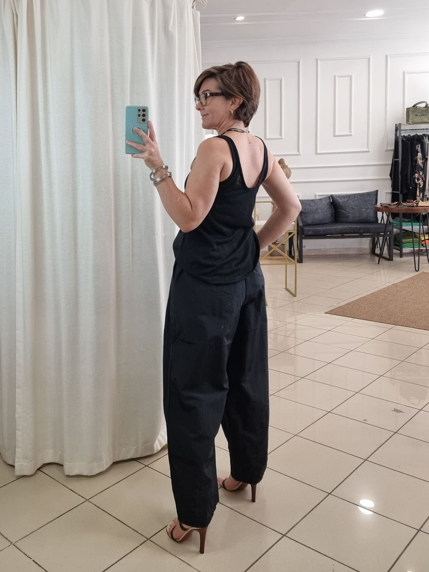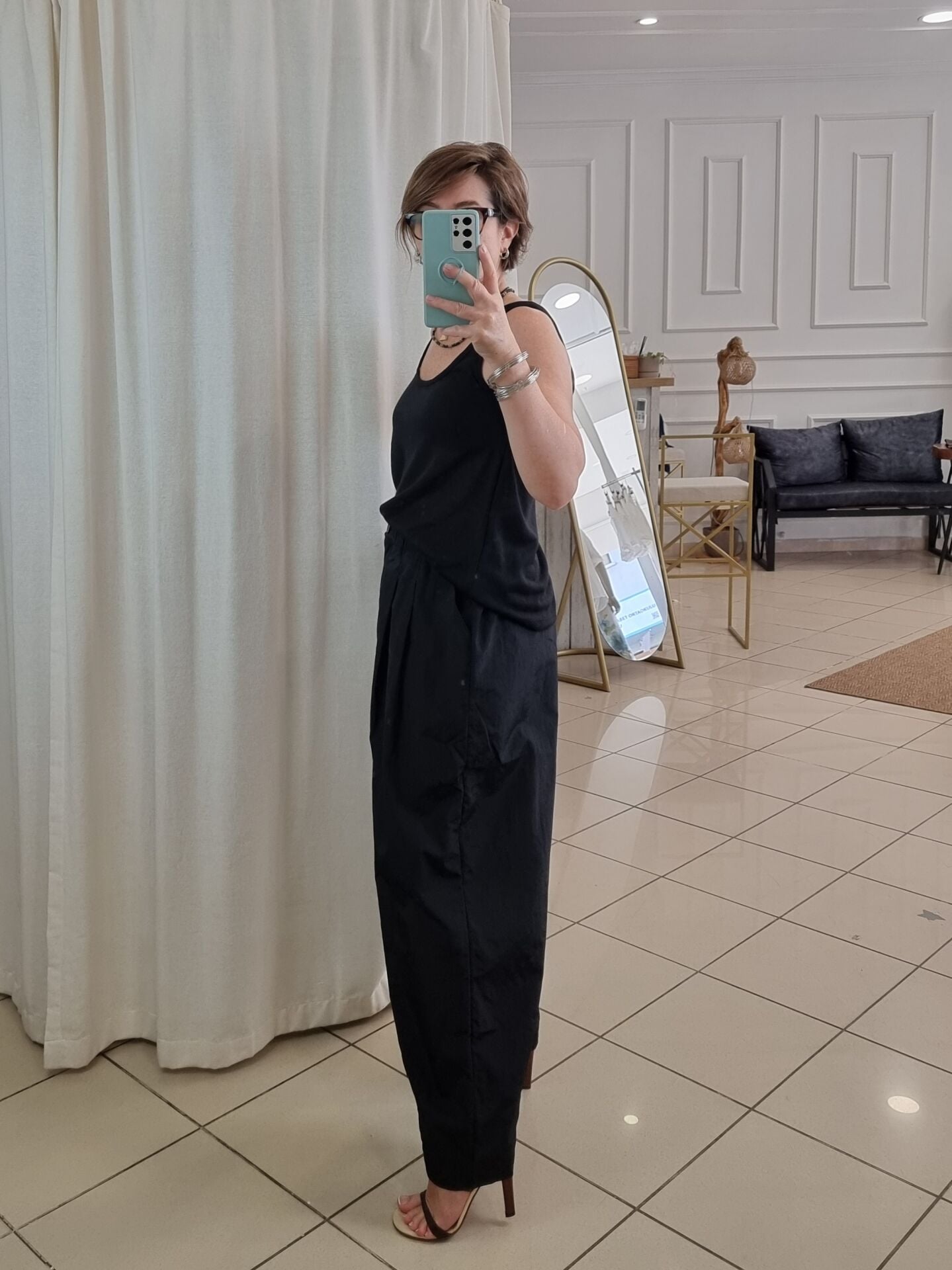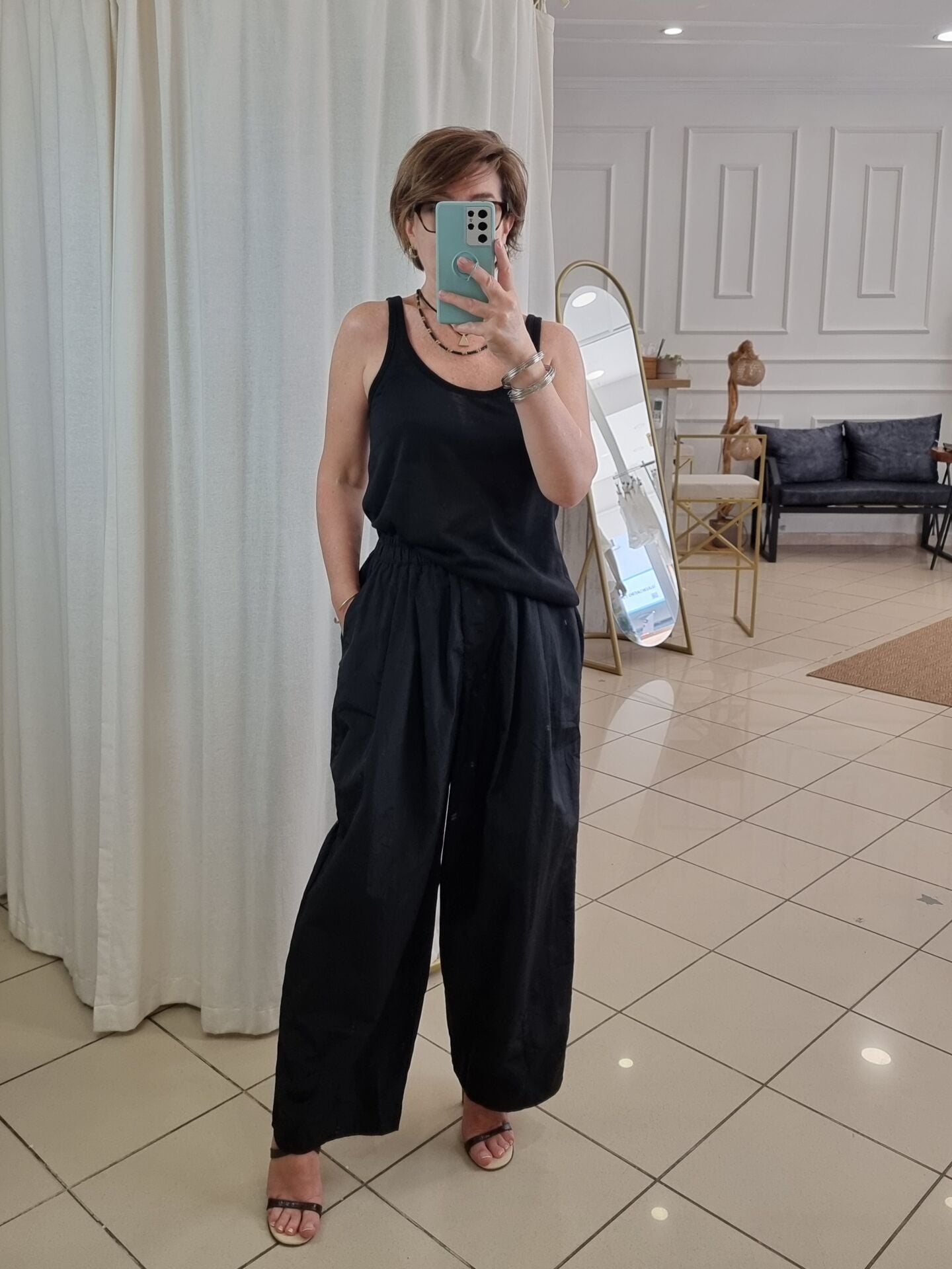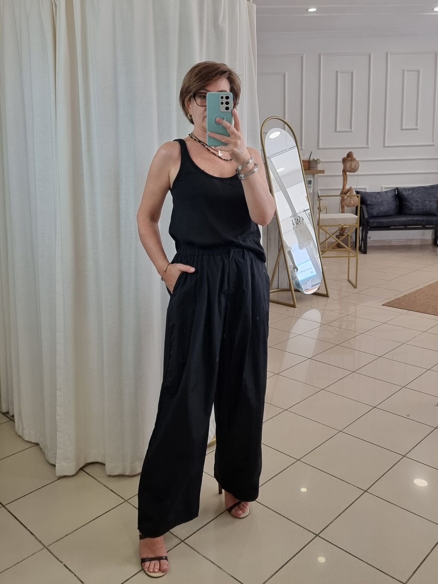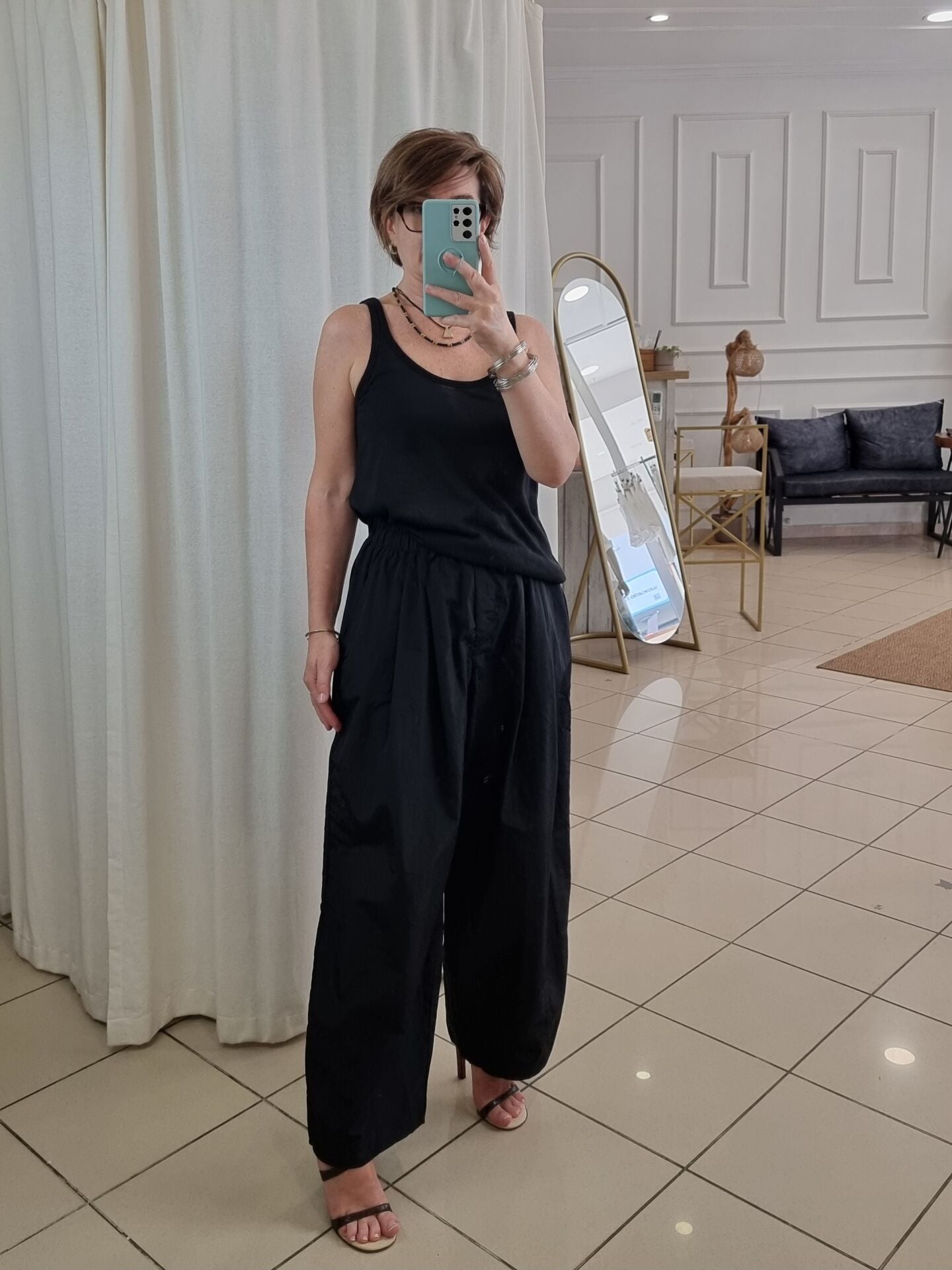 İnce paraşüt kumaş bol paça pantolon.