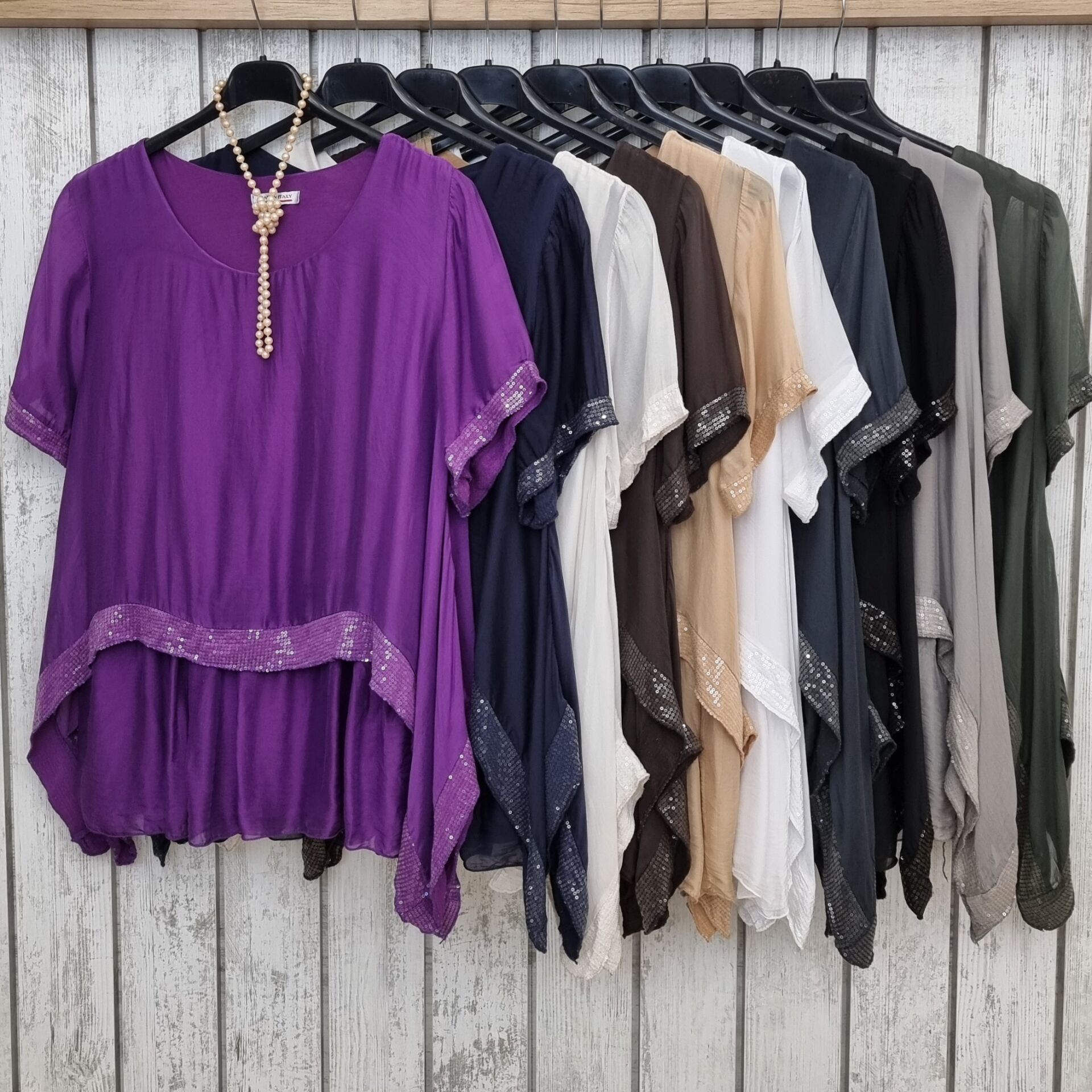 Payetli İpek Mor Bluz İtalyan