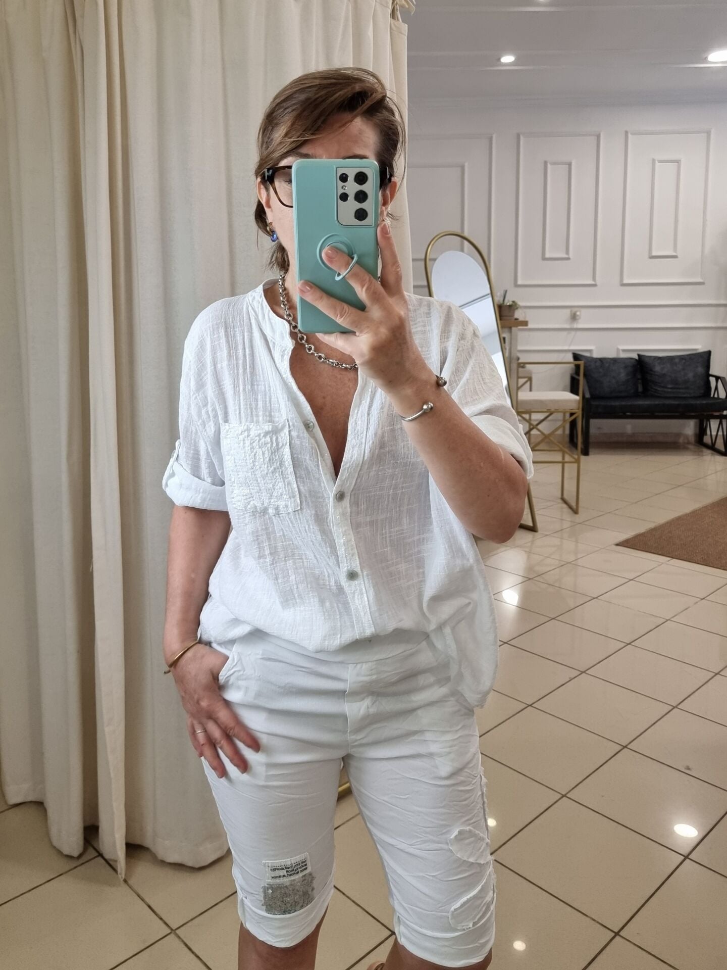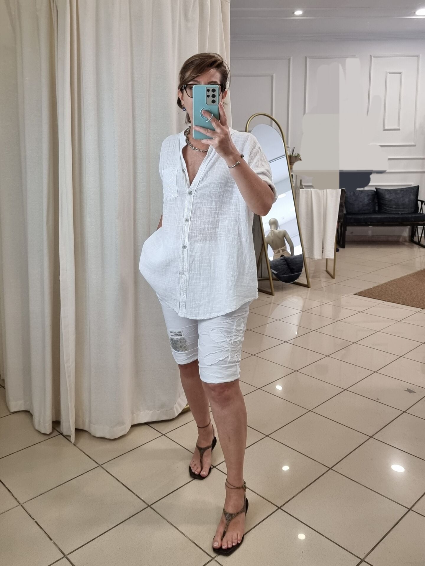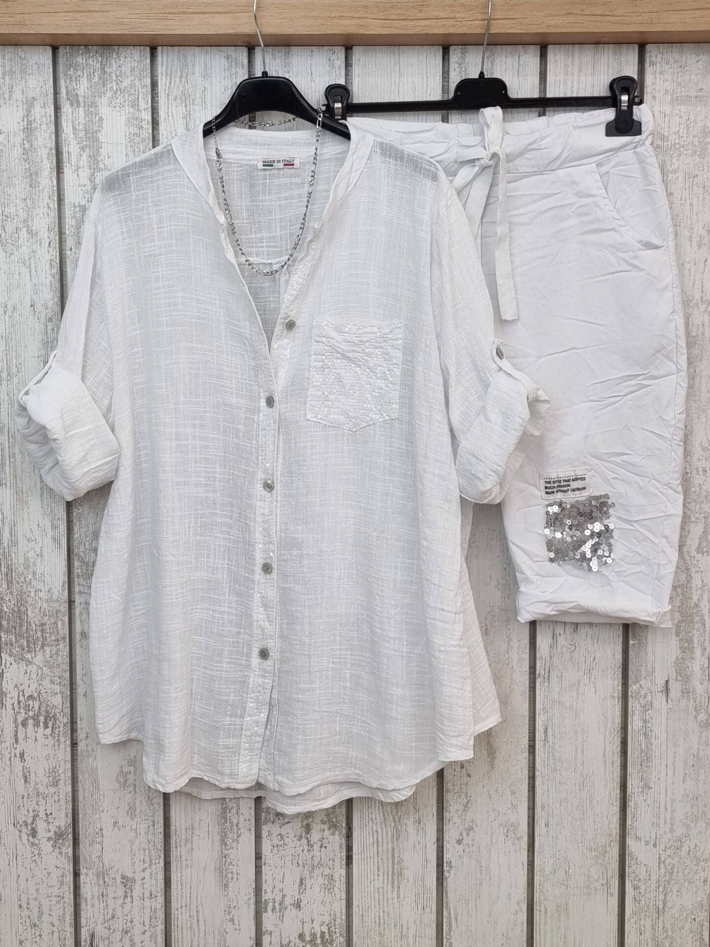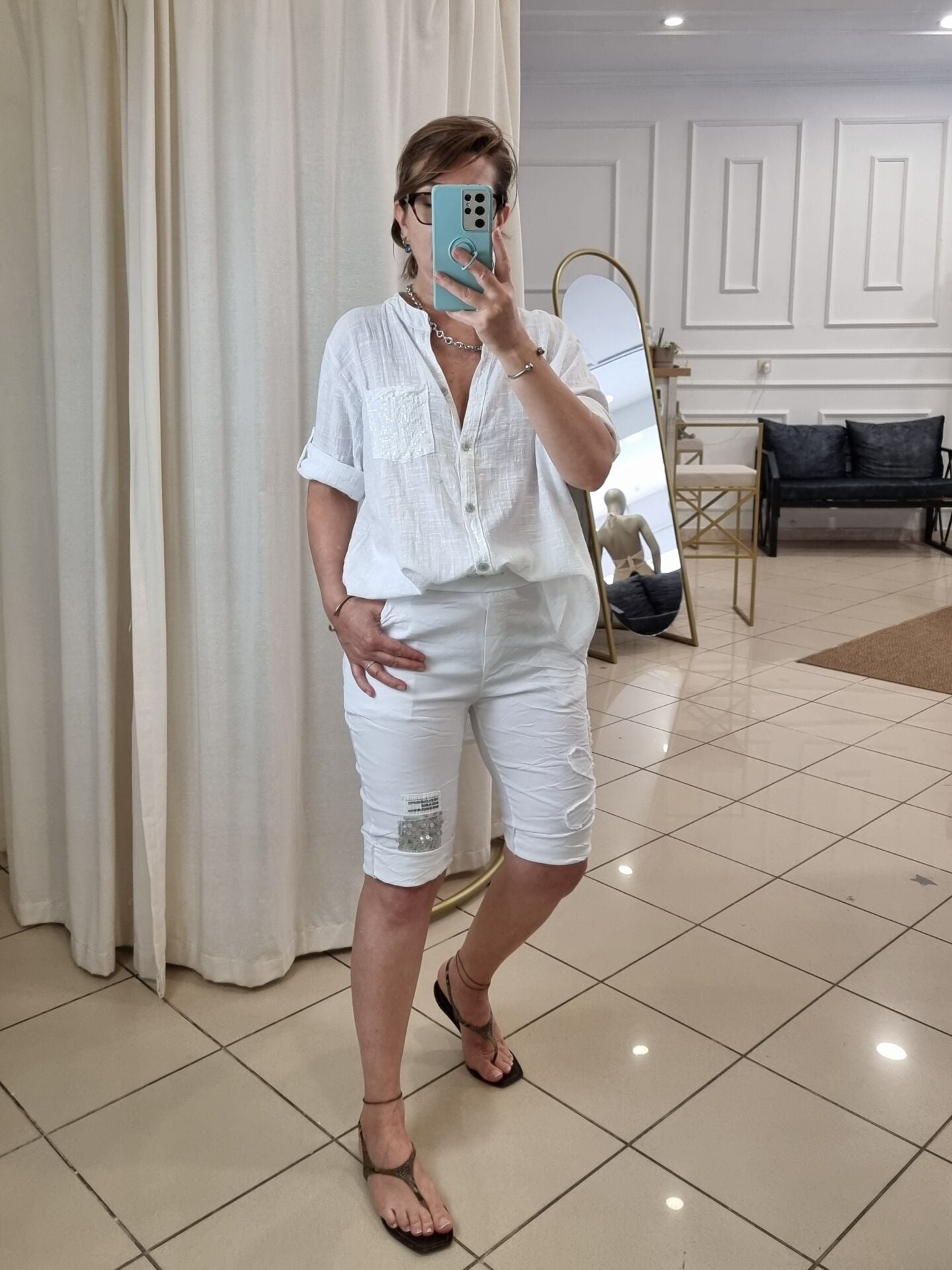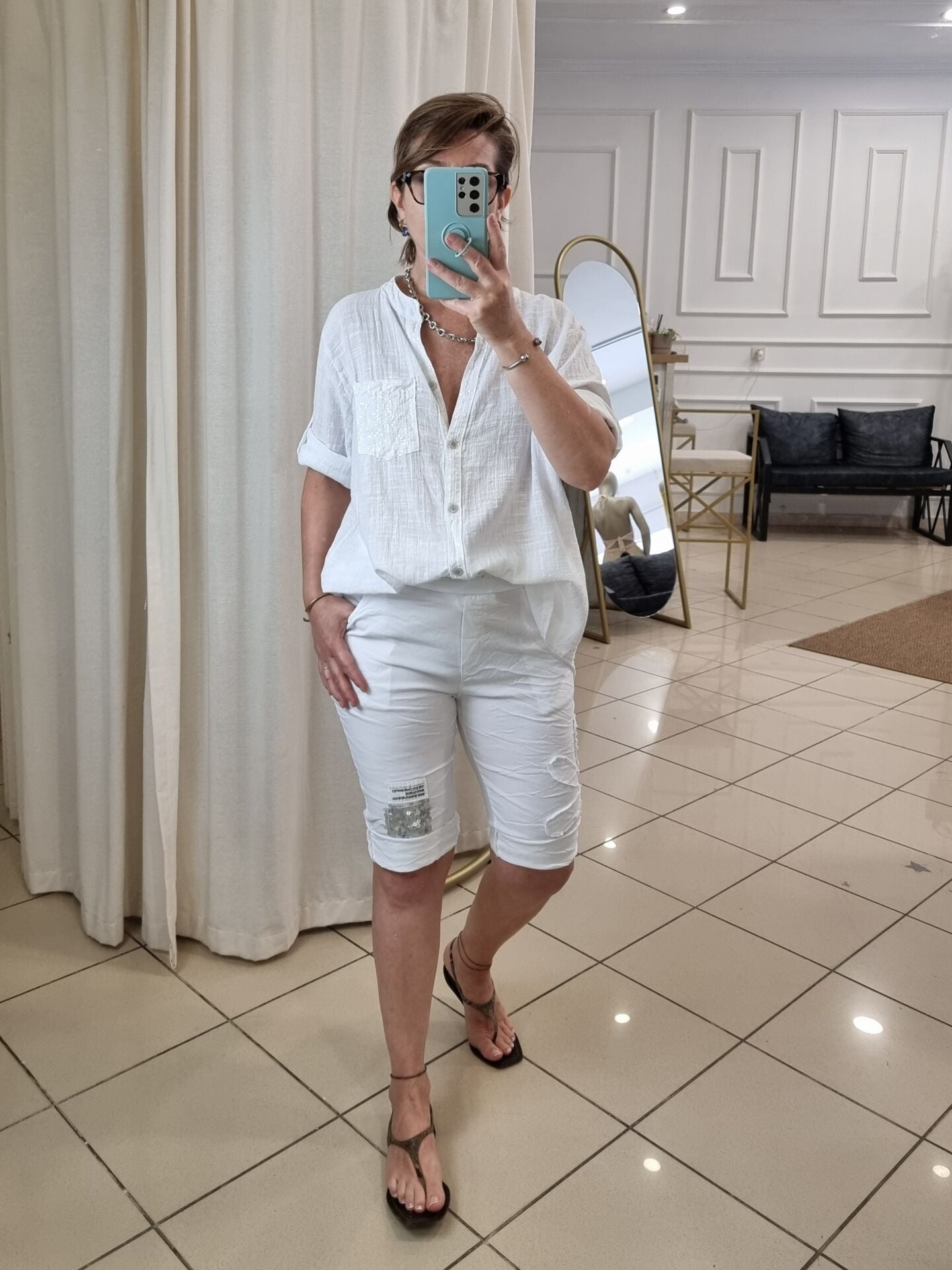 Payetli Likralı İtalyan Beyaz Bermuda Şort
