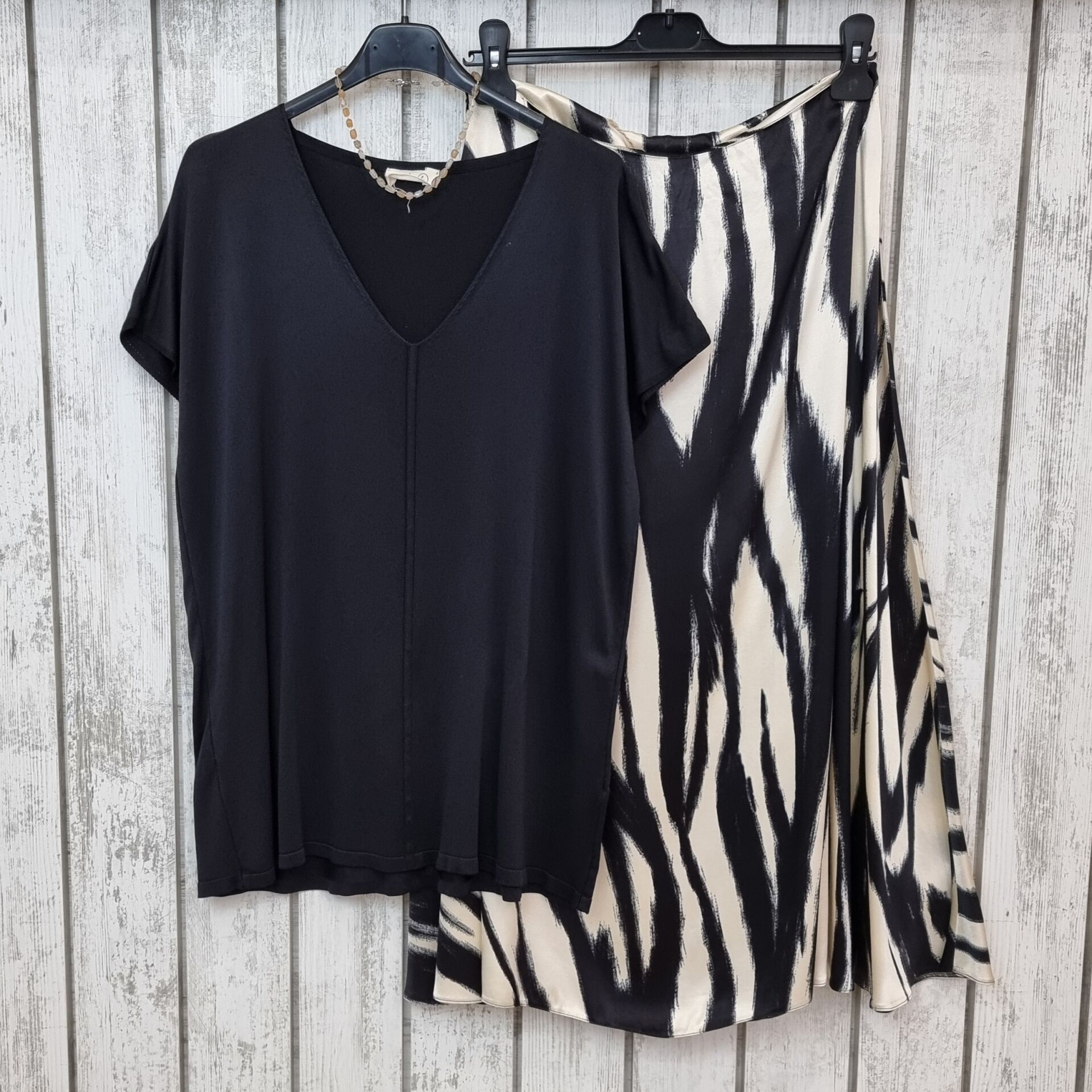 Göz alıcı zebra deseniyle dikkat çeken bu midi boy rayon çan etek, şıklığı rahatlıkla buluşturuyor. Hafif ve dökümlü kumaşı sayesinde yürürken zarif bir hareket sağlar. Yandan fermuarlı yapısı vücuda otururken, volanlı kesimiyle feminen bir siluet oluşturur. Çan formuyla her vücut tipine uyum sağlayan bu parça, hem günlük hem özel kombinlerde kullanılabilir. Moda anlayışında doğallığı ve hareketi seven kadınlara özel bir seçenek.