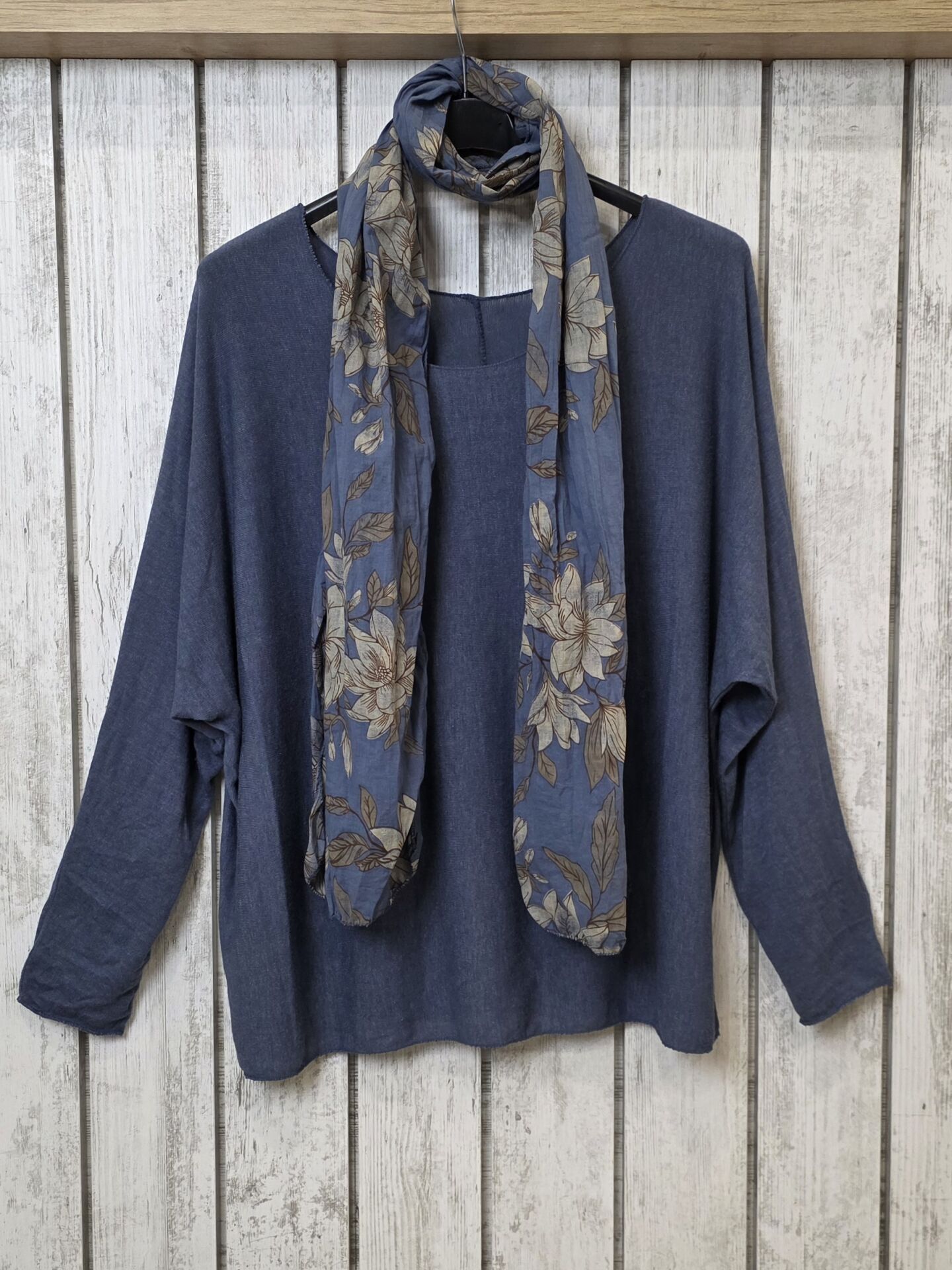 %100 doğal viskon dokuma fular hediyeli İtalyan triko bluz.