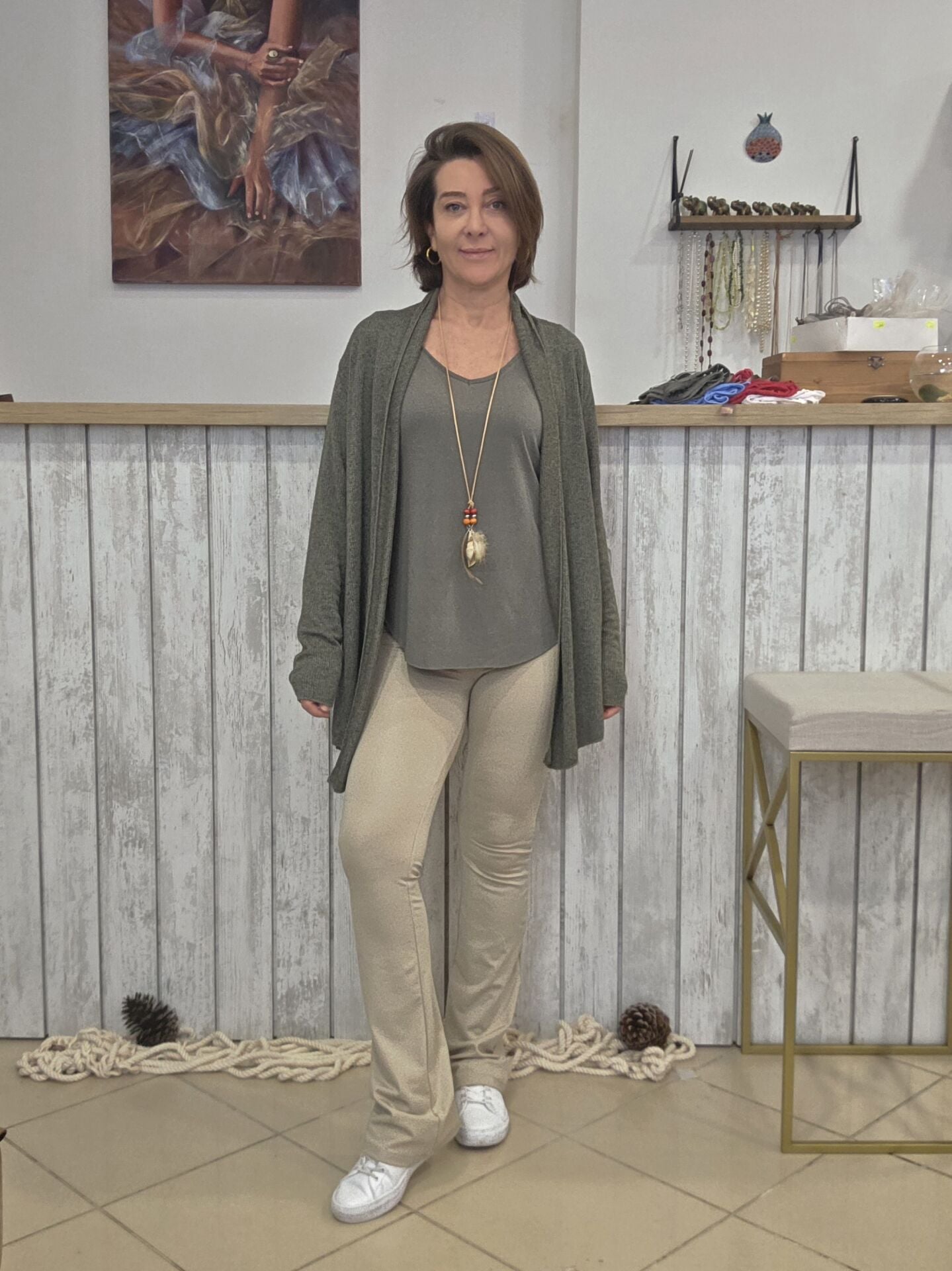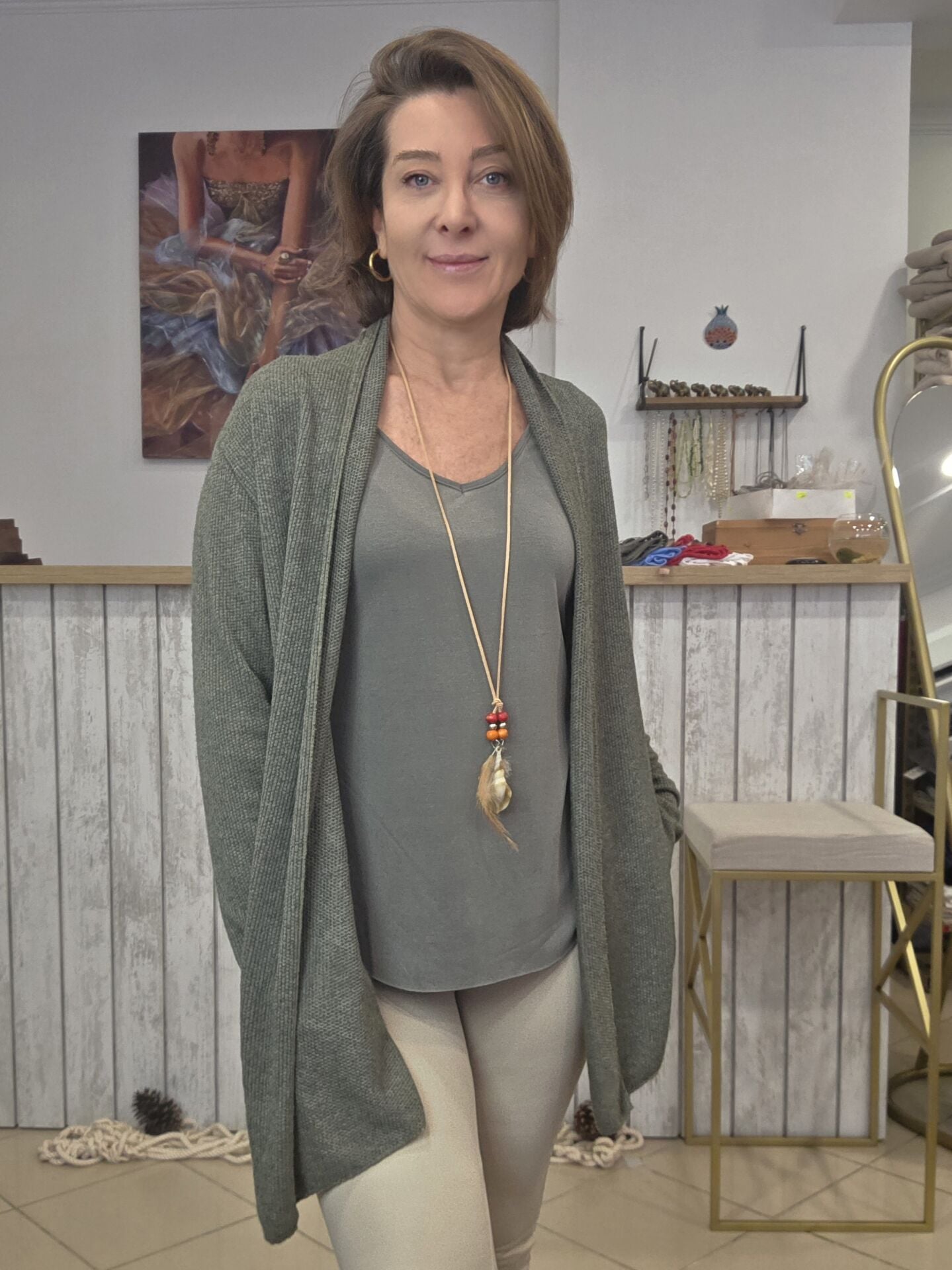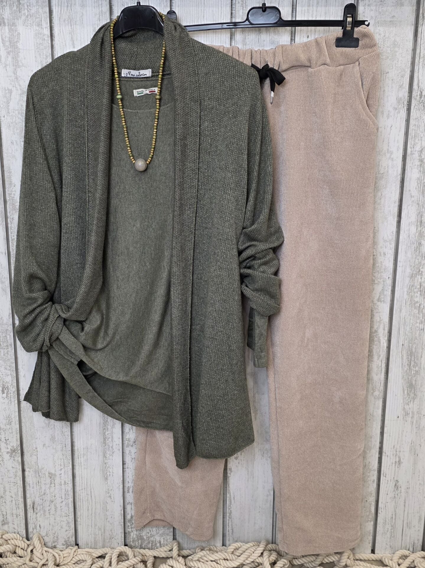Haki Şal Yaka İtalyan Hırka