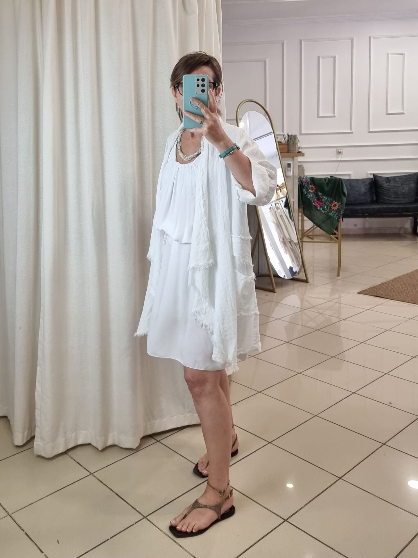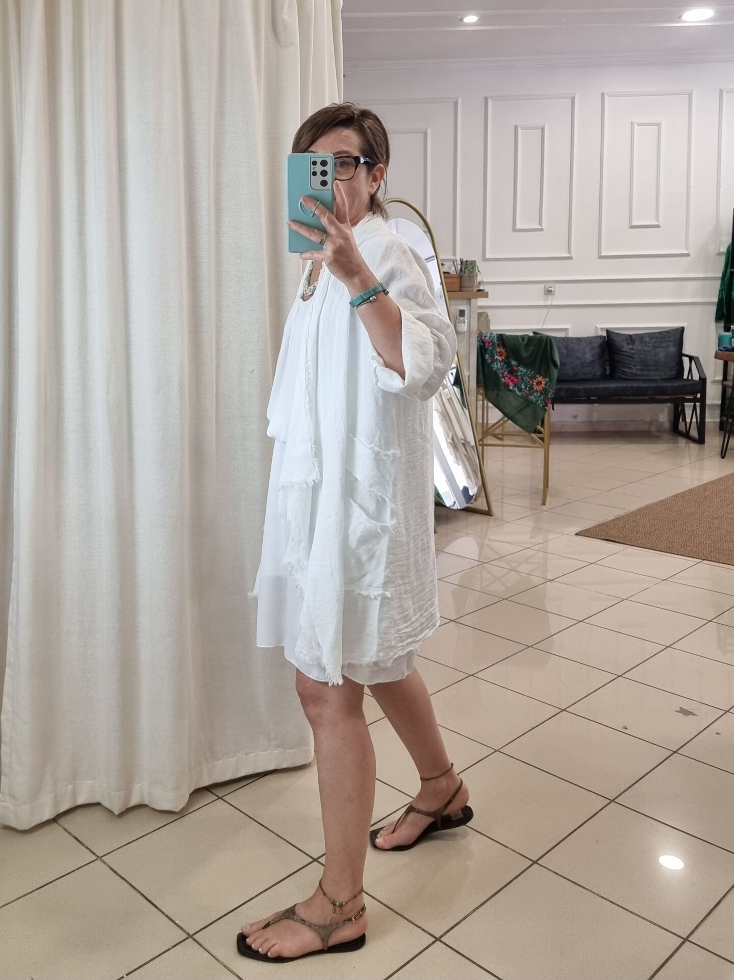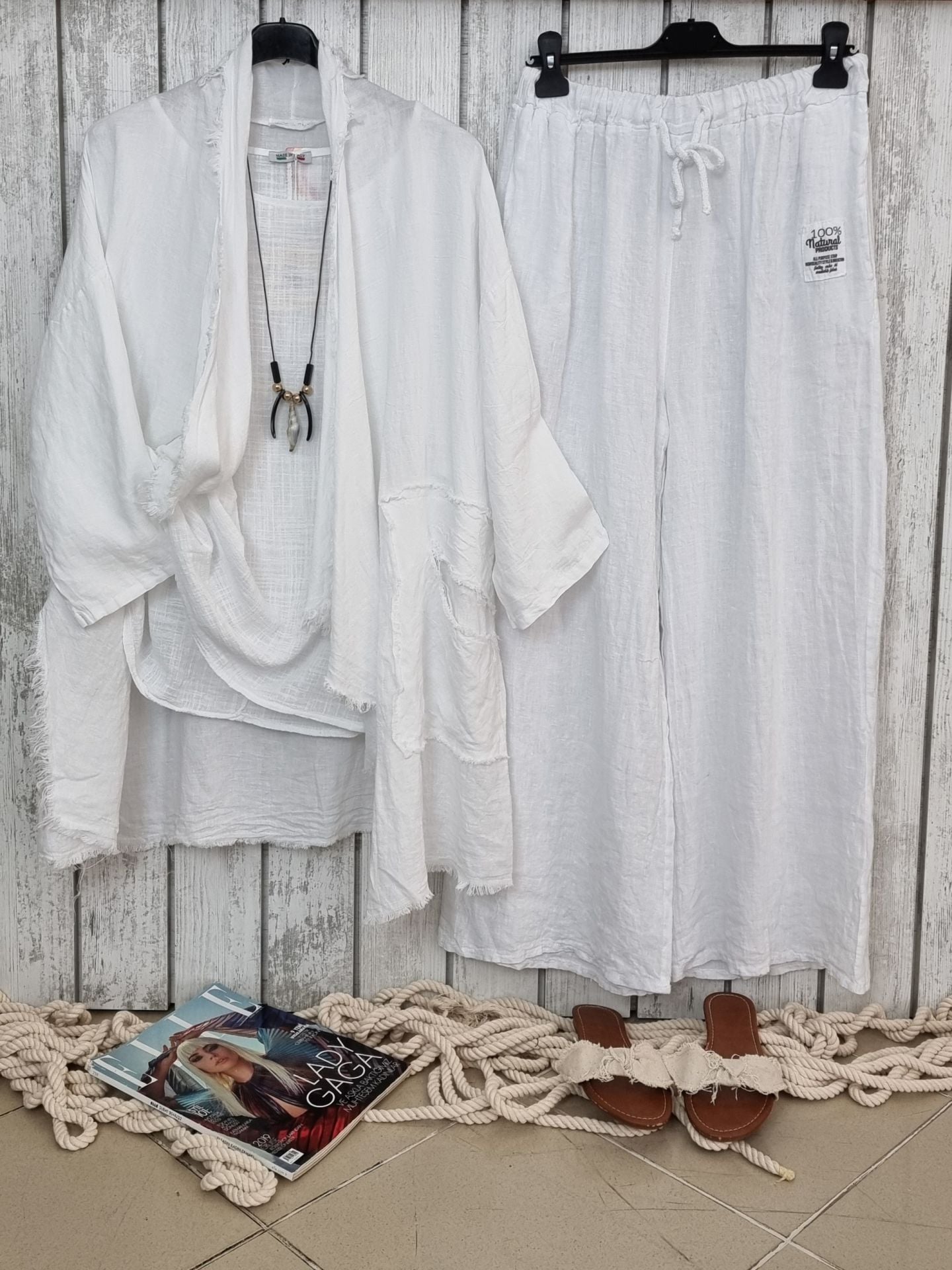 Minimal şıklığın sembolü olan bu beyaz keten ceket, %100 doğal dokusu ve bol kesimiyle stil sahibi kadınlar için tasarlandı. Oversize kalıbı sayesinde tüm bedenlere rahatlıkla uyar, cepli yapısıyla da kullanışlılığı artırır. Hafif ve ferah yapısıyla mevsim geçişlerinde kurtarıcı bir parça olan bu keten ceket, beyaz rengiyle sade ama güçlü bir duruş sergilemek isteyen kadınların favorisi olmaya aday.