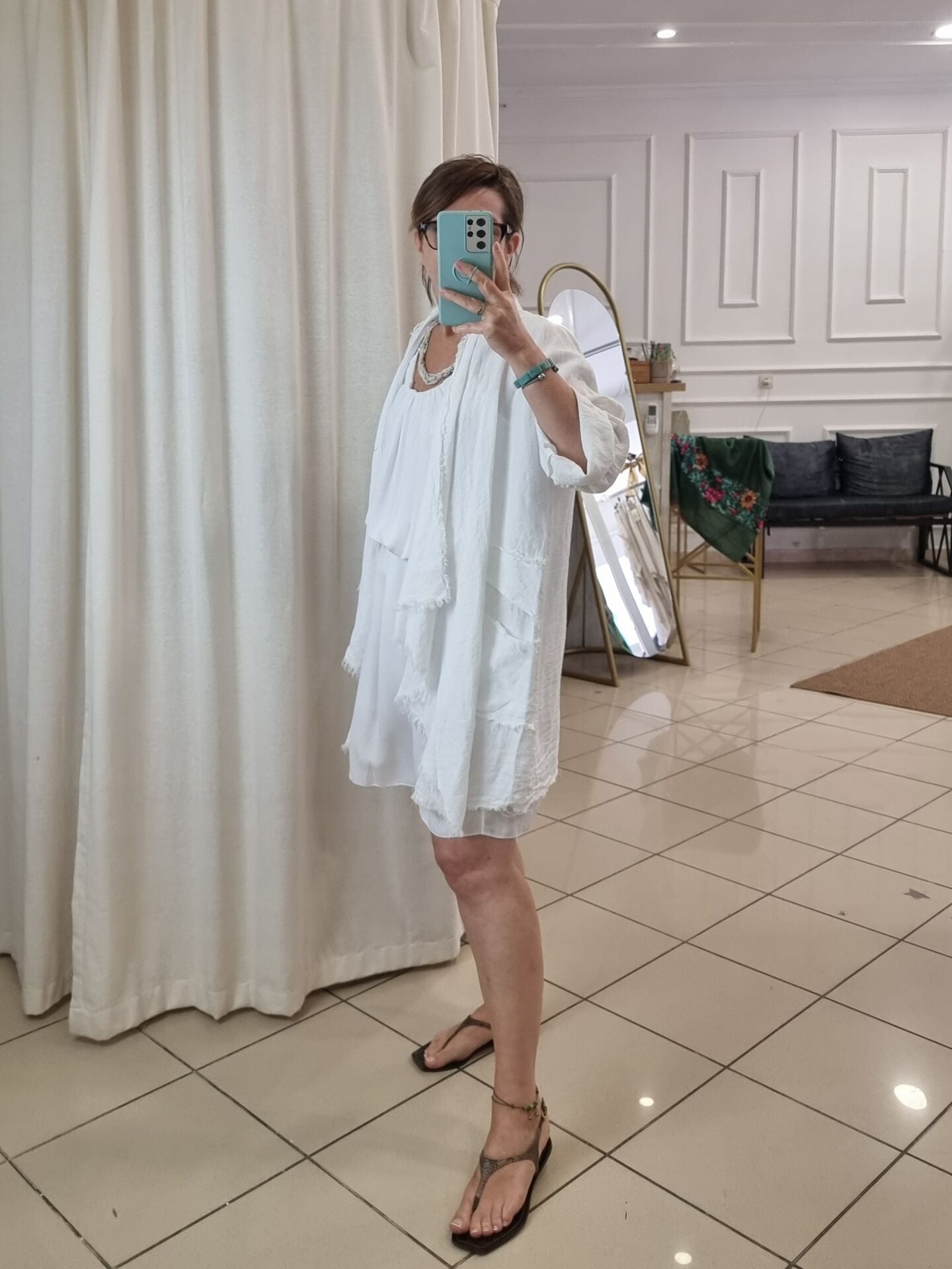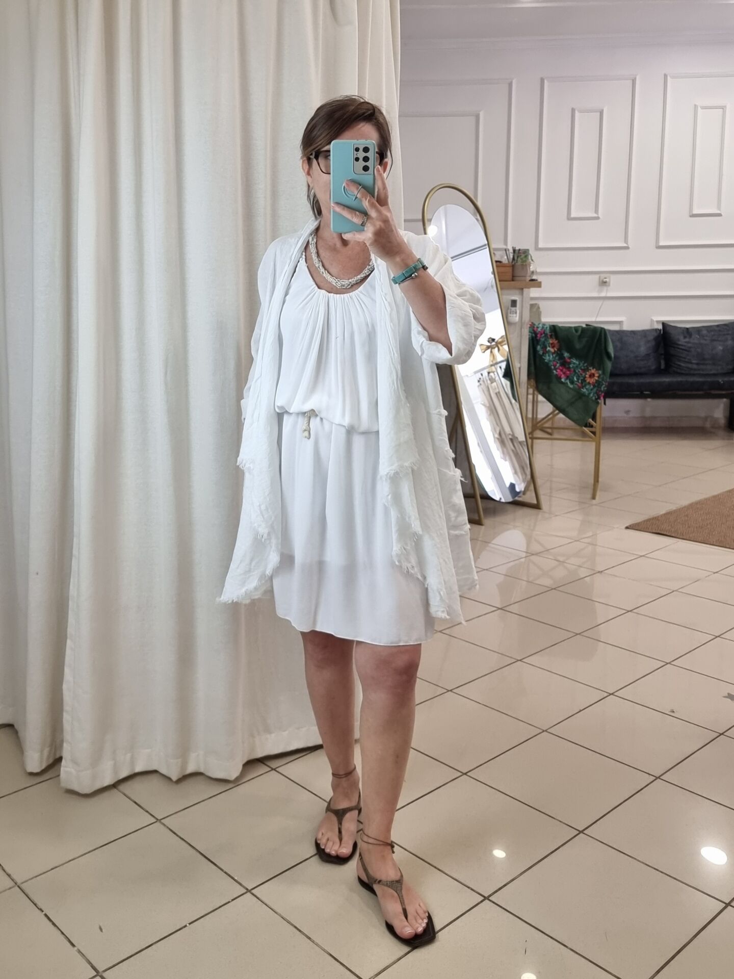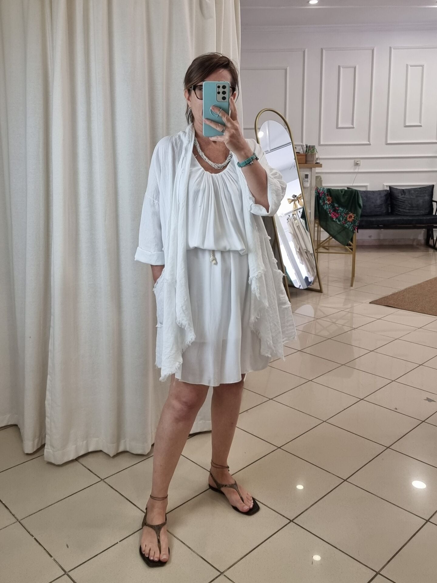 Minimal şıklığın sembolü olan bu beyaz keten ceket, %100 doğal dokusu ve bol kesimiyle stil sahibi kadınlar için tasarlandı. Oversize kalıbı sayesinde tüm bedenlere rahatlıkla uyar, cepli yapısıyla da kullanışlılığı artırır. Hafif ve ferah yapısıyla mevsim geçişlerinde kurtarıcı bir parça olan bu keten ceket, beyaz rengiyle sade ama güçlü bir duruş sergilemek isteyen kadınların favorisi olmaya aday.