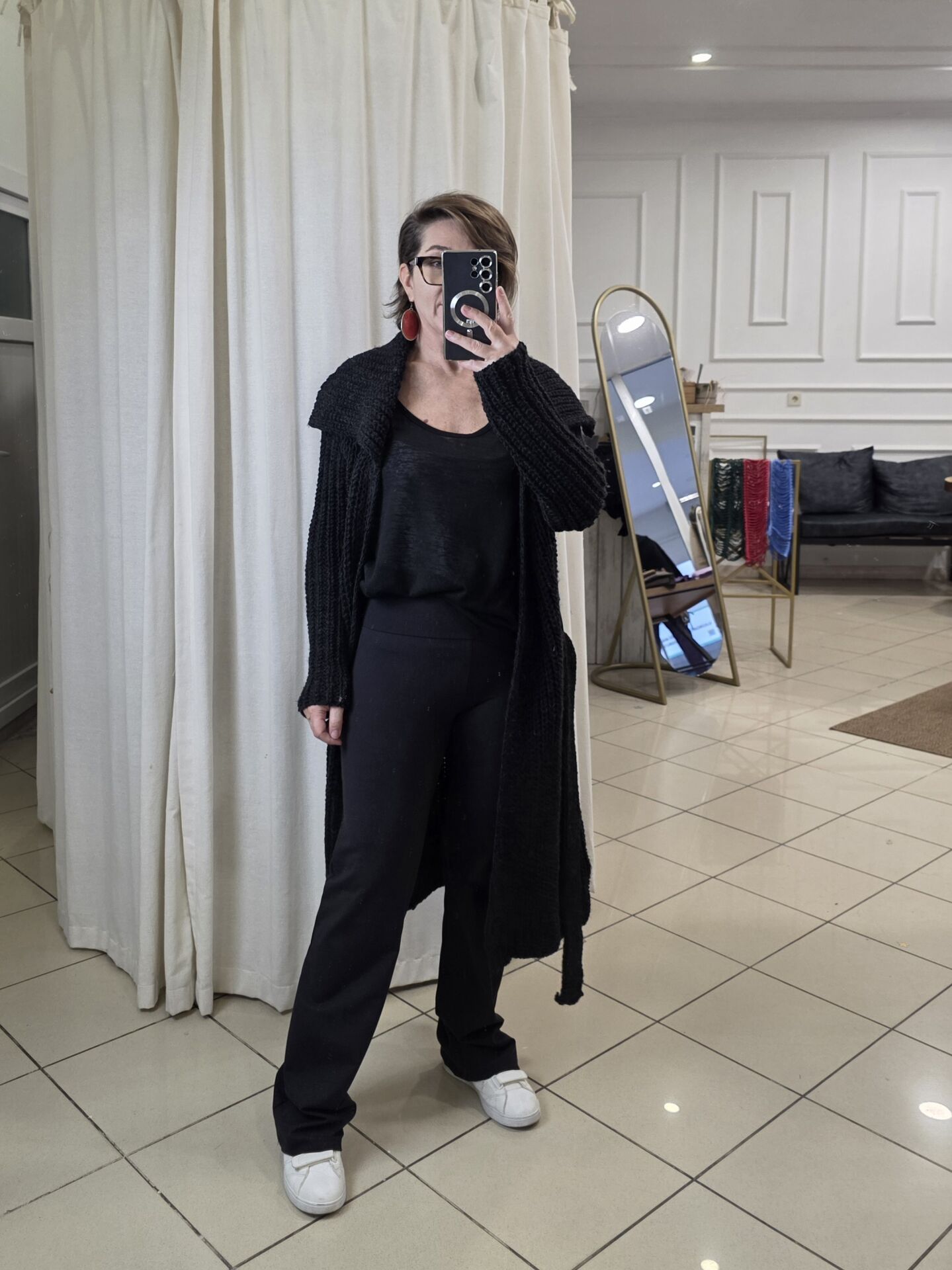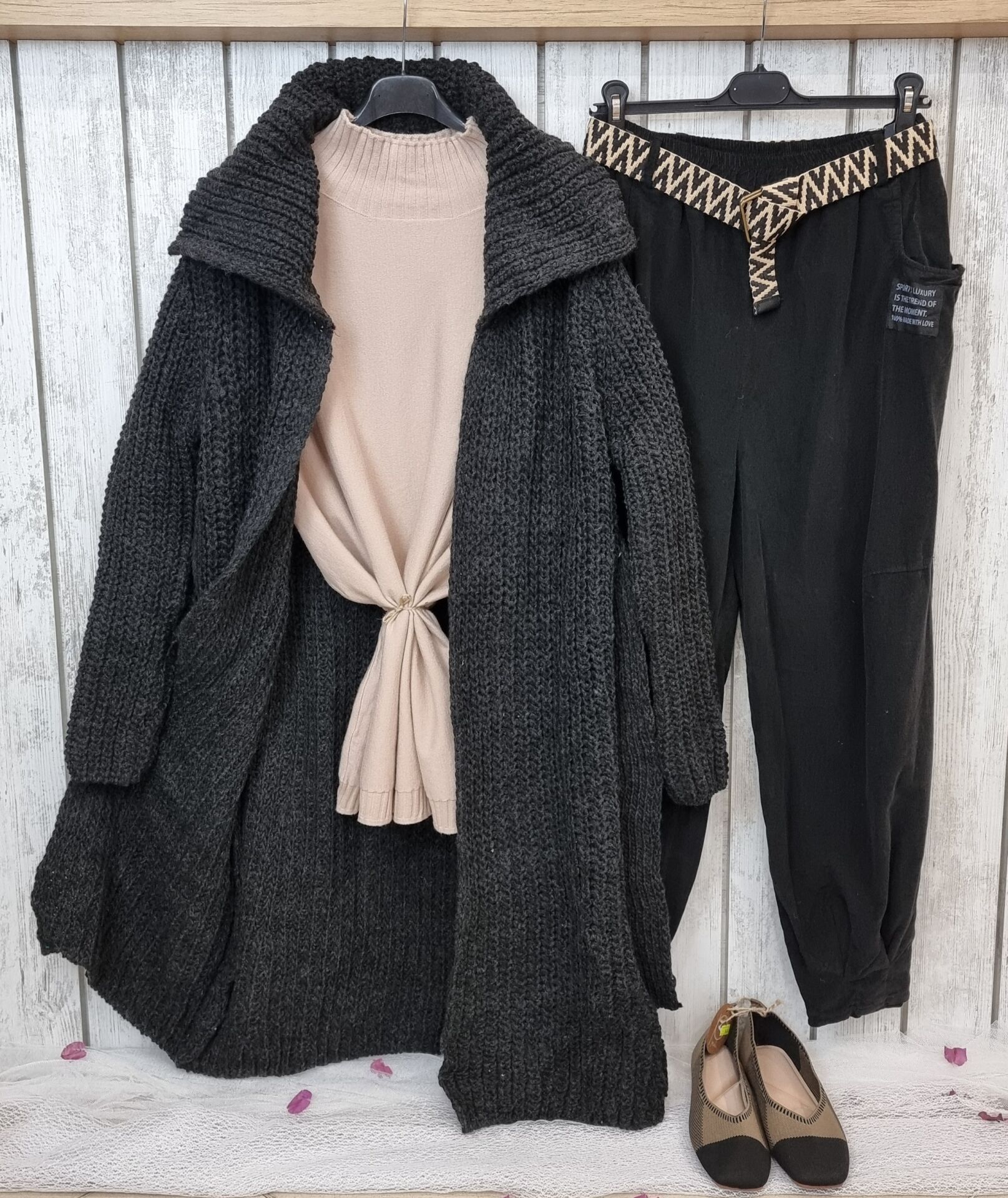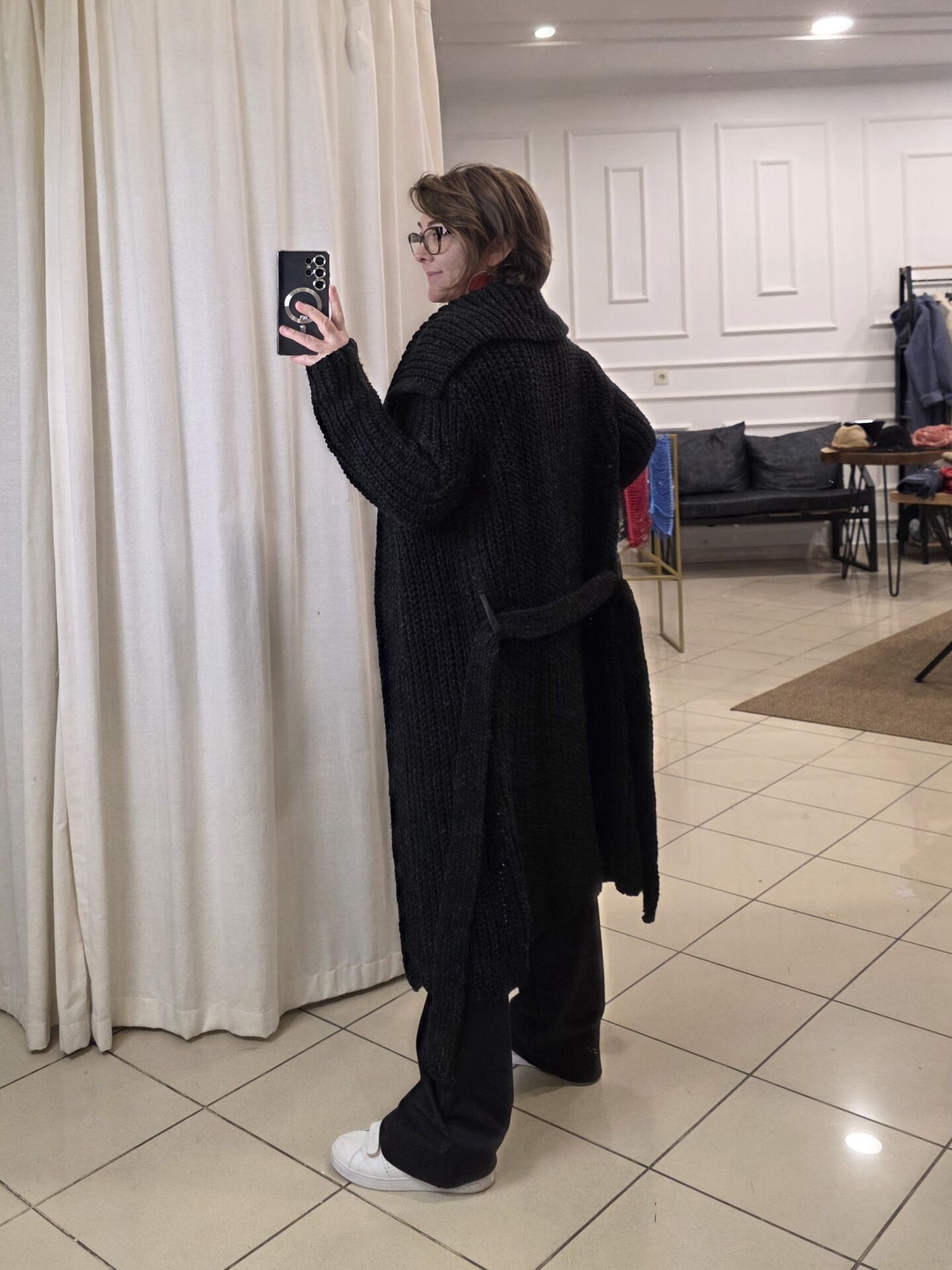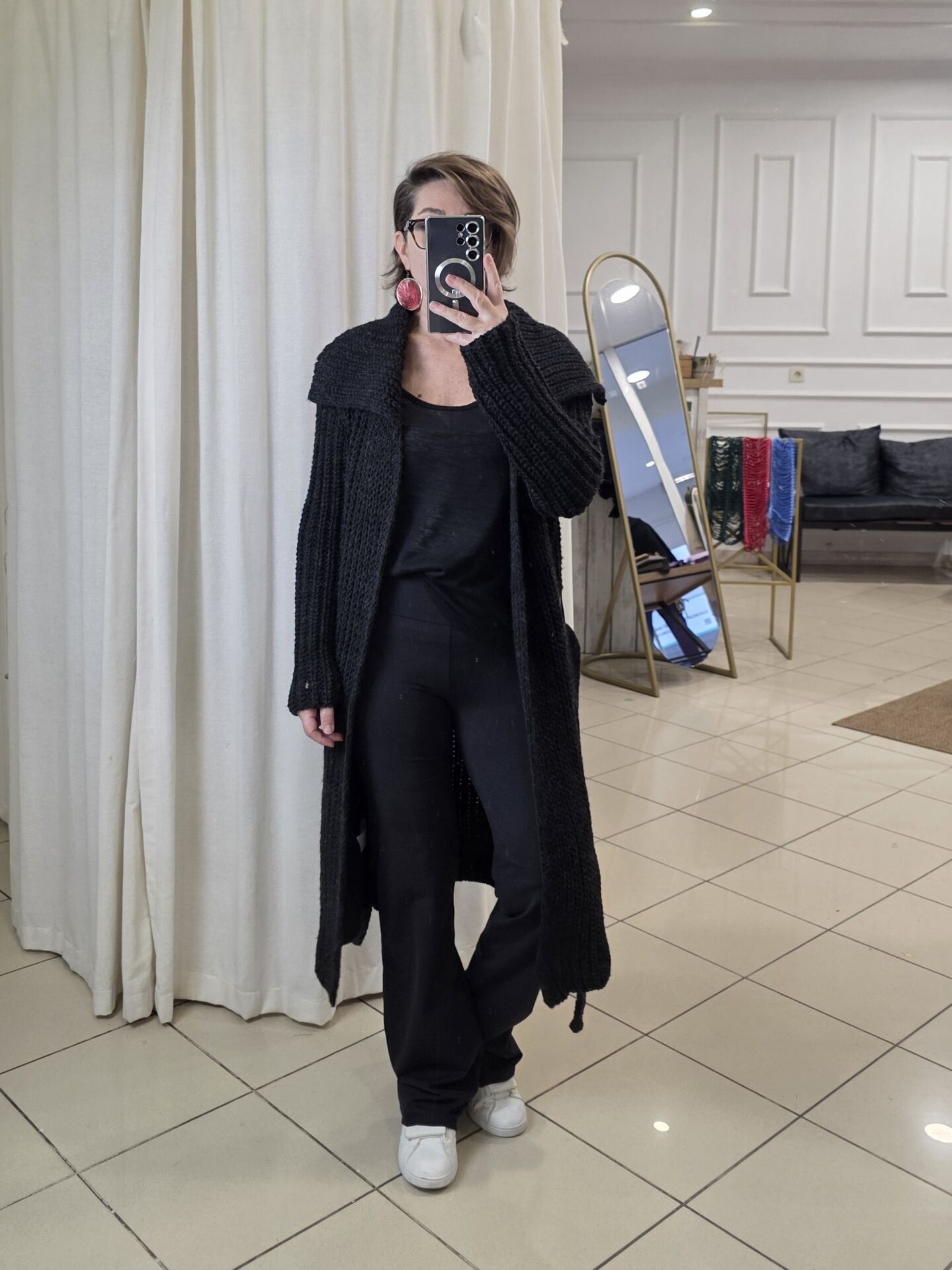 Kadınlar için tasarlanan Selanik örme salaş uzun hırka siyah, modern ve rahat bir şıklık sunuyor. Kemerli tasarımı sayesinde tarzınızı vurgularken, oversize kesimiyle konfor sağlar. Yumuşak Selanik örgüsü ve %10 yün içeriği, soğuk günlerde sıcaklık ve stil bir arada sunar. Standart beden olarak tasarlanan bu hırka, 48/50 bedene kadar uyum sağlar. Günlük kombinlerinizi tamamlarken, siyahın zarafetini de taşıyan bu uzun hırka kadınların gardıroplarında vazgeçilmez bir yer edinecek.