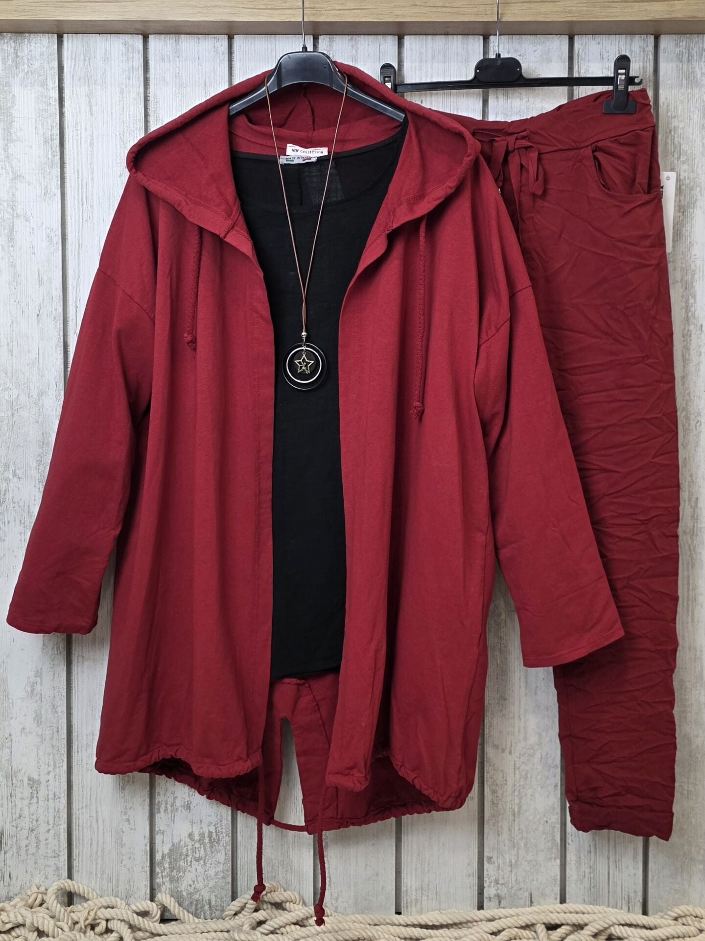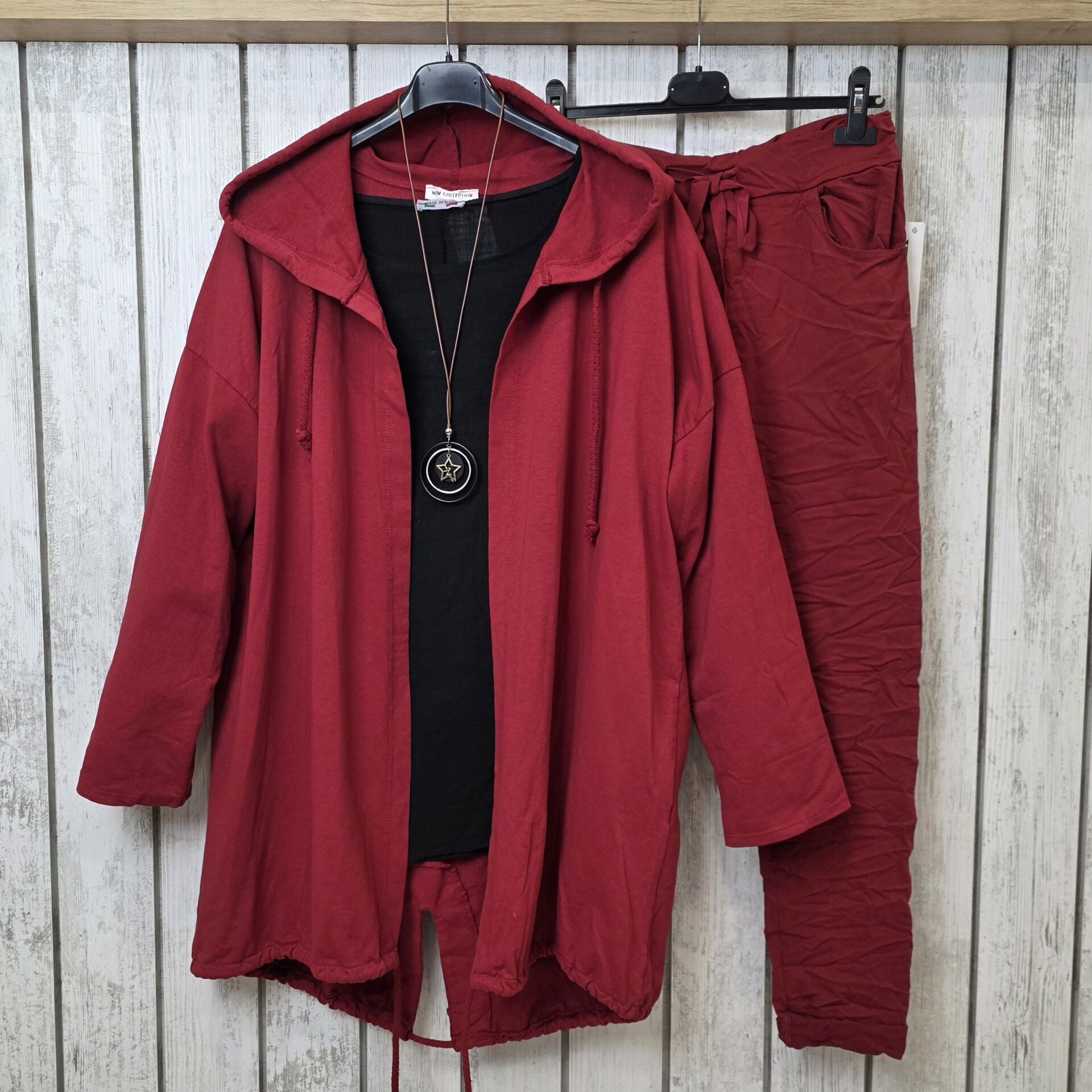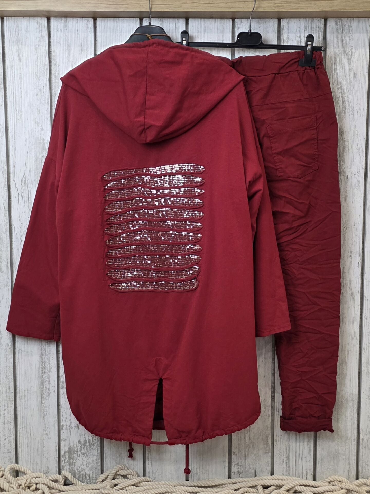 Sırtı payetli İtalyan sweat koyu kırmızı ceket.