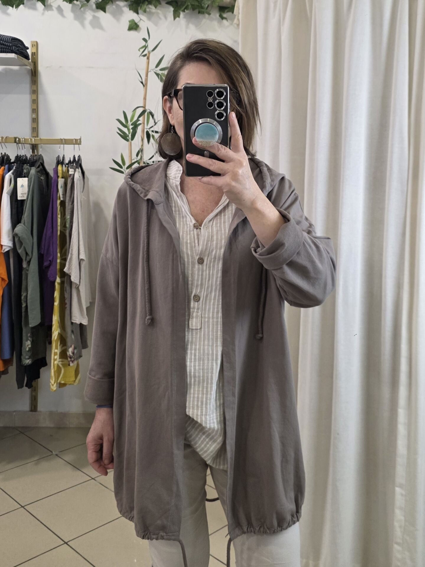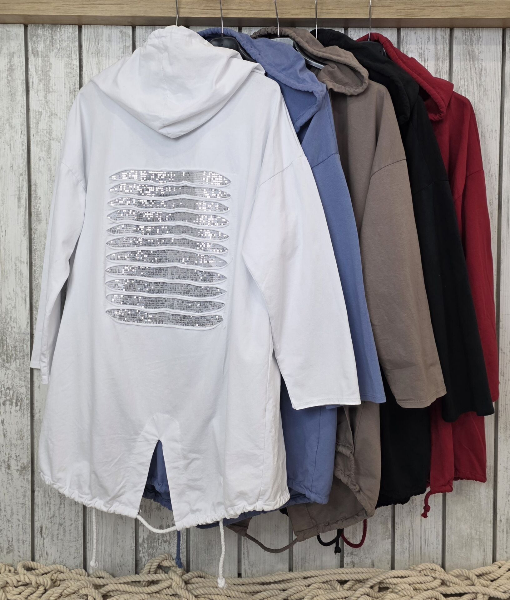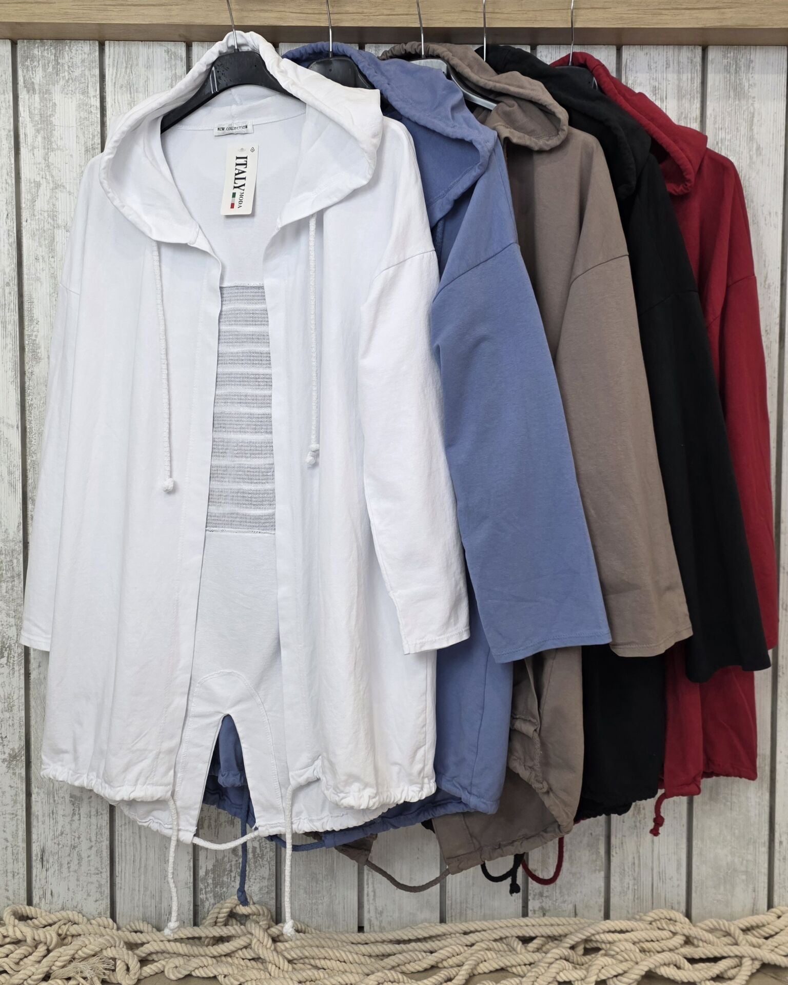 Uzun kol, kapüşonlu uzun ceket.