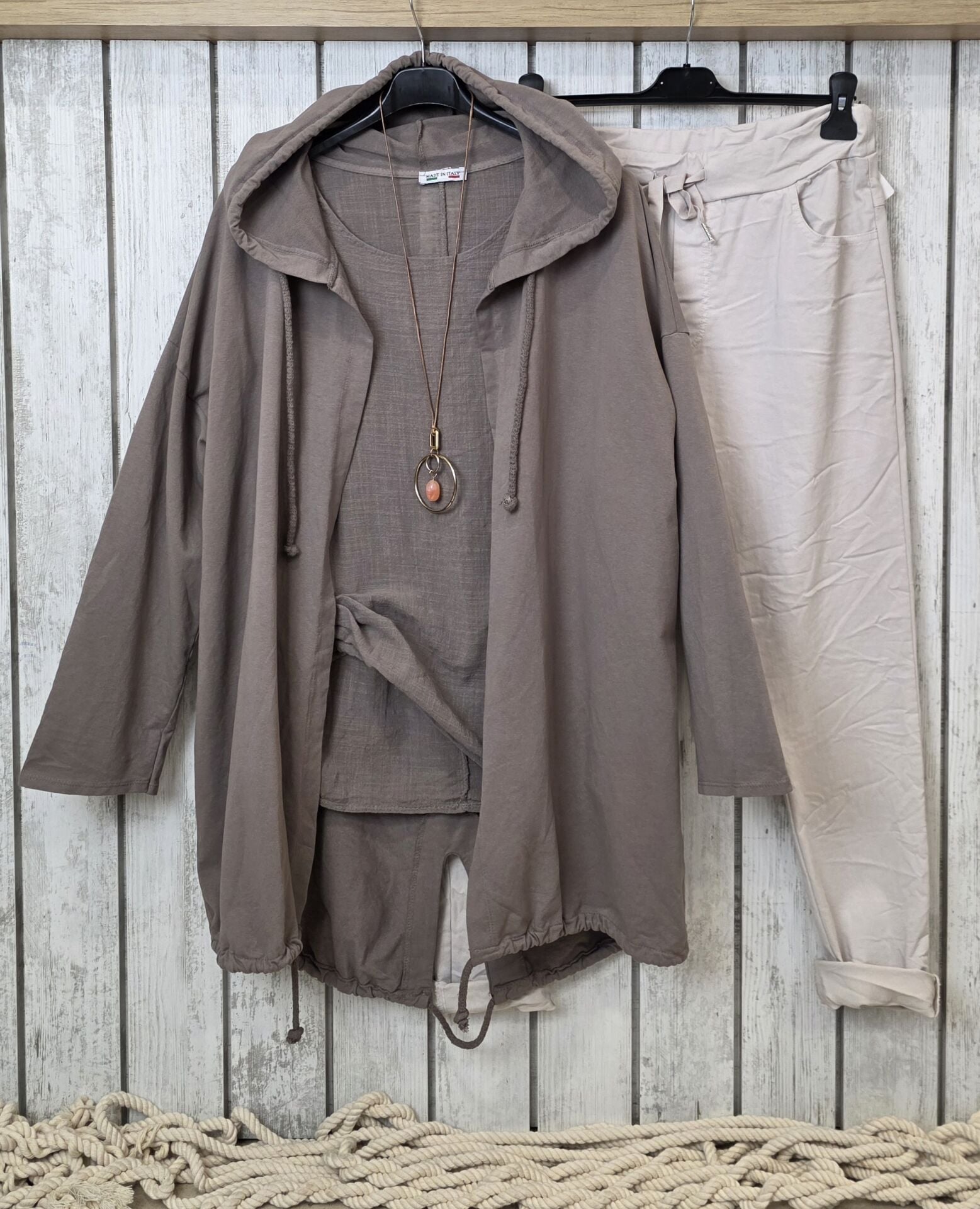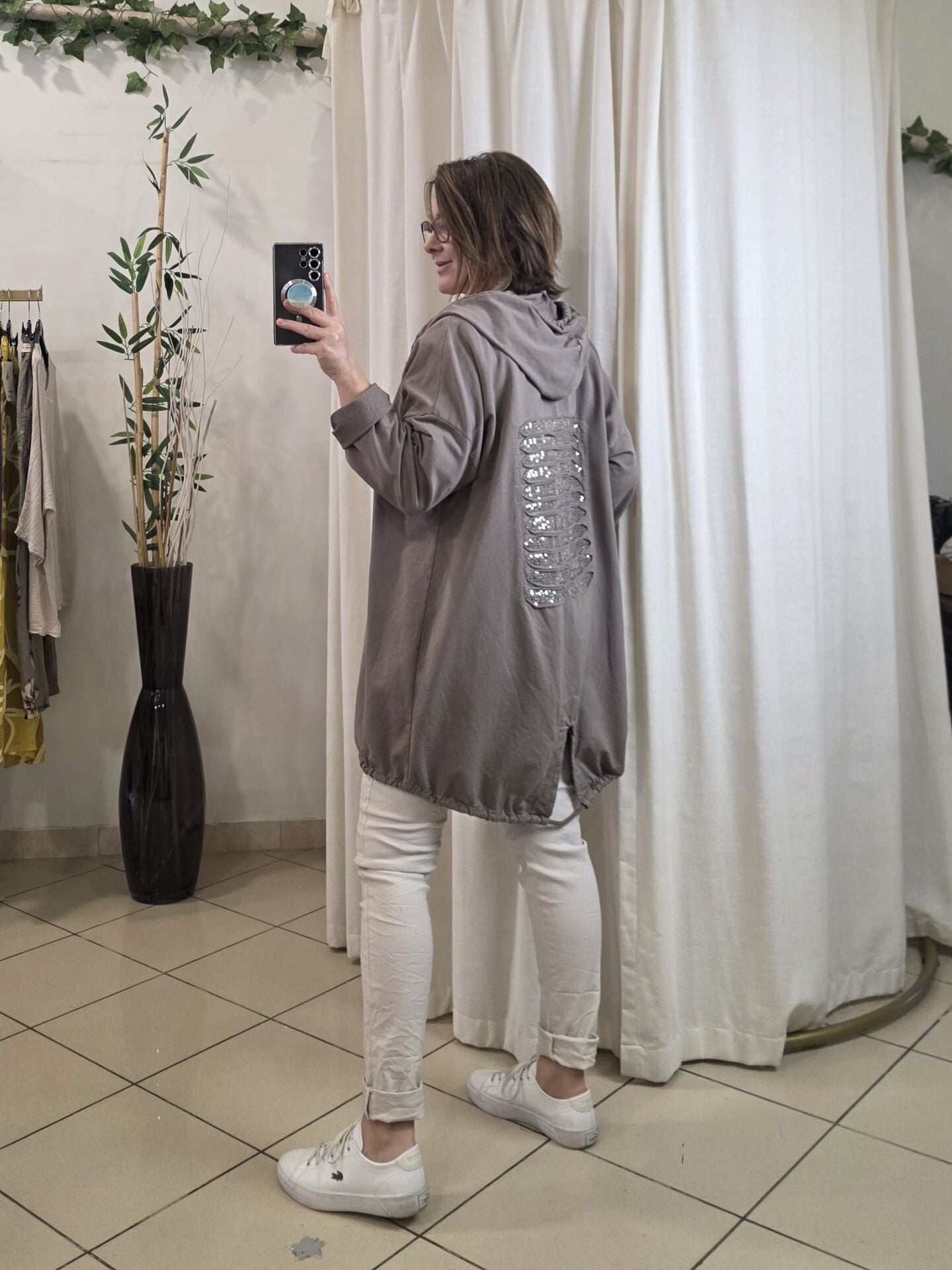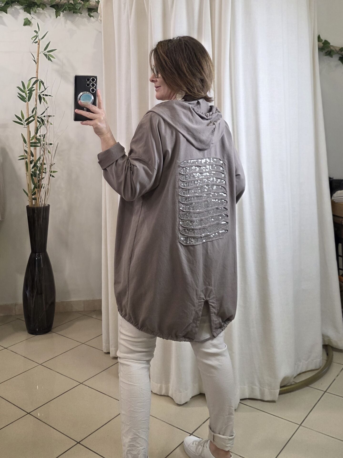 Sırtı payetli İtalyan sweat vizon bej ceket.