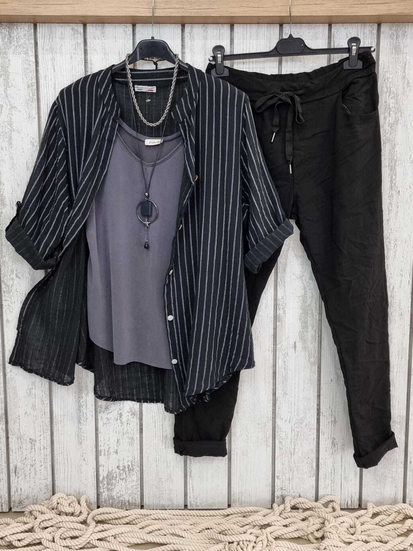 Bu siyah likralı İtalyan pantolon, esnek yapısıyla gün boyu hareket özgürlüğü sunar. Lastikli beli ve bağcık detayı, kişiye özel konfor sağlar. Mevsimlik dokusu sayesinde serin bahar sabahlarından akşam yürüyüşlerine kadar eşlik eder. Modern kadınlar için hem iş hem günlük kombinlerde joker parça niteliğinde olan bu pantolon, siyah rengin asaletini şıklıkla birleştirir.