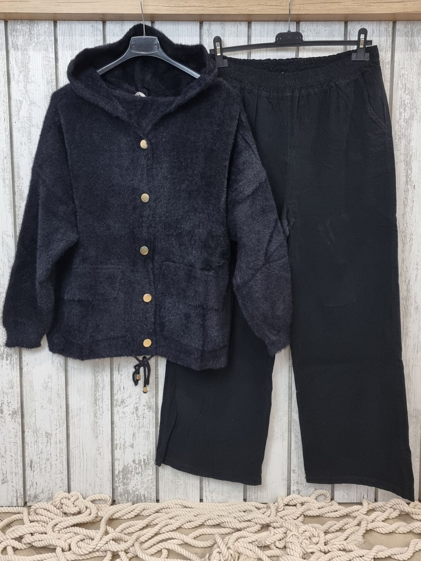 Siyah Yumuşak Tüylü Kapüşonlu Hırka Ceket