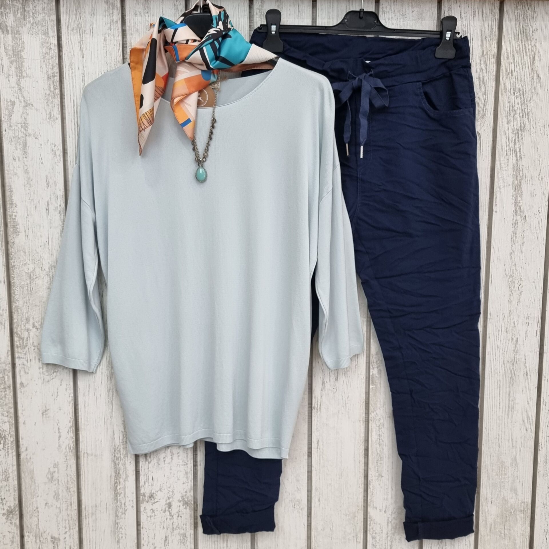 Soğuk İp İnce Triko Bluz Buz Mavi