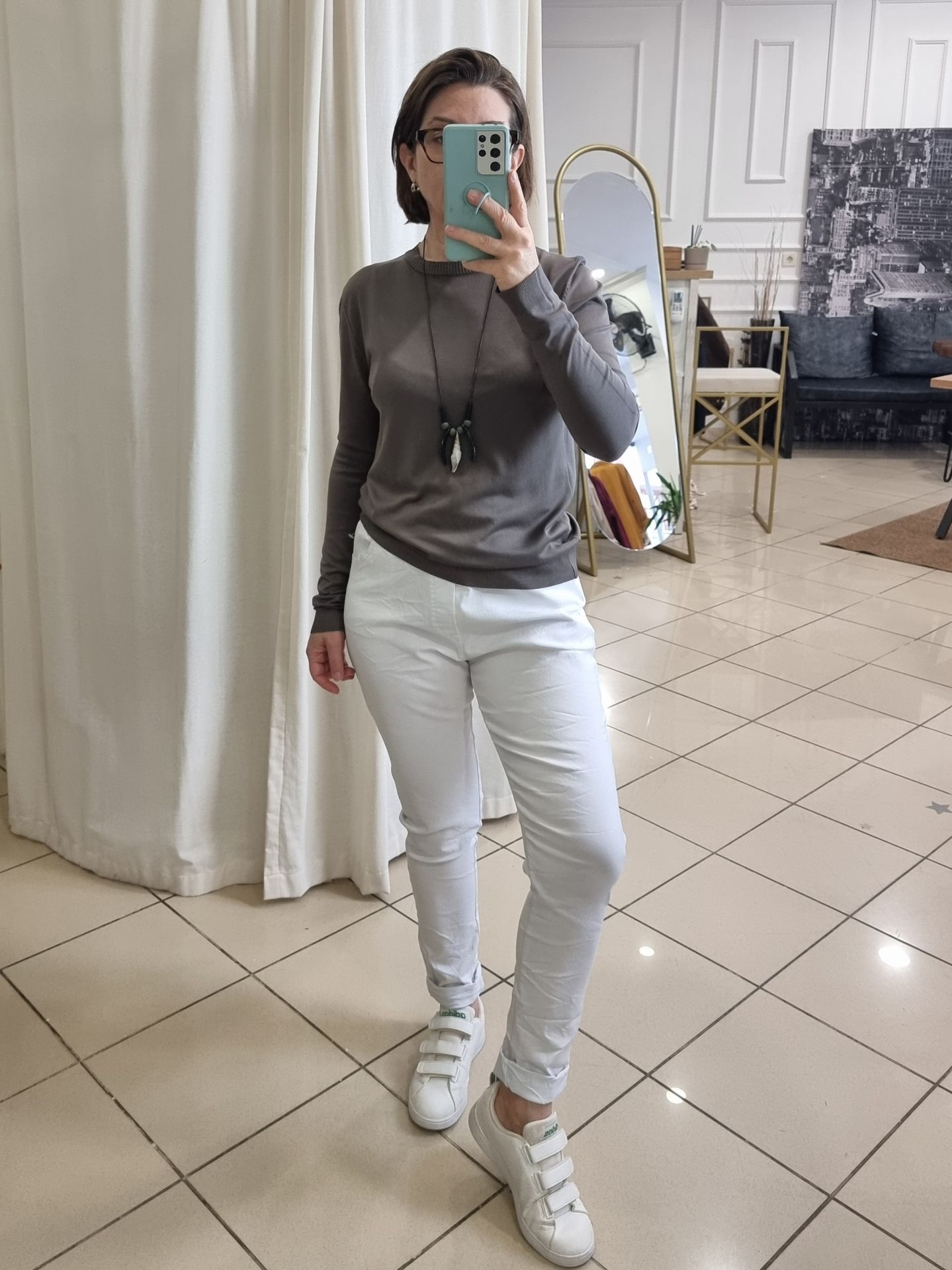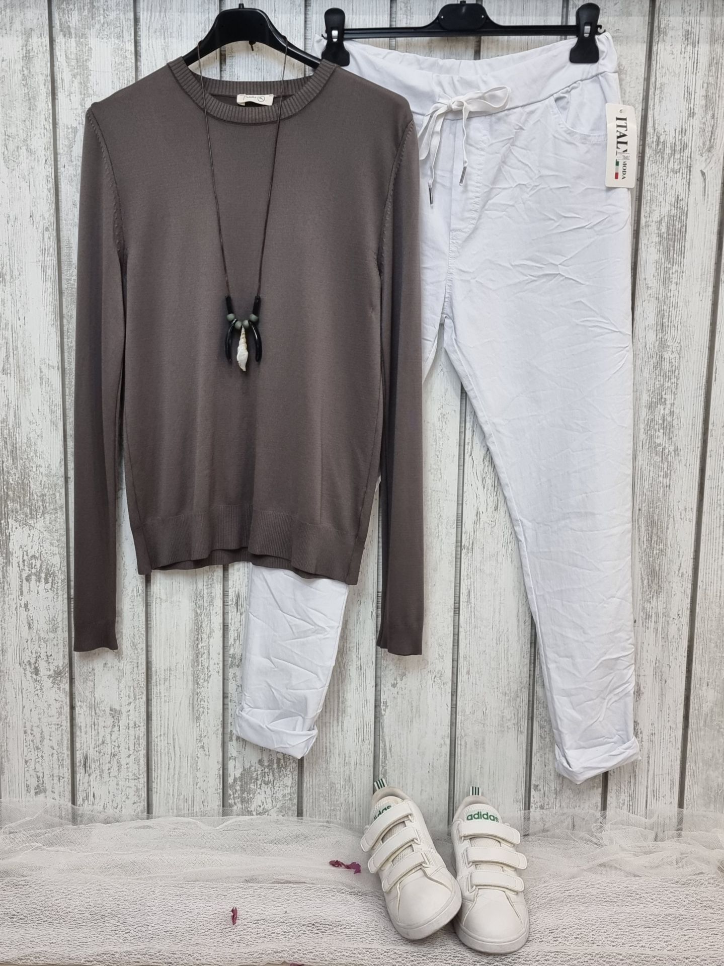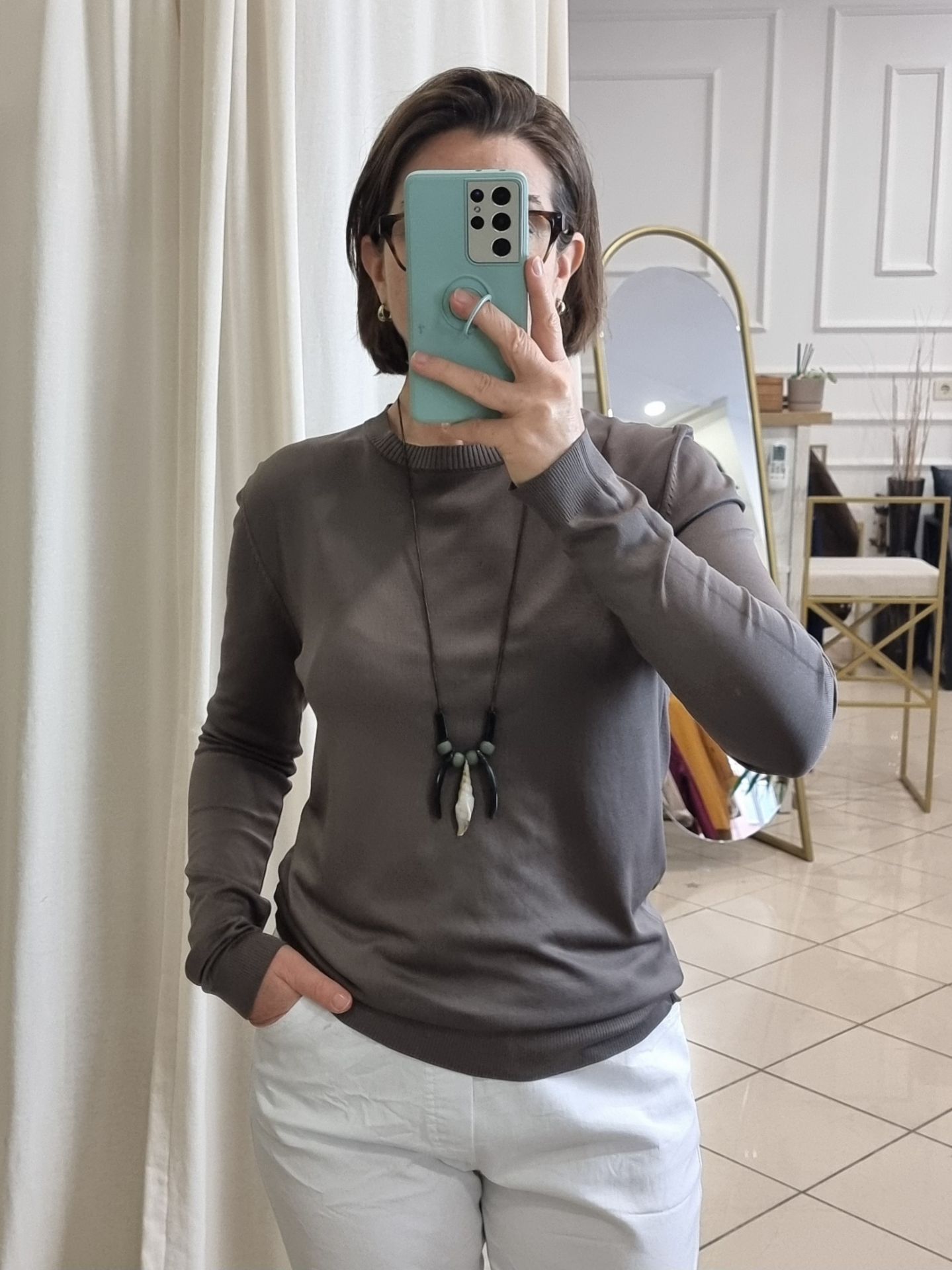 Soğuk İp Yumuşak Basic Triko Bluz Vizon