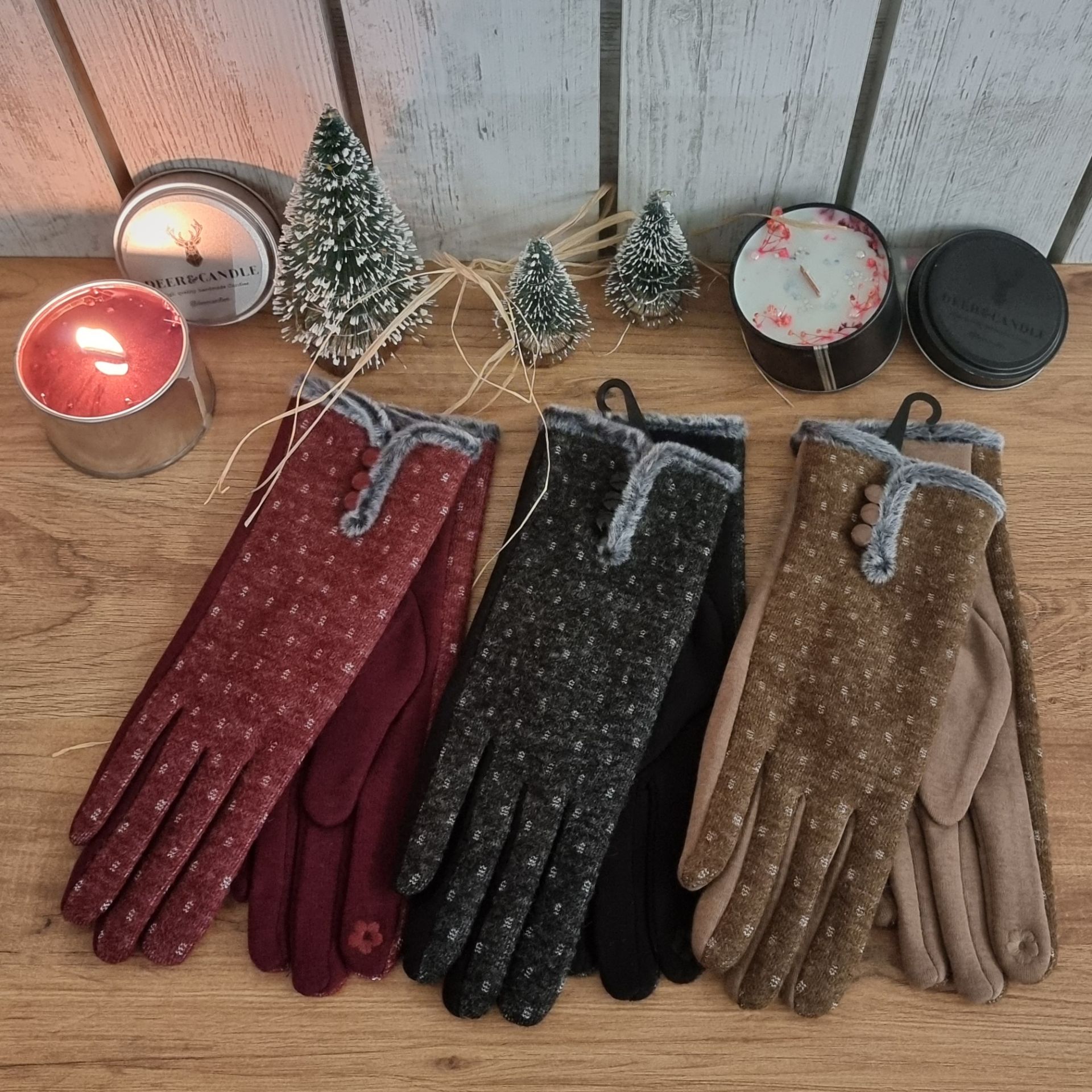 Triko dokuma kürklü eldiven, kışın sıcak tutan ve şık bir aksesuar arayan kadınlar için mükemmel bir tercih. İçi kürklü yapısıyla ellerinizi soğuktan korurken, düğme süslemeleriyle zarif bir görünüm sunar. Bu eldiven, işaret parmağı ve baş parmaktaki iletken özelliği sayesinde telefon kullanımı sırasında da rahatlık sağlar. Bu triko eldiven 3 farklı renkte sunulmaktadır ve her kombin için ideal bir tamamlayıcıdır. Kadınların kış mevsiminde hem şıklığı hem de sıcaklığı bir arada bulabileceği bu kürklü eldivenler, gardırobunuzun vazgeçilmez parçası olacak.