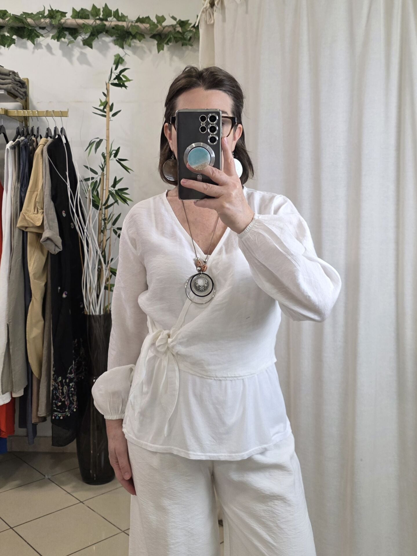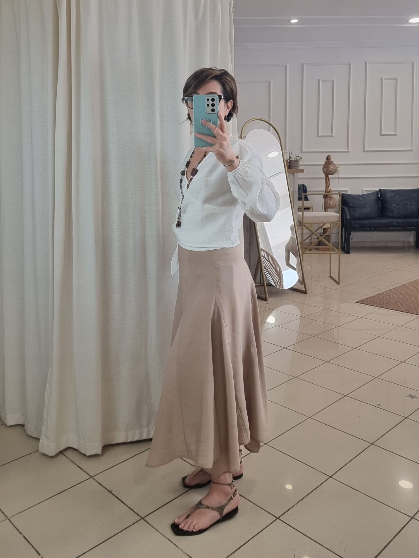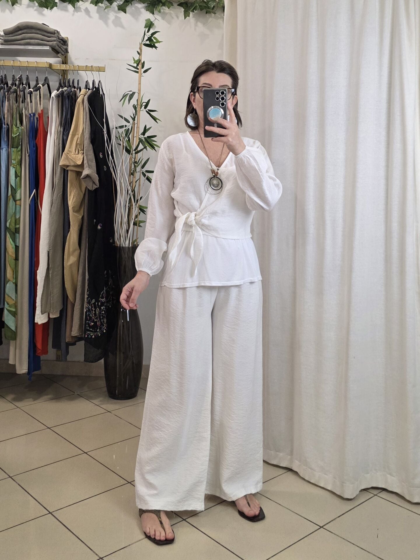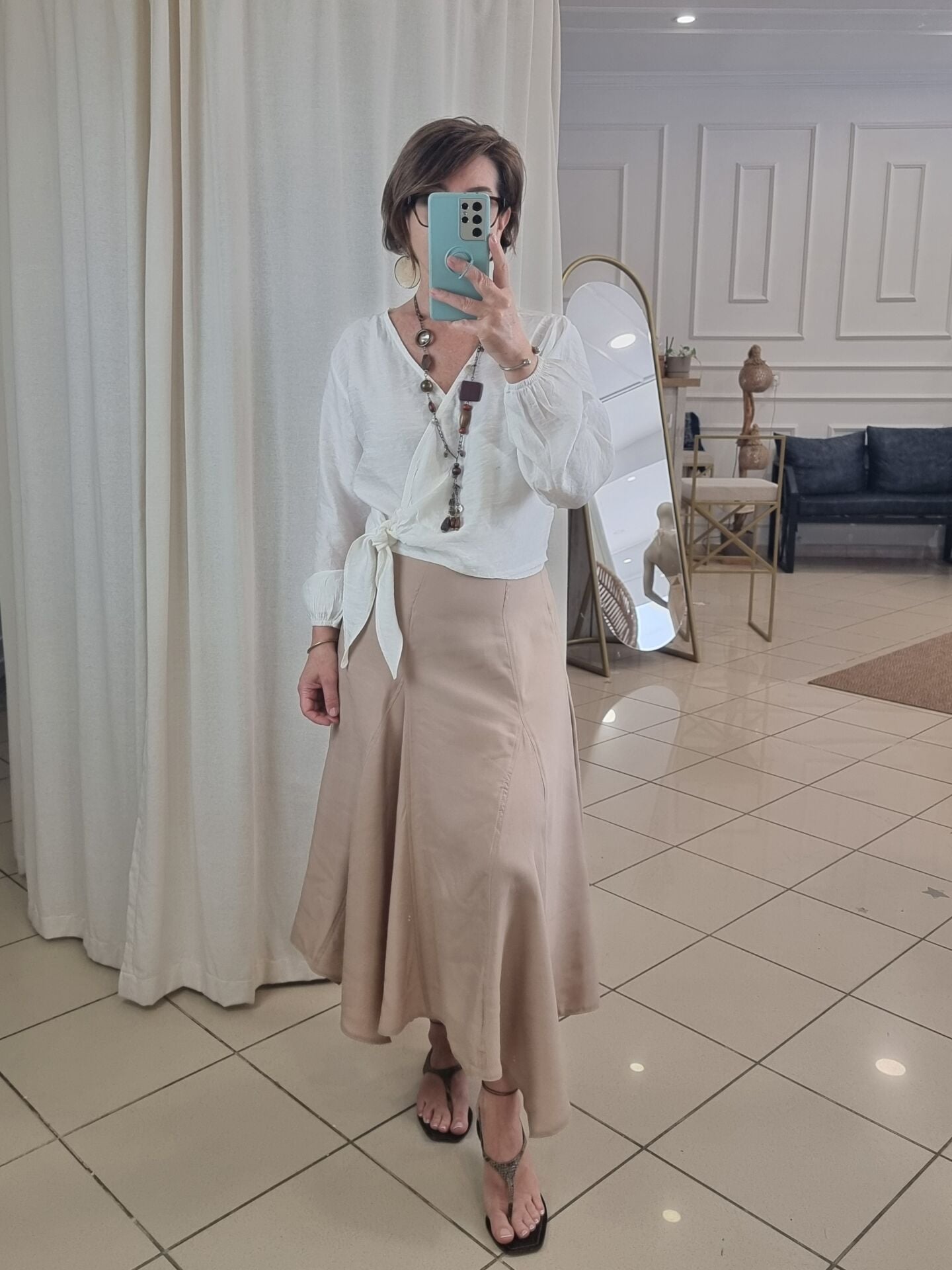 Anvelop bağlamalı modal kumaş ekru gömlek.
