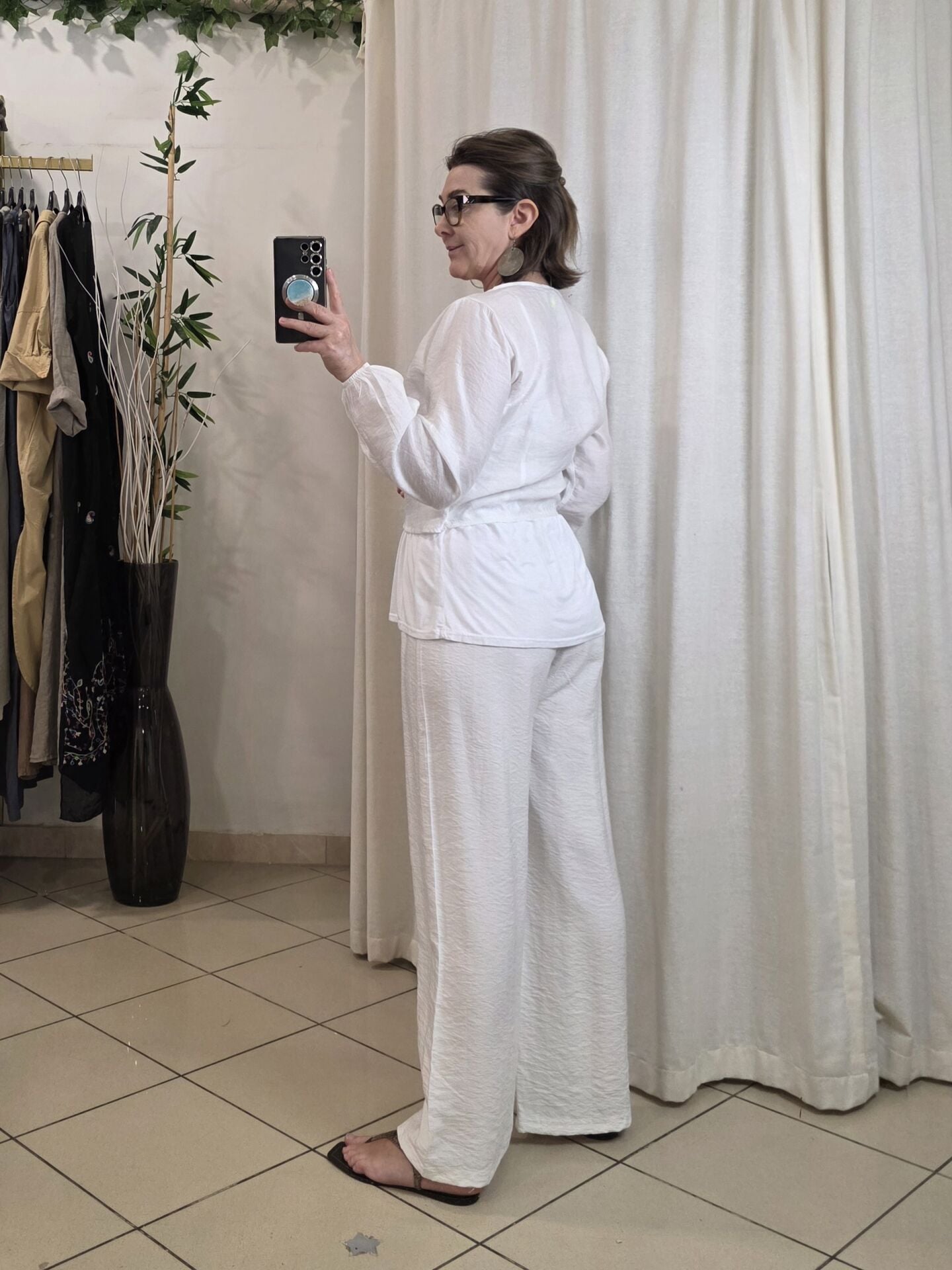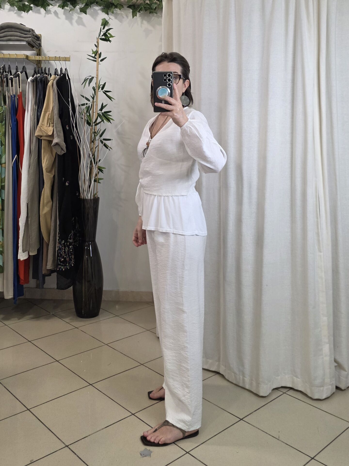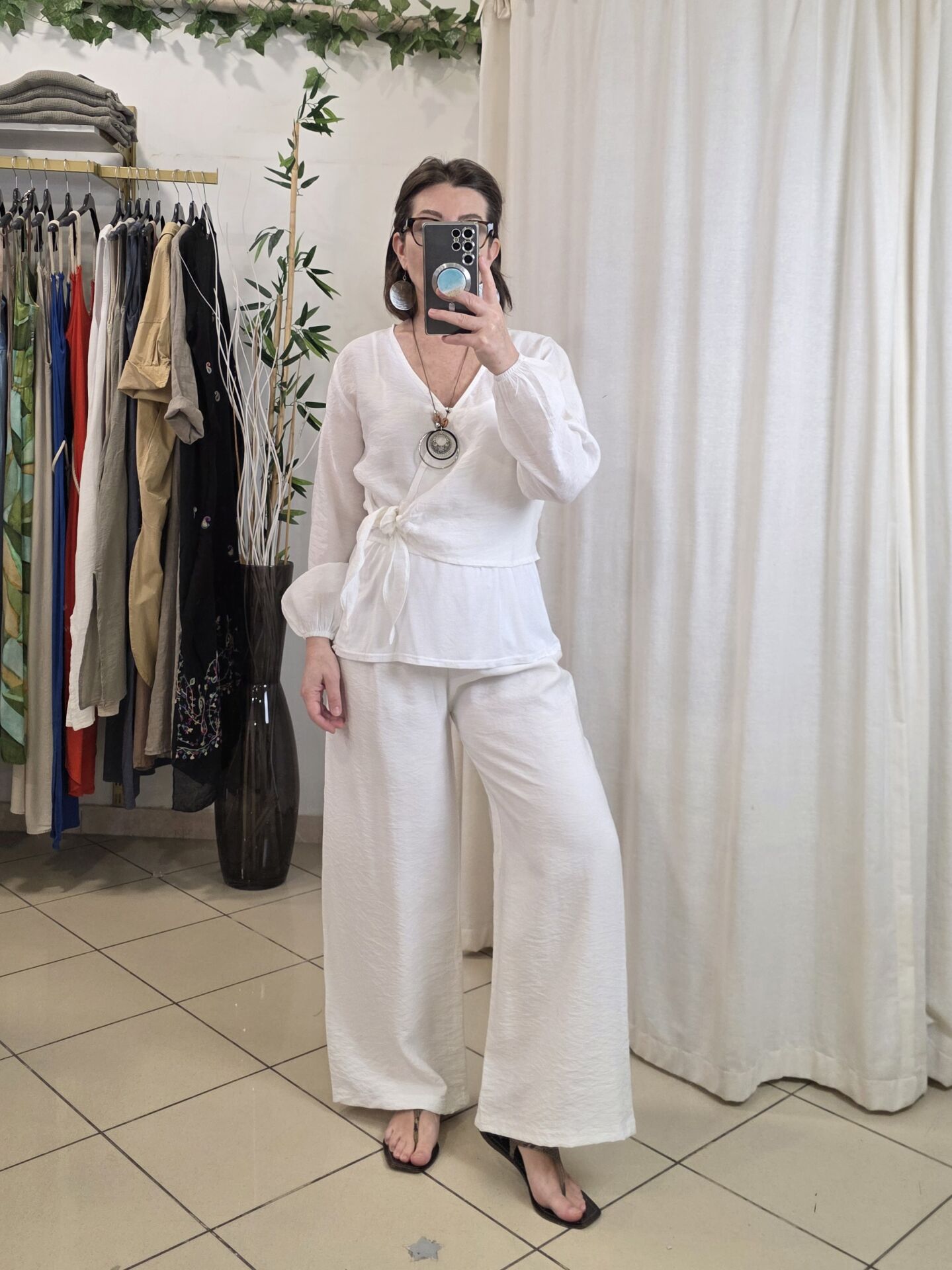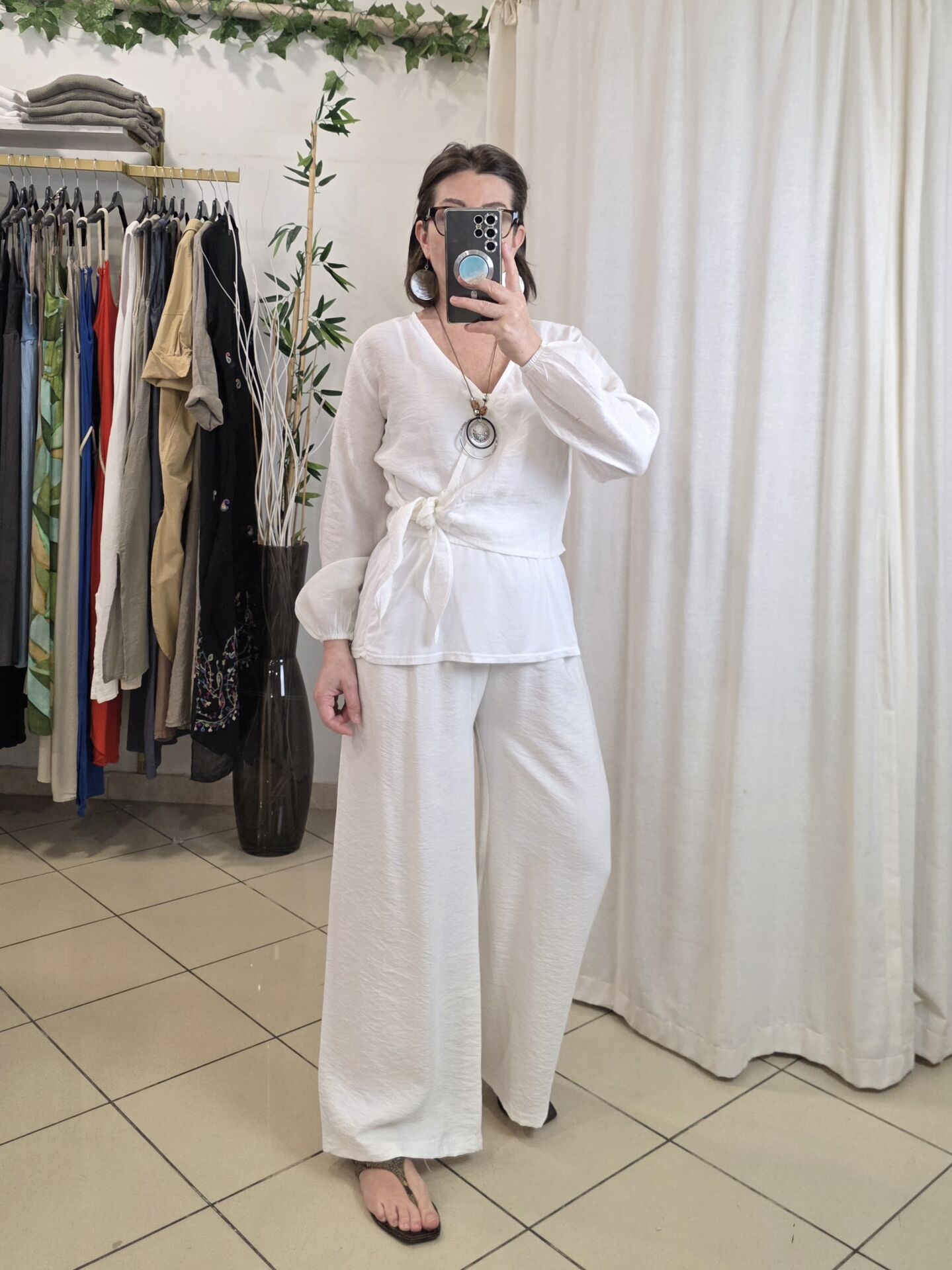 Anvelop bağlamalı modal kumaş ekru gömlek.