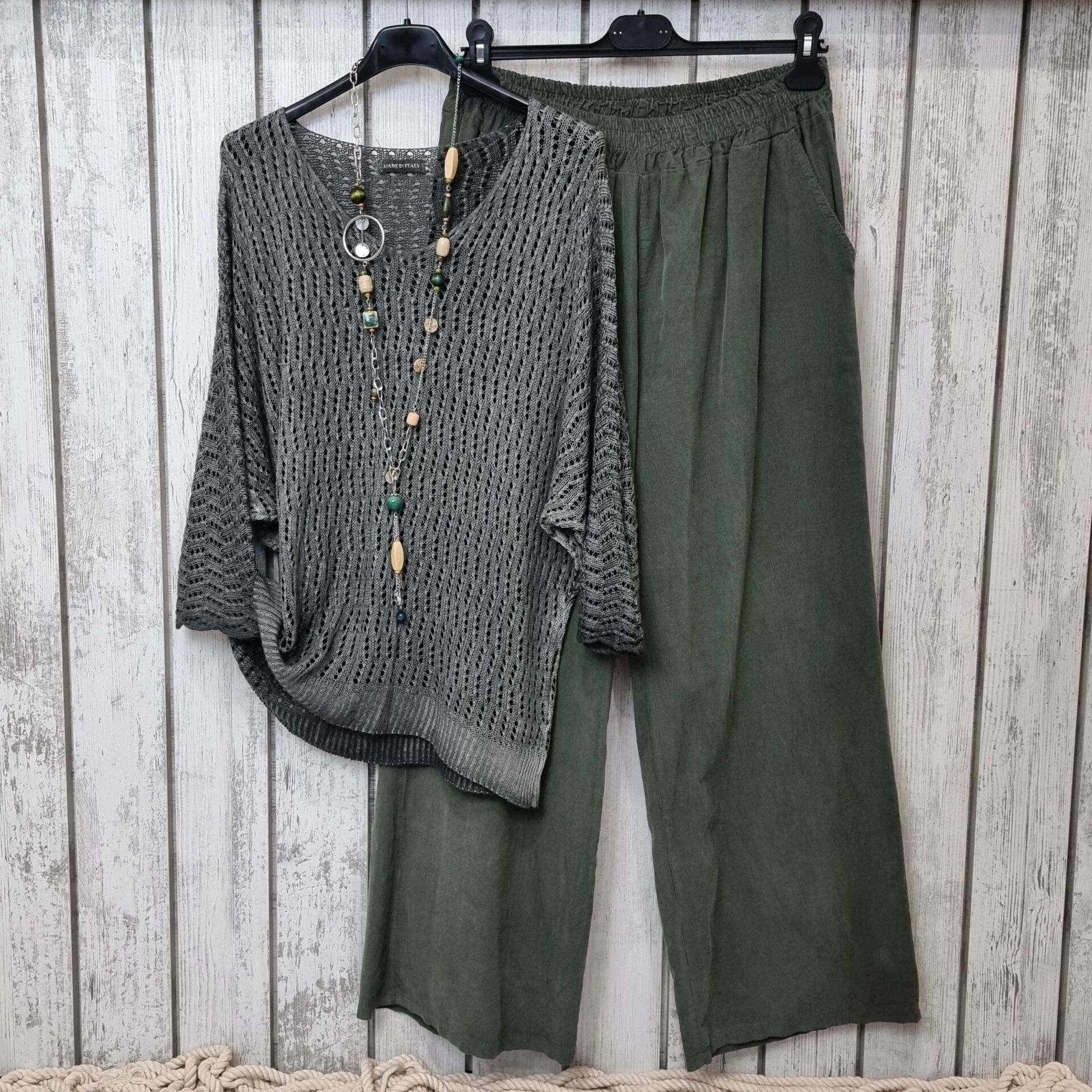 Ajurlu Modal İtalyan Triko Kazak Haki