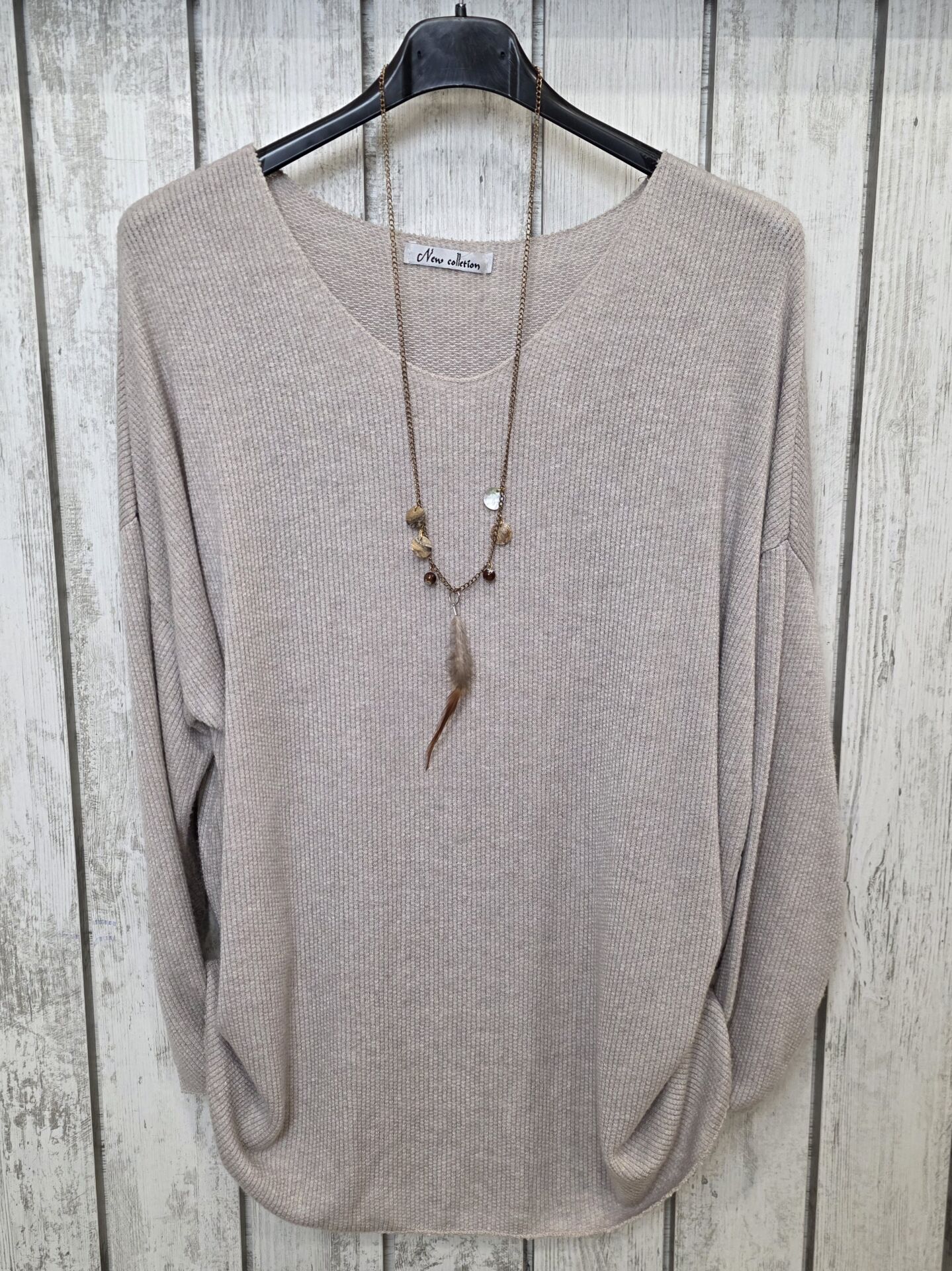 Petek Dokuma İtalyan Triko Taş Bej Kazak