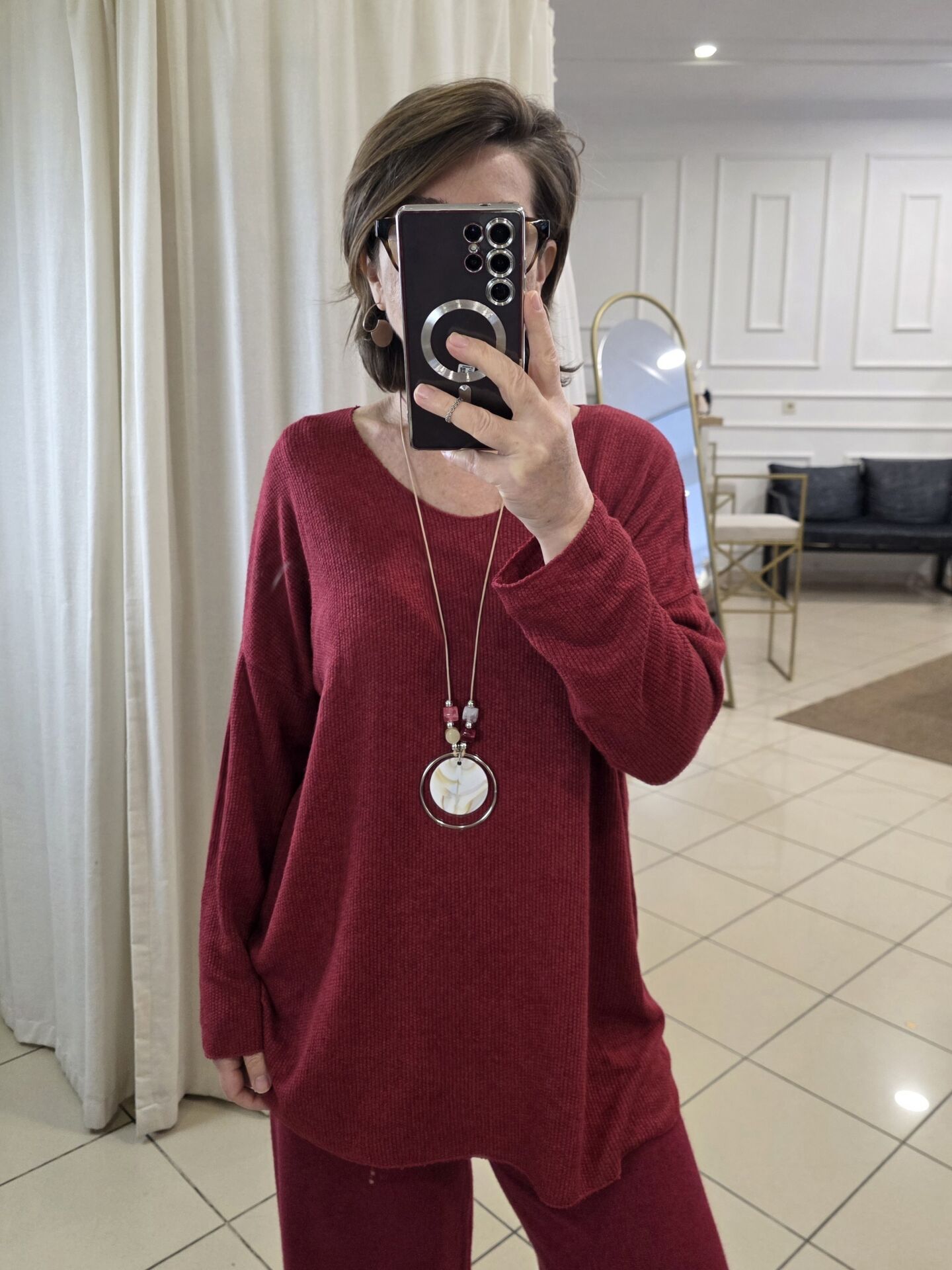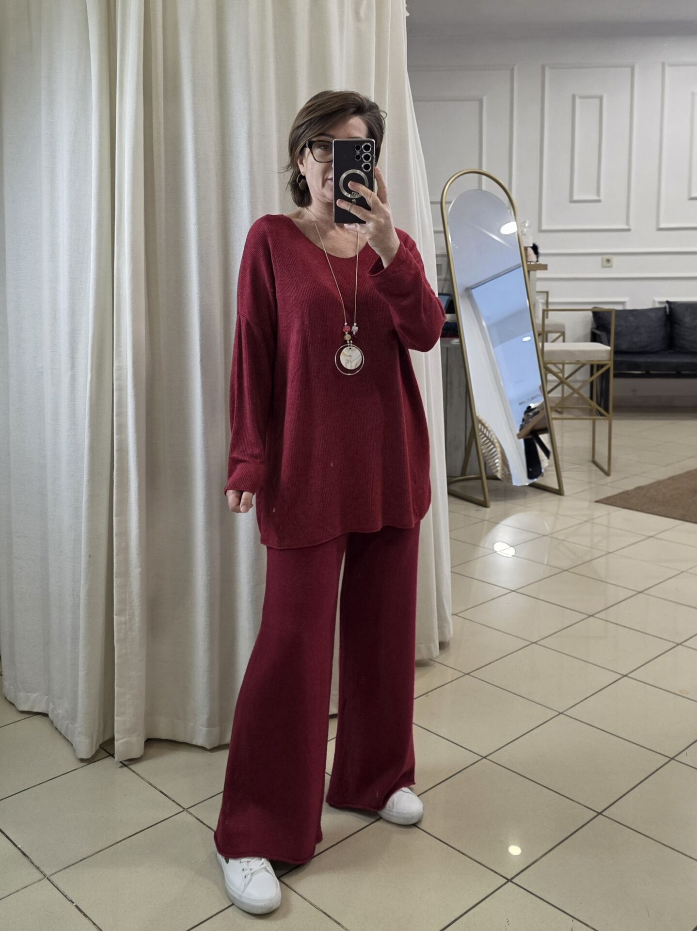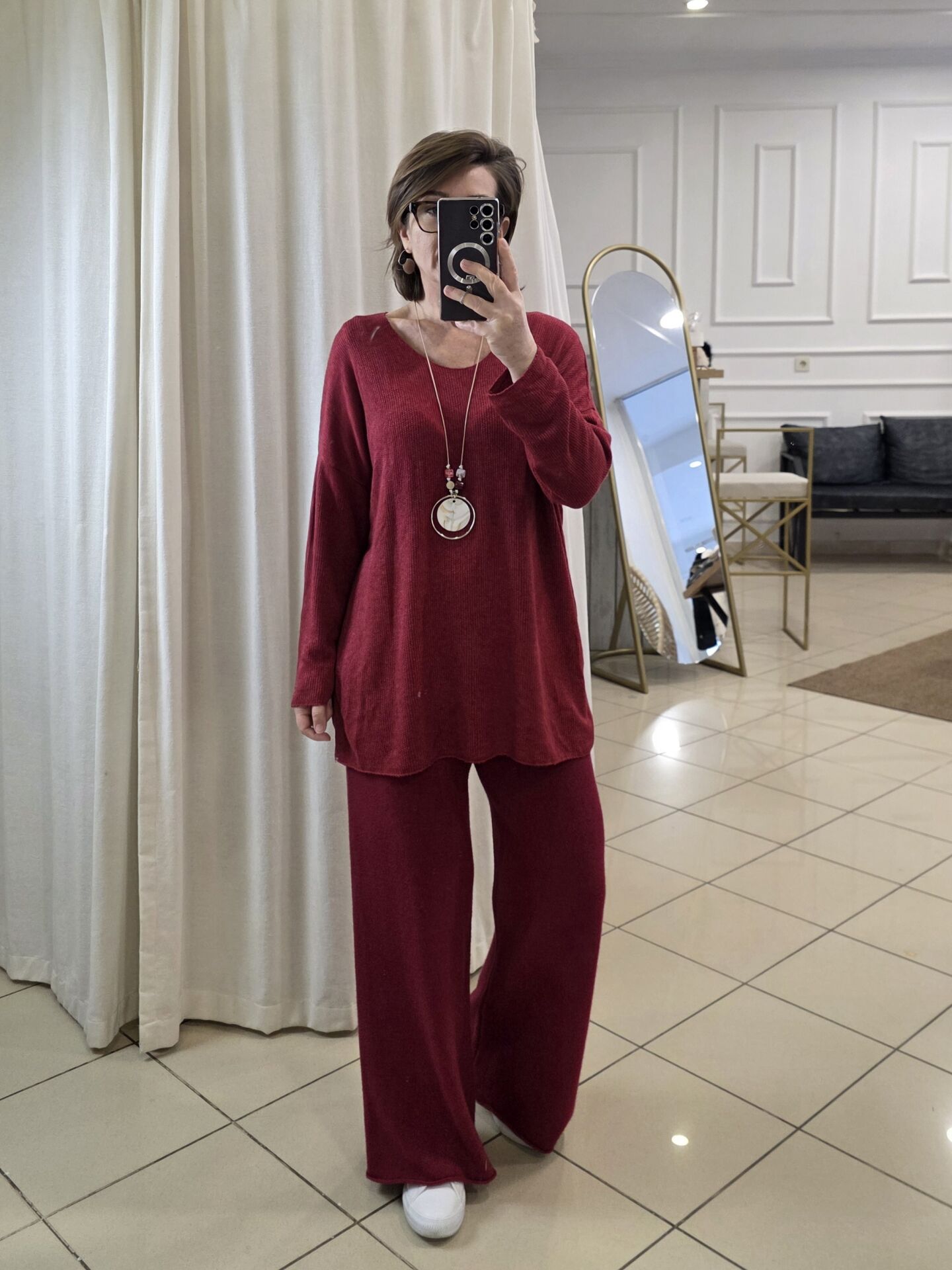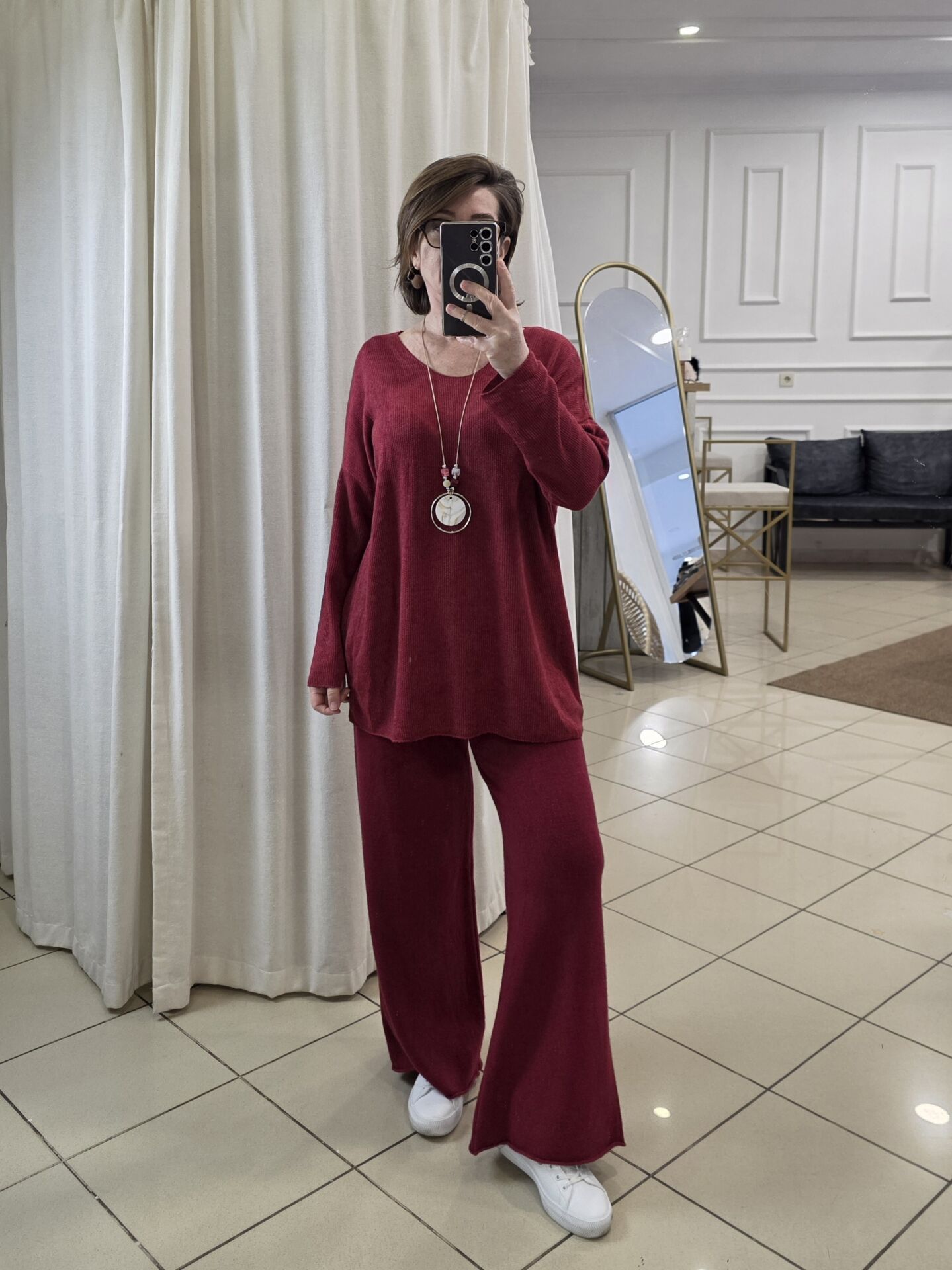 Petek Dokuma İtalyan Triko Bordo Kazak