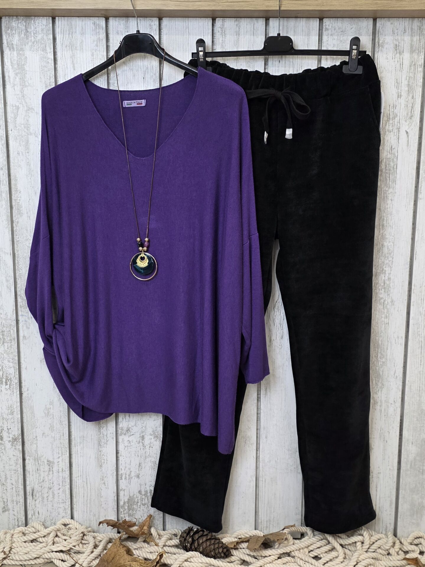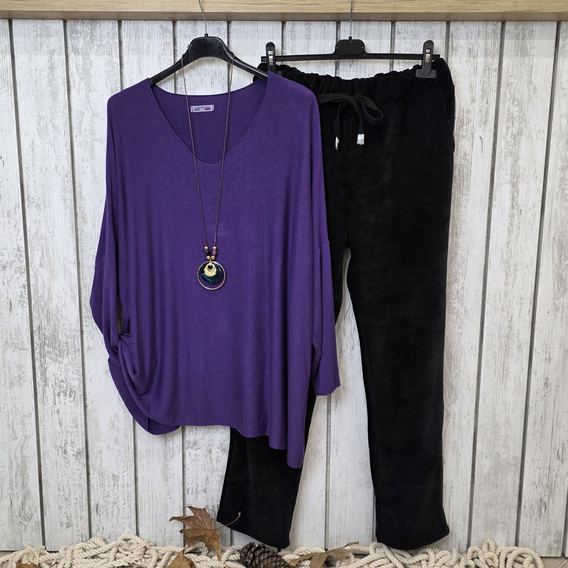Düz Kesim V Yaka İtalyan Mor Kazak